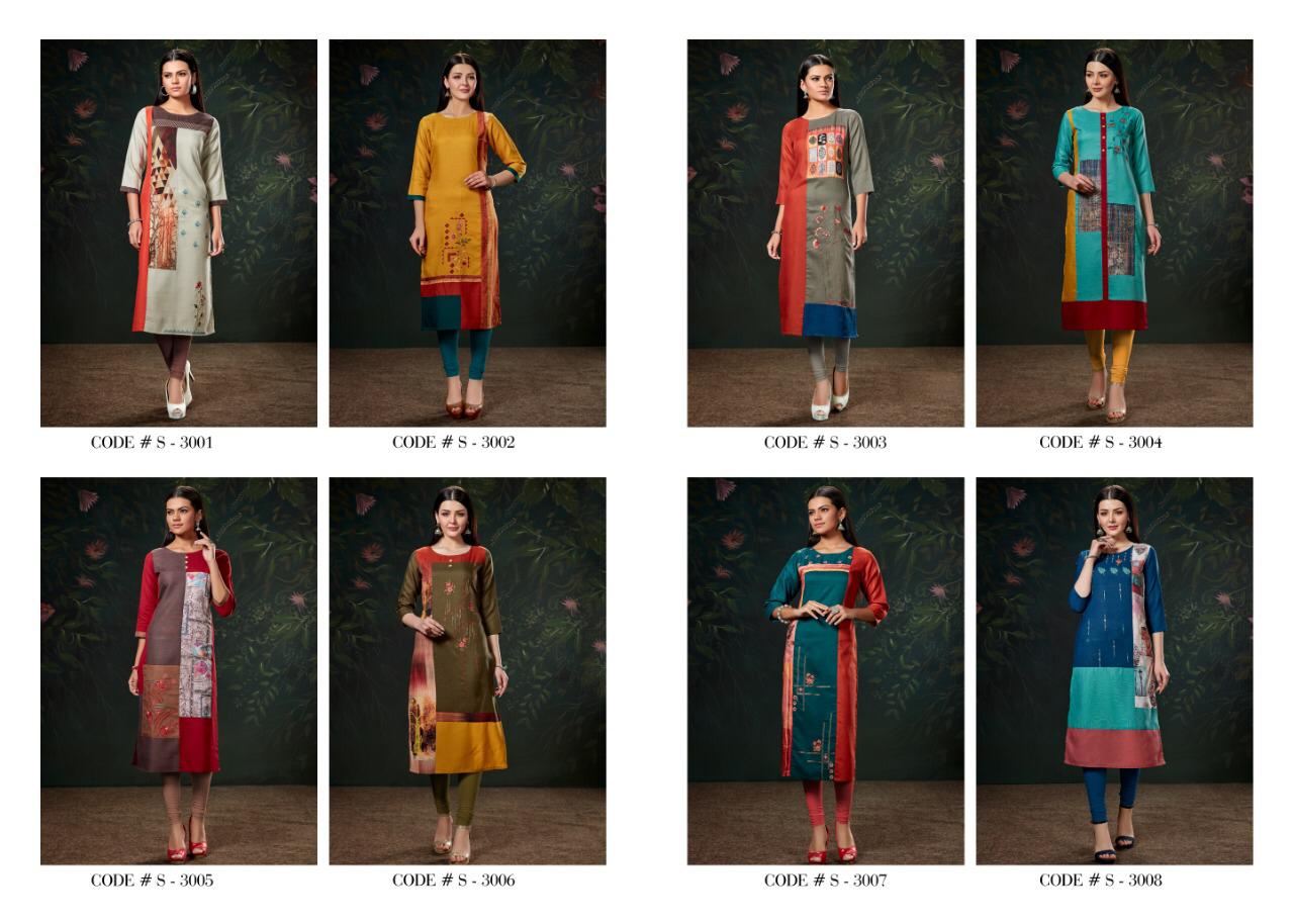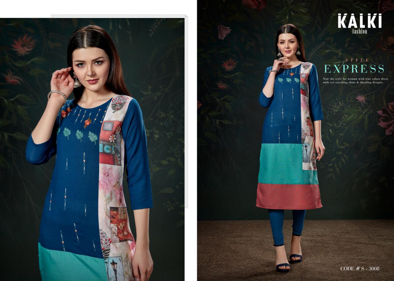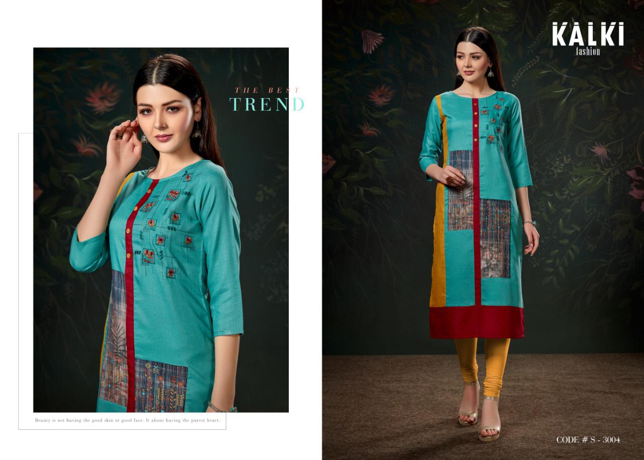 Buy Online Shazia By Kalki Fashion 3001 Series Fancy Pure Reyon Flex Printed Kurti Collection Wholesaler Surat 8 Pcs of Full Catalogue at Wholesale Price. Looking for Shazia By Kalki Fashion 3001 Series Fancy Pure Reyon Flex Printed Kurti Collection Wholesaler Surat Full Catalouge at Best Price? Buy Now Shazia By Kalki Fashion 3001 Series Fancy Pure Reyon Flex Printed Kurti Collection Wholesaler Surat at Wholesale Rate of Rs 4400 with Total 8 Pcs from authroized dealer and supplier of Brand. Cost of Each piece is just only Rs 550 which is very low and affordable price to resale the product in your retail store ,This is Surat based Wholesale Supplier & Dealer of Brand. Click on Brand name to Know more about Brand's products.Call or Whatsapp on 9898838984 for booking or enquiry