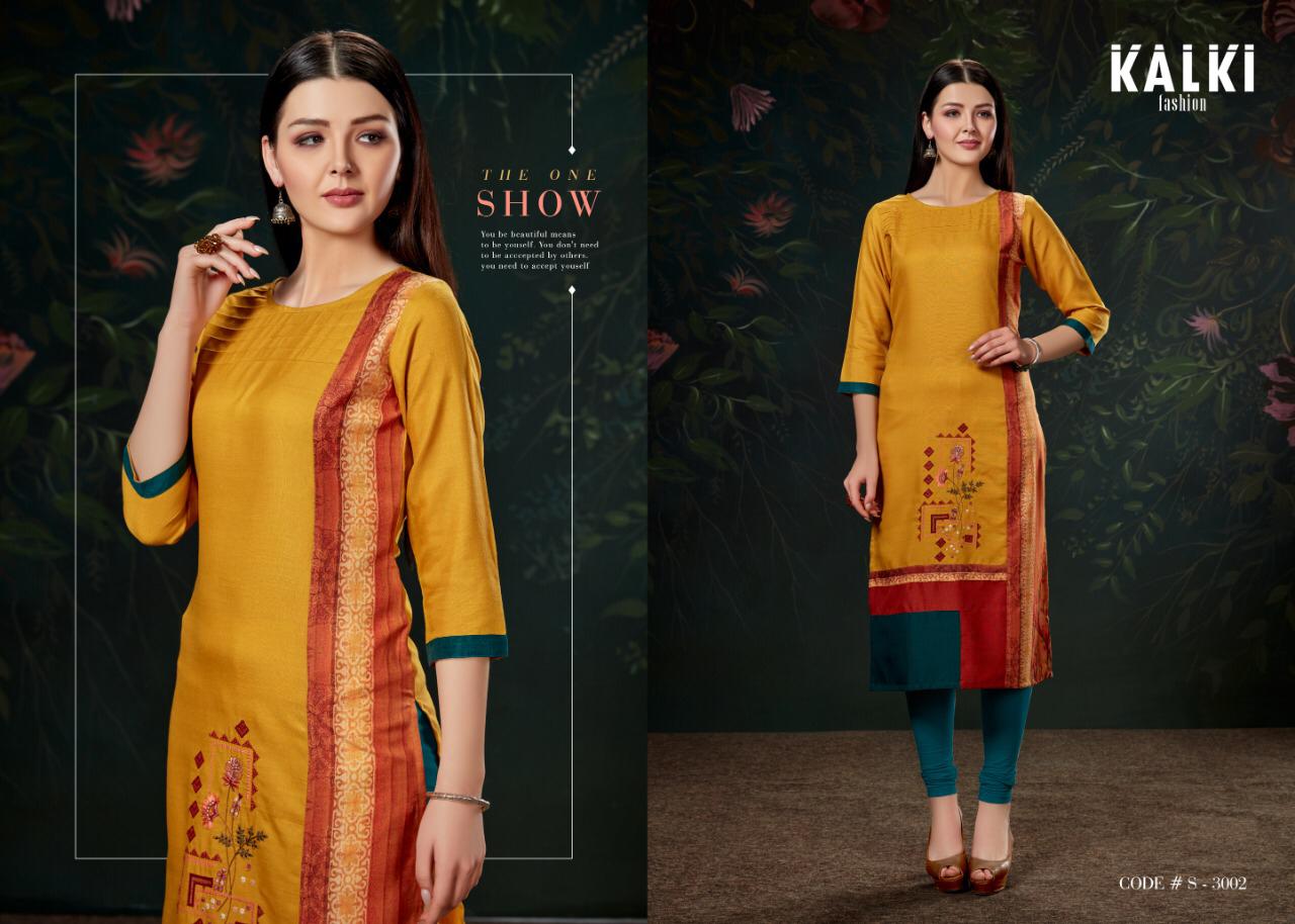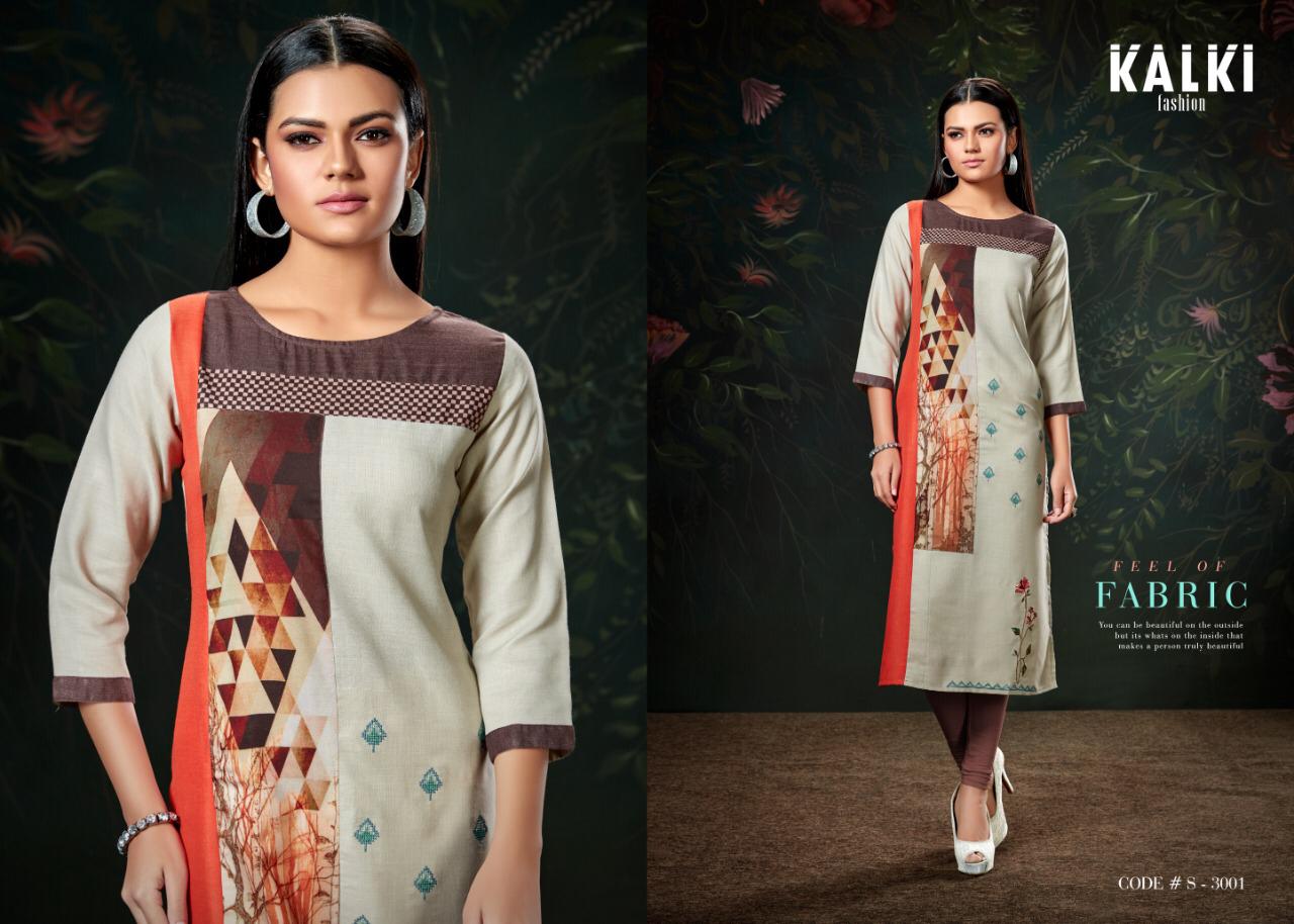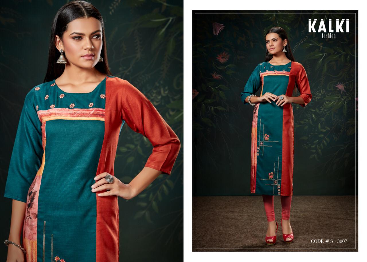 Buy Online Shazia By Kalki Fashion 3001 Series Fancy Pure Reyon Flex Printed Kurti Collection Wholesaler Surat 8 Pcs of Full Catalogue at Wholesale Price. Looking for Shazia By Kalki Fashion 3001 Series Fancy Pure Reyon Flex Printed Kurti Collection Wholesaler Surat Full Catalouge at Best Price? Buy Now Shazia By Kalki Fashion 3001 Series Fancy Pure Reyon Flex Printed Kurti Collection Wholesaler Surat at Wholesale Rate of Rs 4400 with Total 8 Pcs from authroized dealer and supplier of Brand. Cost of Each piece is just only Rs 550 which is very low and affordable price to resale the product in your retail store ,This is Surat based Wholesale Supplier & Dealer of Brand. Click on Brand name to Know more about Brand's products.Call or Whatsapp on 9898838984 for booking or enquiry