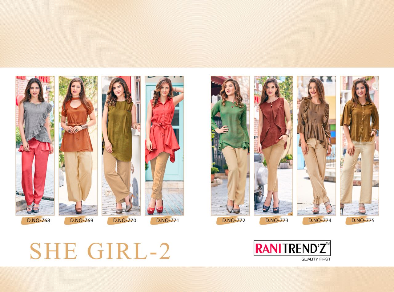 Buy Online She Girl 2 By Rani Trendz Khadi Slub Designer Tops And Reyon Bottom Wholesale Supplier Nd Dealer Gujarat 8 Pcs of Full Catalogue at Wholesale Price. Looking for She Girl 2 By Rani Trendz Khadi Slub Designer Tops And Reyon Bottom Wholesale Supplier Nd Dealer Gujarat Full Catalouge at Best Price? Buy Now She Girl 2 By Rani Trendz Khadi Slub Designer Tops And Reyon Bottom Wholesale Supplier Nd Dealer Gujarat at Wholesale Rate of Rs 5992 with Total 8 Pcs from authroized dealer and supplier of RANI TRENDZ Brand. Cost of Each piece is just only Rs 749 which is very low and affordable price to resale the product in your retail store ,This is Surat based Wholesale Supplier & Dealer of RANI TRENDZ Brand. Click on Brand name to Know more about RANI TRENDZ Brand's products.Call or Whatsapp on 9898838984 for booking or enquiry