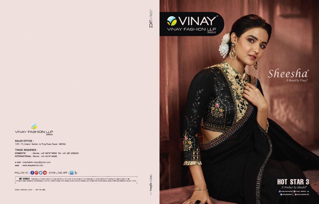 Buy Online Sheesha Hotstar 3 By Vinay Series 22201 To 22209 Designer Party Wear Sarees Wholesale Supplier Gujarat 9 Pcs of Full Catalogue at Wholesale Price. Looking for Sheesha Hotstar 3 By Vinay Series 22201 To 22209 Designer Party Wear Sarees Wholesale Supplier Gujarat Full Catalouge at Best Price? Buy Now Sheesha Hotstar 3 By Vinay Series 22201 To 22209 Designer Party Wear Sarees Wholesale Supplier Gujarat at Wholesale Rate of Rs 0 with Total 9 Pcs from authroized dealer and supplier of VINAY Brand. Cost of Each piece is just only Rs 0 which is very low and affordable price to resale the product in your retail store ,This is Surat based Wholesale Supplier & Dealer of VINAY Brand. Click on Brand name to Know more about VINAY Brand's products.Call or Whatsapp on 9898838984 for booking or enquiry