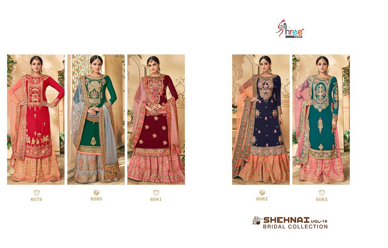 Buy Online Shehnai Bridal Collection Vol 16 By Shree Fabs 6079 Series Fancy Heavy Sarara Suit Collection Wholesale Supplier Surat 5 Pcs of Full Catalogue at Wholesale Price. Looking for Shehnai Bridal Collection Vol 16 By Shree Fabs 6079 Series Fancy Heavy Sarara Suit Collection Wholesale Supplier Surat Full Catalouge at Best Price? Buy Now Shehnai Bridal Collection Vol 16 By Shree Fabs 6079 Series Fancy Heavy Sarara Suit Collection Wholesale Supplier Surat at Wholesale Rate of Rs 9755 with Total 5 Pcs from authroized dealer and supplier of SHREE FABS Brand. Cost of Each piece is just only Rs 1951 which is very low and affordable price to resale the product in your retail store ,This is Surat based Wholesale Supplier & Dealer of SHREE FABS Brand. Click on Brand name to Know more about SHREE FABS Brand's products.Call or Whatsapp on 9898838984 for booking or enquiry