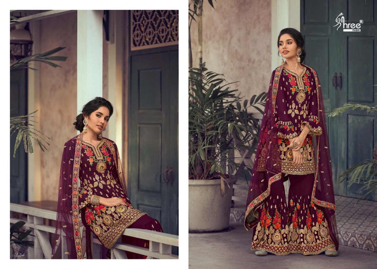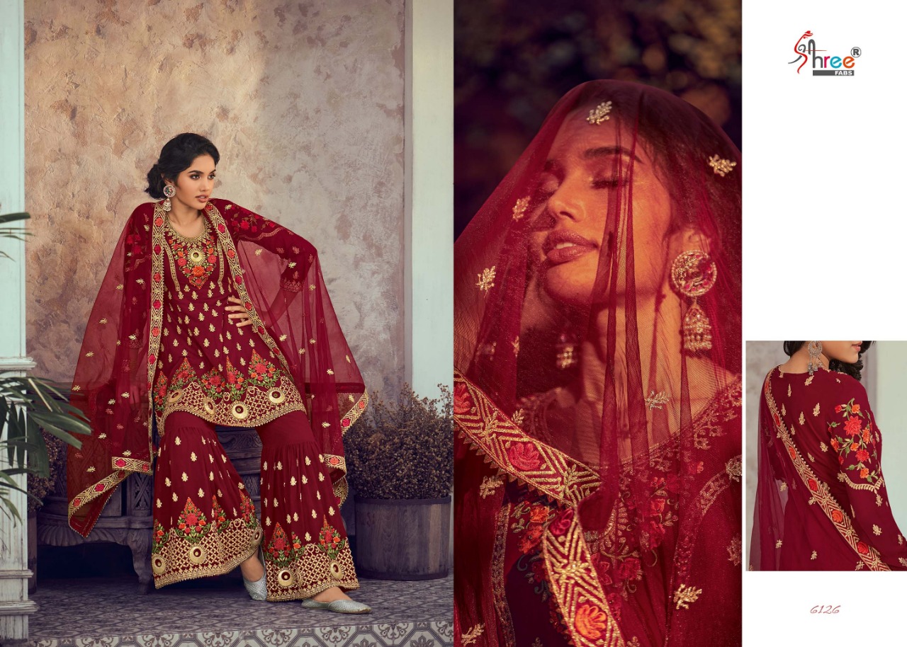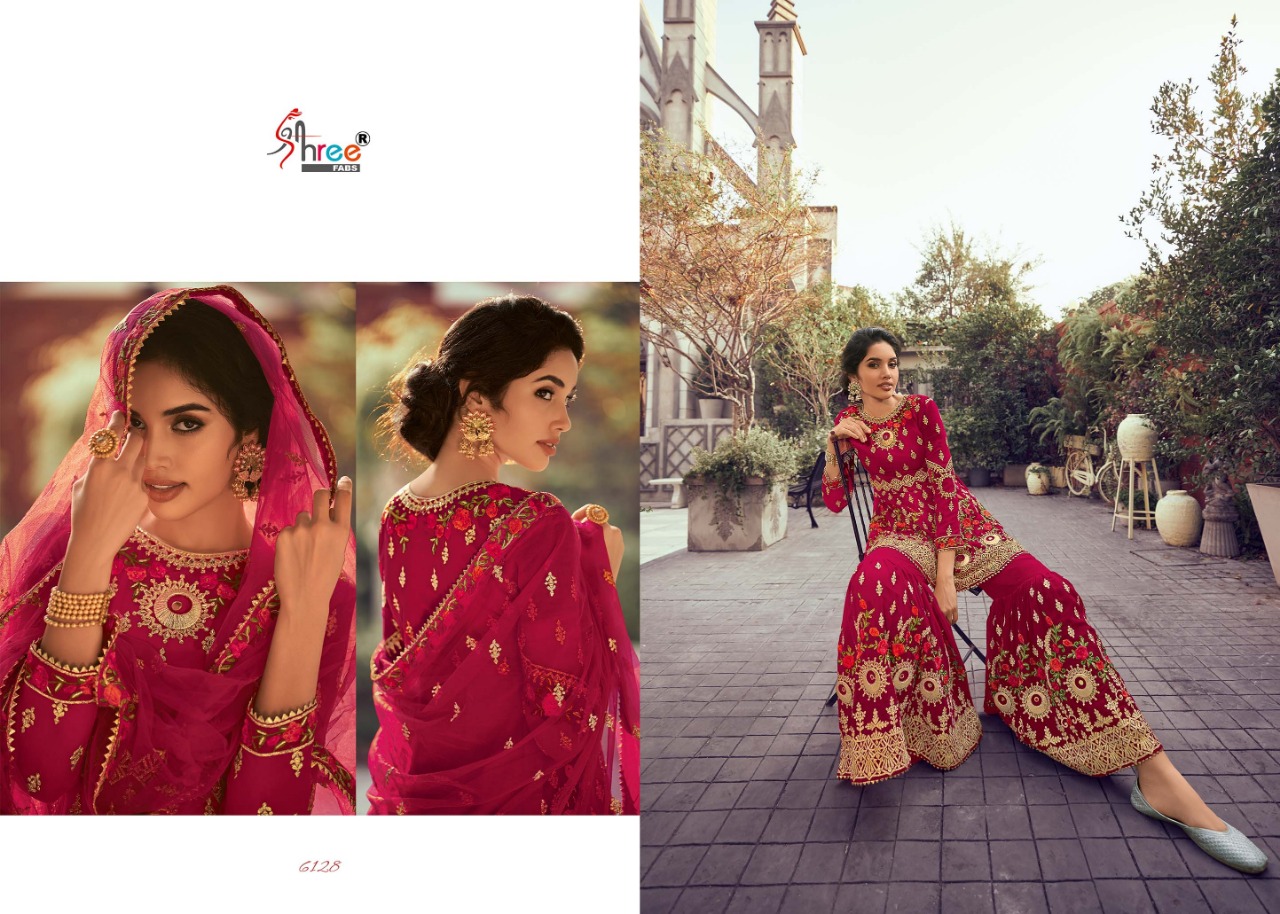 *Catalog Name:* SHEHNAI BRIDAL COLLECTION *VOL - 25* *Fabric:* TOP PLAZO - Georgette Heavy embrodery work, with inner attached DUPTTA - Net Embroidery work with Four side Less *Piece:* 6 *Average Price:* ?1895/- + GST *Delivery Date:* 31-01-2020 *SHREE FABS SURAT* |