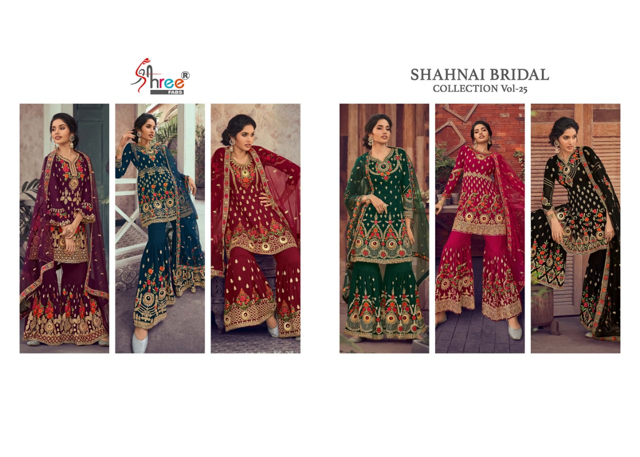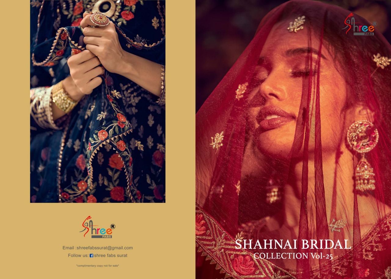 Buy Online Shehnai Bridal Collection Vol 25 By Shree Fab Designer Party Wear Suits Wholesale Supplier Gujarat 6 Pcs of Full Catalogue at Wholesale Price. Looking for Shehnai Bridal Collection Vol 25 By Shree Fab Designer Party Wear Suits Wholesale Supplier Gujarat Full Catalouge at Best Price? Buy Now Shehnai Bridal Collection Vol 25 By Shree Fab Designer Party Wear Suits Wholesale Supplier Gujarat at Wholesale Rate of Rs 11370 with Total 6 Pcs from authroized dealer and supplier of SHREE FABS Brand. Cost of Each piece is just only Rs 1895 which is very low and affordable price to resale the product in your retail store ,This is Surat based Wholesale Supplier & Dealer of SHREE FABS Brand. Click on Brand name to Know more about SHREE FABS Brand's products.Call or Whatsapp on 9898838984 for booking or enquiry