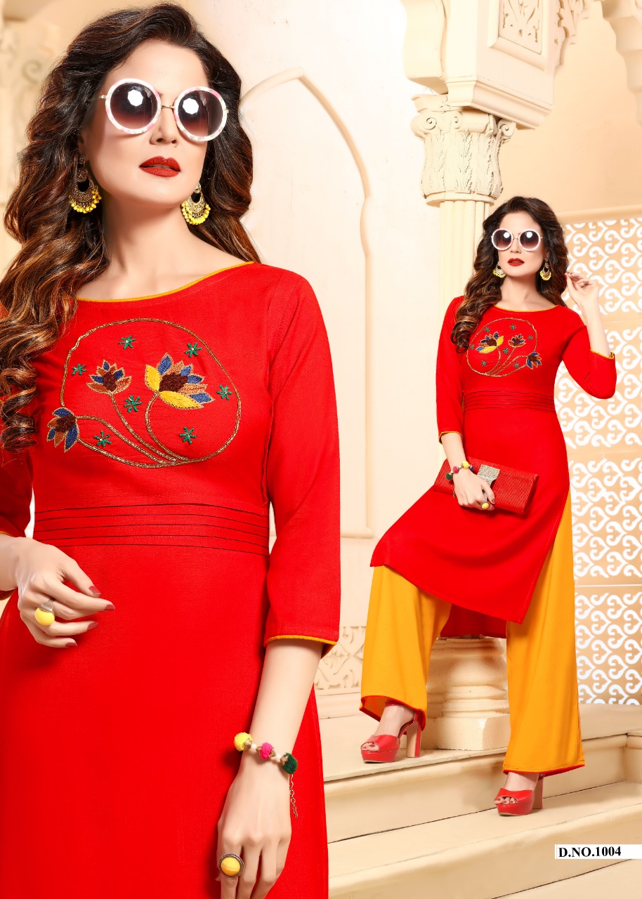 Buy Online Shehnai By Play Store Fancy Designer Kurtis With Plazzo Wholesale Supplier Surat 8 Pcs of Full Catalogue at Wholesale Price. Looking for Shehnai By Play Store Fancy Designer Kurtis With Plazzo Wholesale Supplier Surat Full Catalouge at Best Price? Buy Now Shehnai By Play Store Fancy Designer Kurtis With Plazzo Wholesale Supplier Surat at Wholesale Rate of Rs 5400 with Total 8 Pcs from authroized dealer and supplier of Brand. Cost of Each piece is just only Rs 675 which is very low and affordable price to resale the product in your retail store ,This is Surat based Wholesale Supplier & Dealer of Brand. Click on Brand name to Know more about Brand's products.Call or Whatsapp on 9898838984 for booking or enquiry
