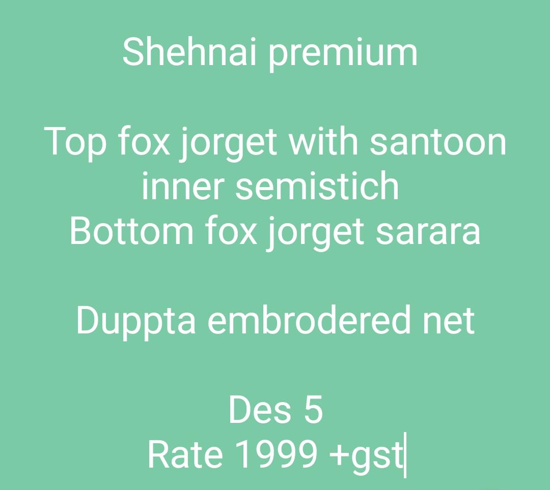 Buy Online Shehnai Premium By Shree Fabs Series 5001 To 5005 Georgette Embroidered Designer Party Wear Gharara Suits Wholesale Supplier Gujarat 5 Pcs of Full Catalogue at Wholesale Price. Looking for Shehnai Premium By Shree Fabs Series 5001 To 5005 Georgette Embroidered Designer Party Wear Gharara Suits Wholesale Supplier Gujarat Full Catalouge at Best Price? Buy Now Shehnai Premium By Shree Fabs Series 5001 To 5005 Georgette Embroidered Designer Party Wear Gharara Suits Wholesale Supplier Gujarat at Wholesale Rate of Rs 9995 with Total 5 Pcs from authroized dealer and supplier of SHREE FABS Brand. Cost of Each piece is just only Rs 1999 which is very low and affordable price to resale the product in your retail store ,This is Surat based Wholesale Supplier & Dealer of SHREE FABS Brand. Click on Brand name to Know more about SHREE FABS Brand's products.Call or Whatsapp on 9898838984 for booking or enquiry
