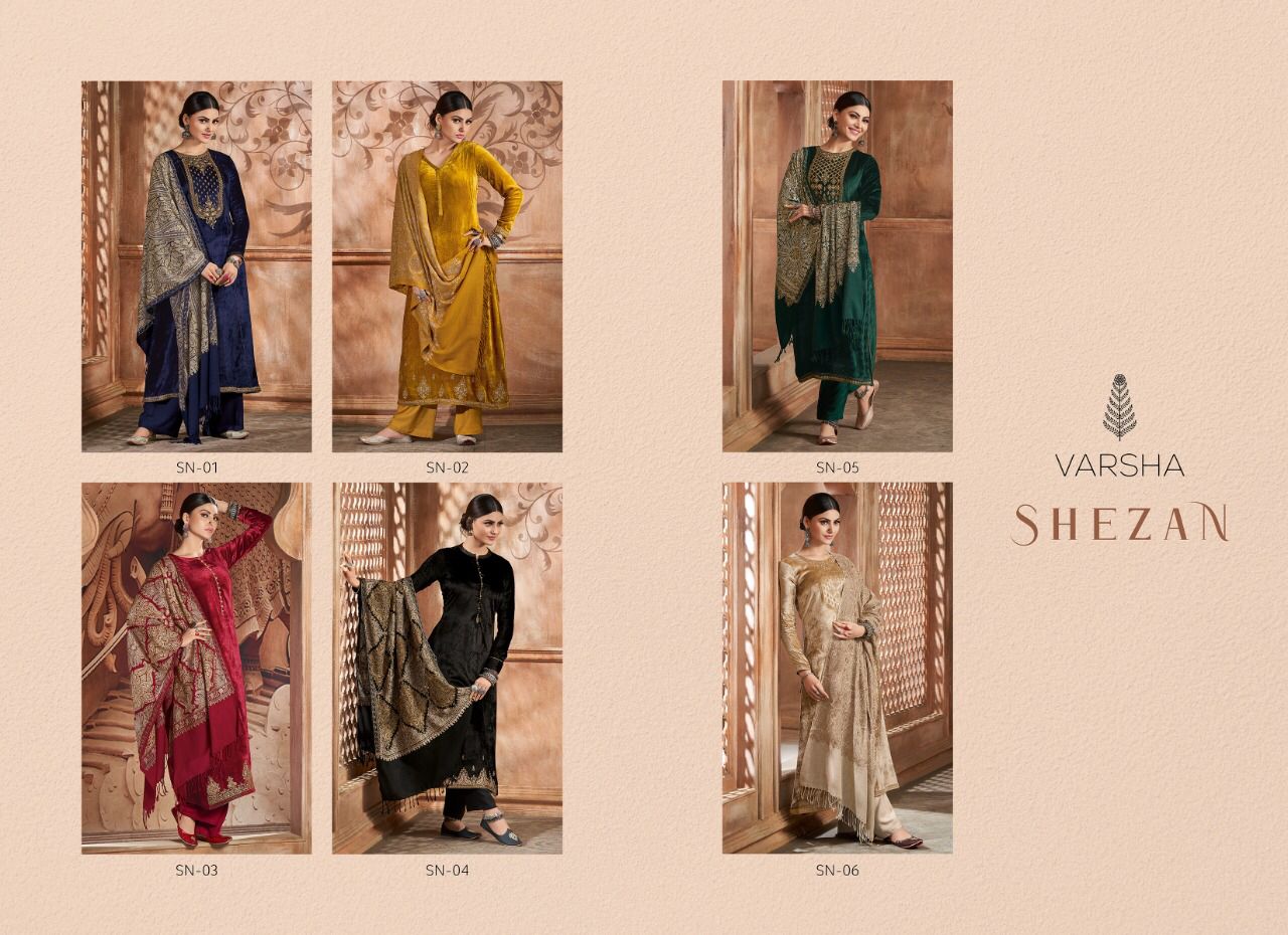 Buy Online Shezan By Varsha Velet Suit Wholesale Supplier Traders In Surat 6 Pcs of Full Catalogue at Wholesale Price. Looking for Shezan By Varsha Velet Suit Wholesale Supplier Traders In Surat Full Catalouge at Best Price? Buy Now Shezan By Varsha Velet Suit Wholesale Supplier Traders In Surat at Wholesale Rate of Rs 17940 with Total 6 Pcs from authroized dealer and supplier of Brand. Cost of Each piece is just only Rs 2990 which is very low and affordable price to resale the product in your retail store ,This is Surat based Wholesale Supplier & Dealer of Brand. Click on Brand name to Know more about Brand's products.Call or Whatsapp on 9898838984 for booking or enquiry