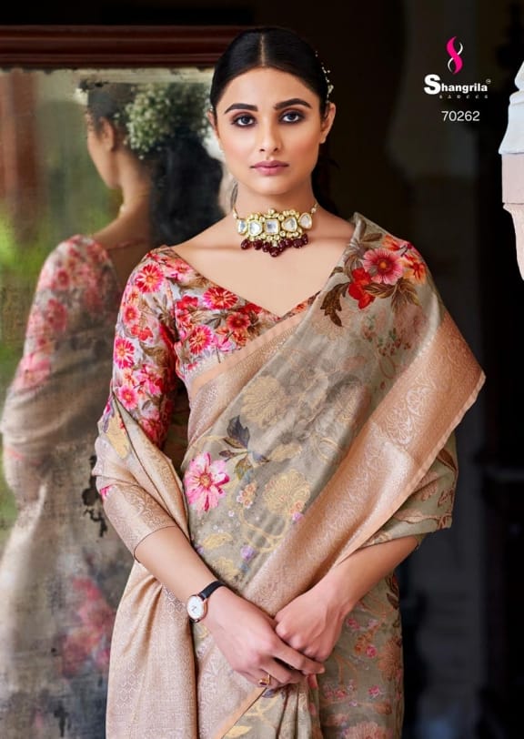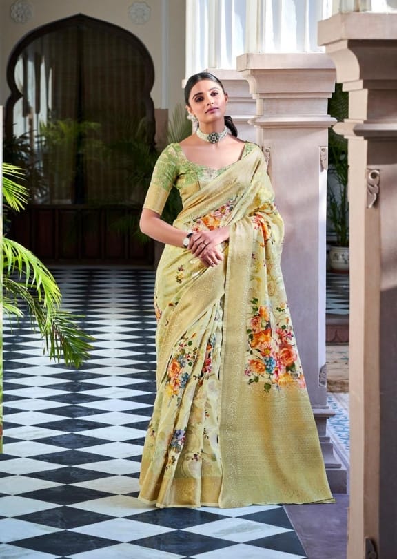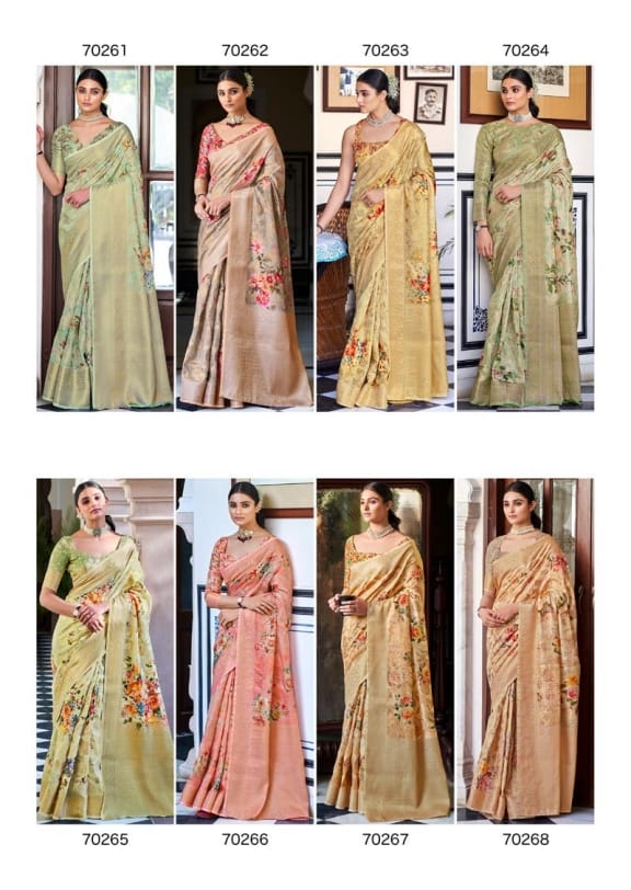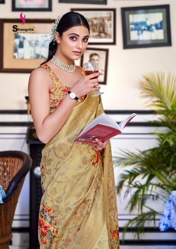 Shimona viscouse digital vol 2 Shangrila Present soft Viscose zari wevaing saree with digital floral prints and fancy blouse...!! 8 pc 8 design 1395/- |