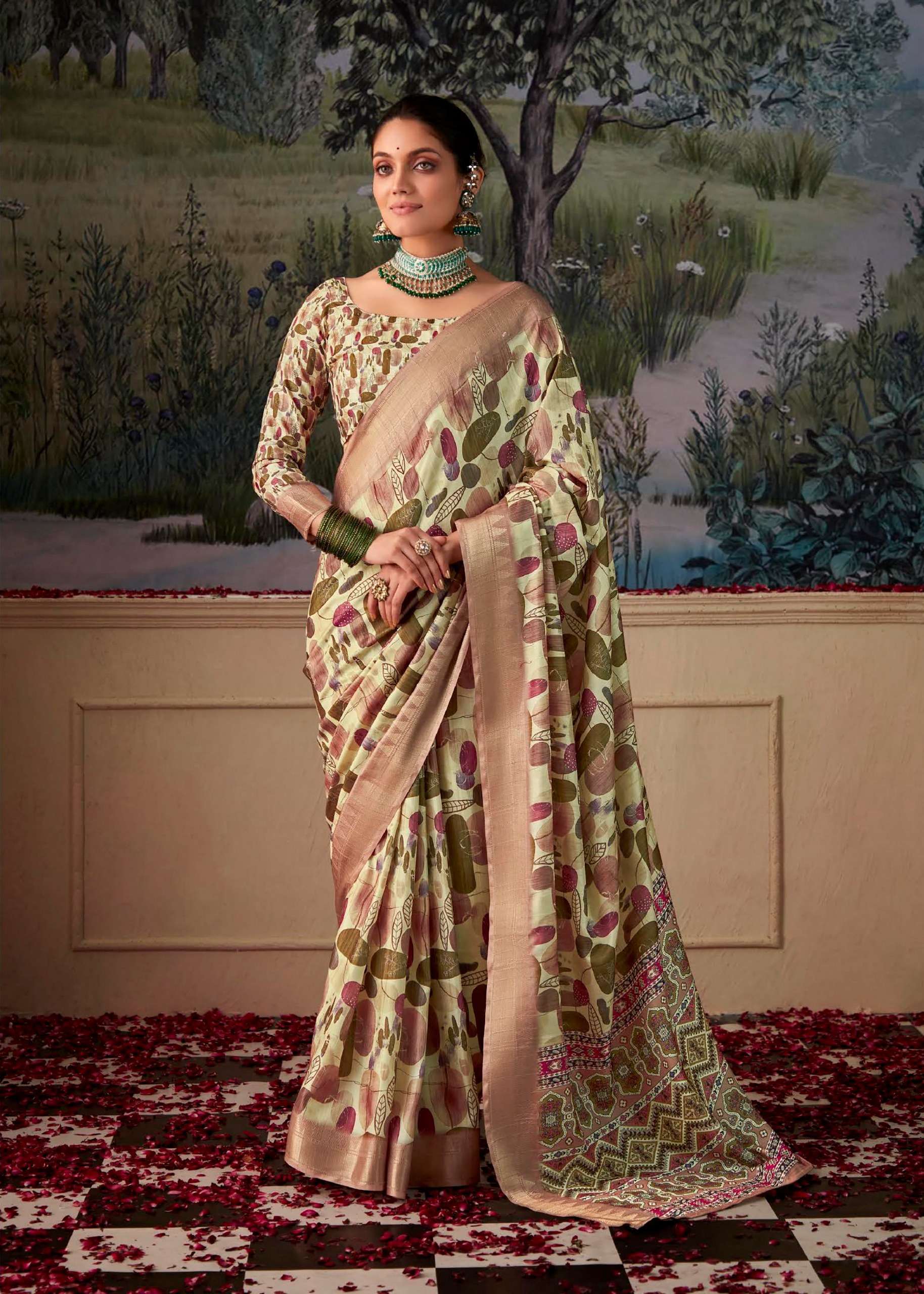 *Fabric: Art Silk with Beautiful Digital Print With Zari Border*