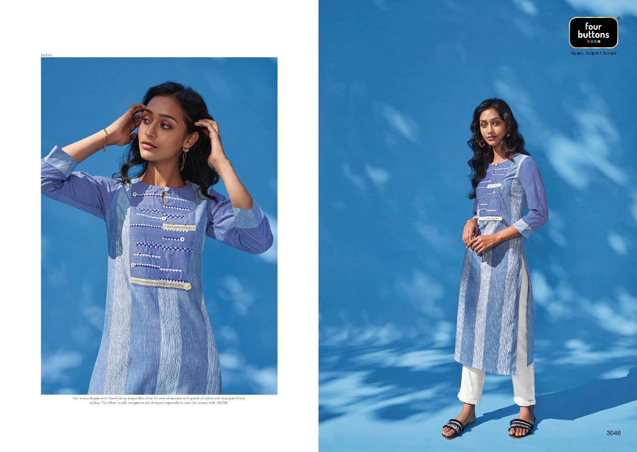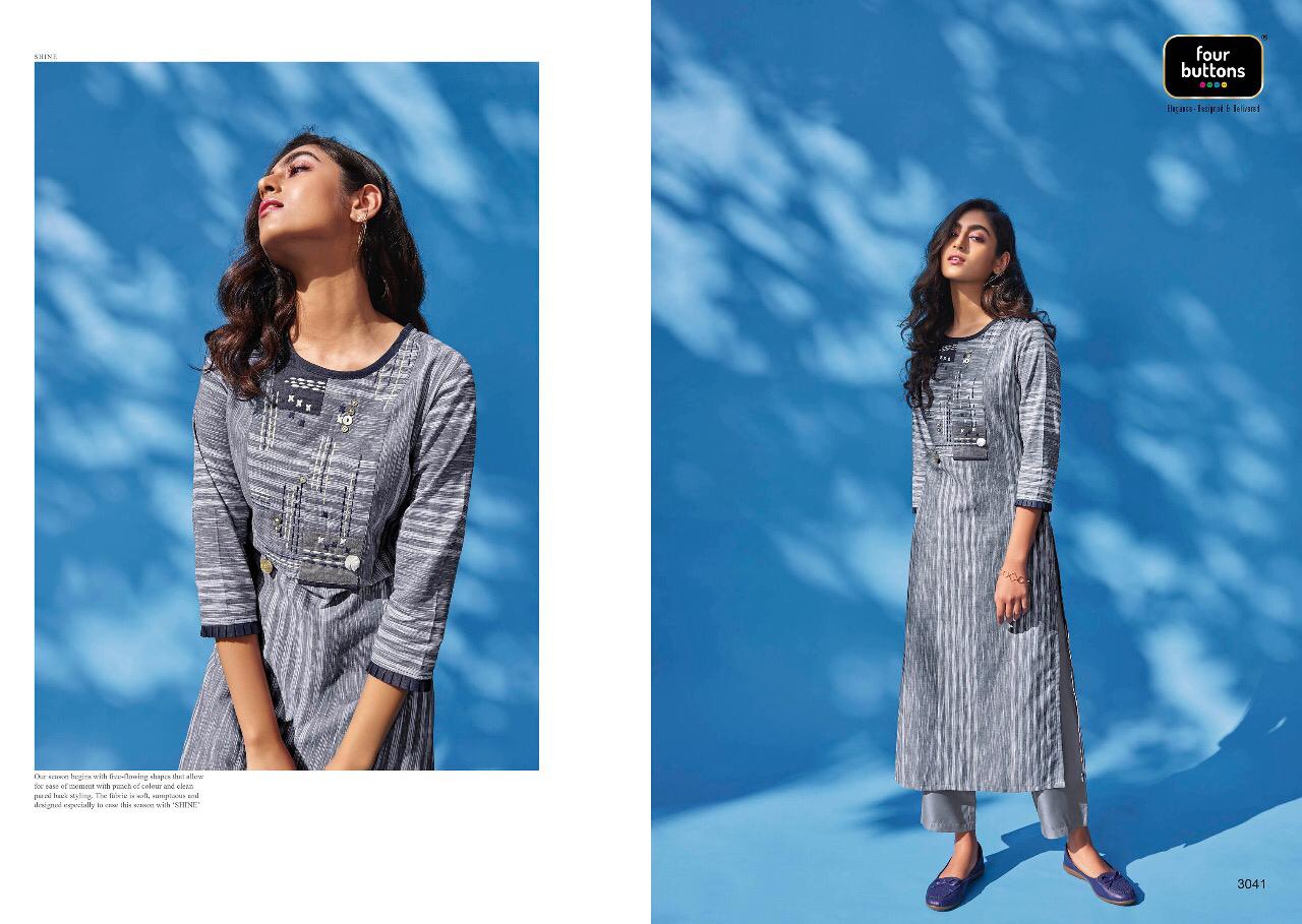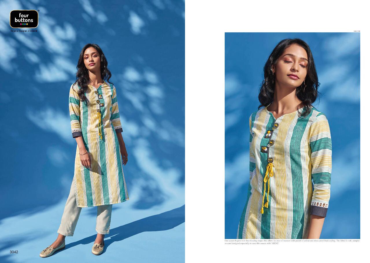 Shine By Four Buttons Cotton Weaving Kurtis Wholesale Supplier And Dealer Surat