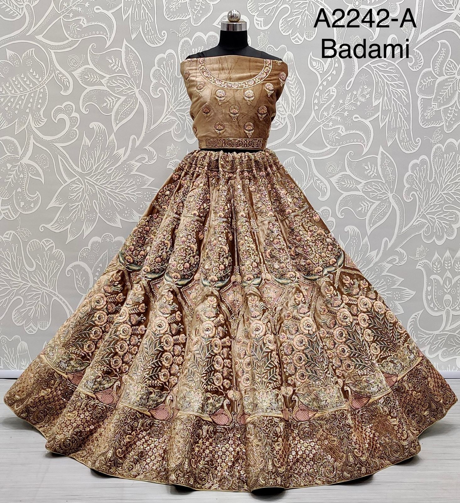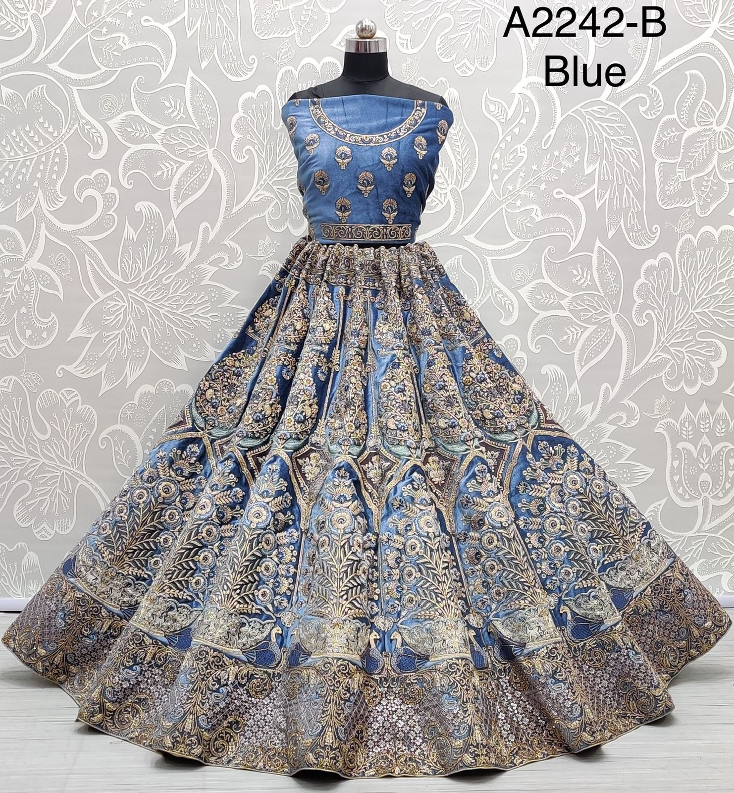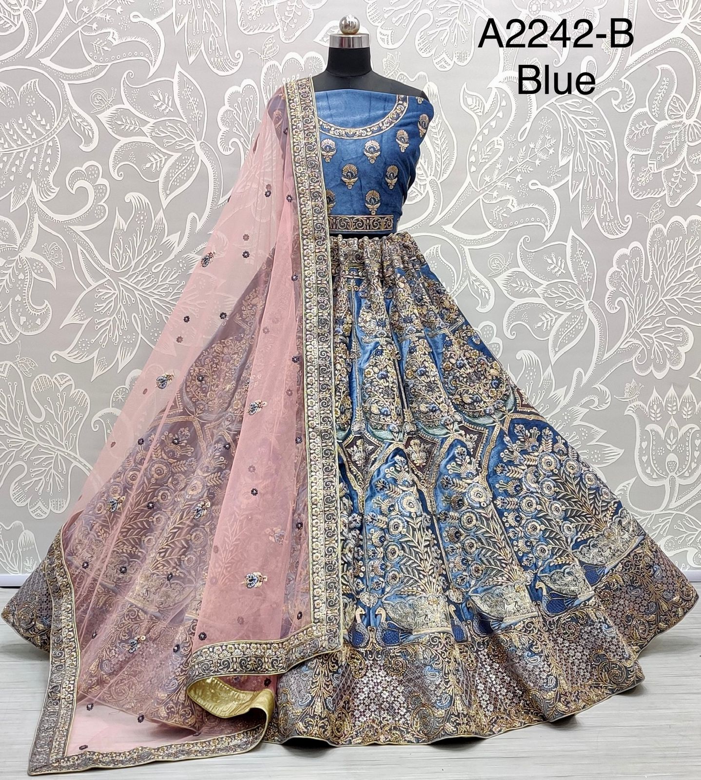 Shiny Velvet Detailed Embroidered Work Designer Wedding Lehengacholi Wholesaler Supplier From Surat