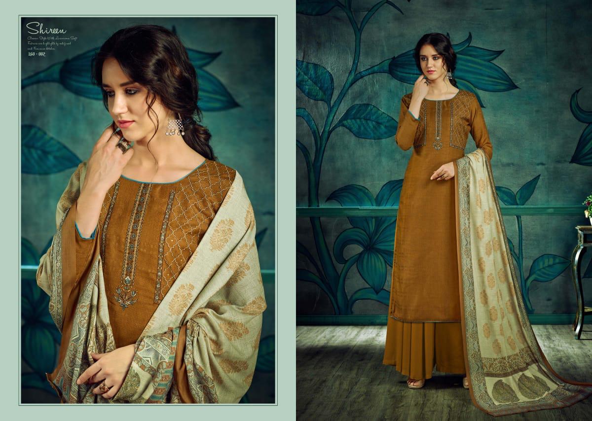 SARGAM PRINTS Presents *SHIREEN* Vol-2 *?Fabric Details?* *Top:* PURE PASHMINA DESIGNER WORK Bottom :PASHMINA DYED *Dupatta:* PURE KASHMIRI WOOL DIGITAL PRINTED (BOX) *Designs:* 8 pcs *Rate:* ?911 *HSN CODE:* 5407 |