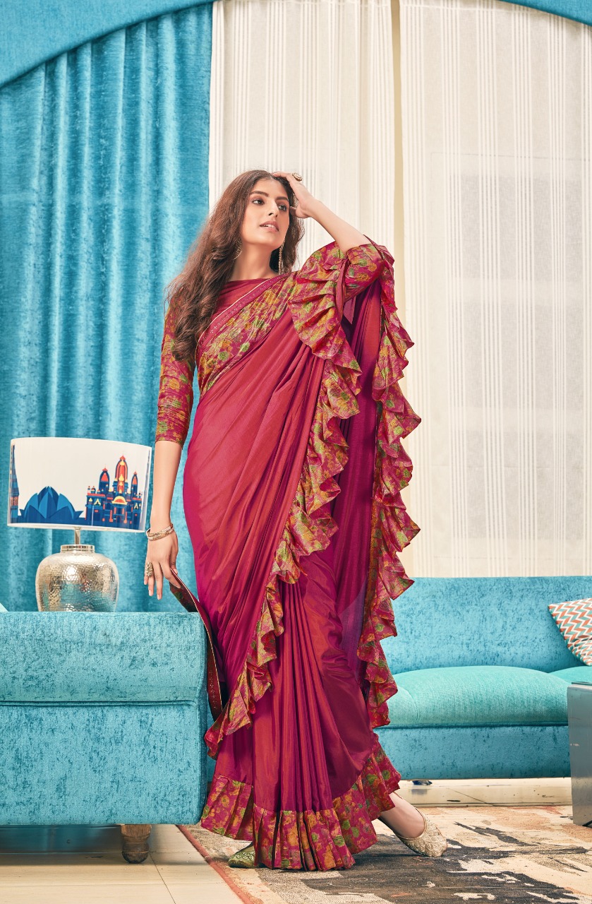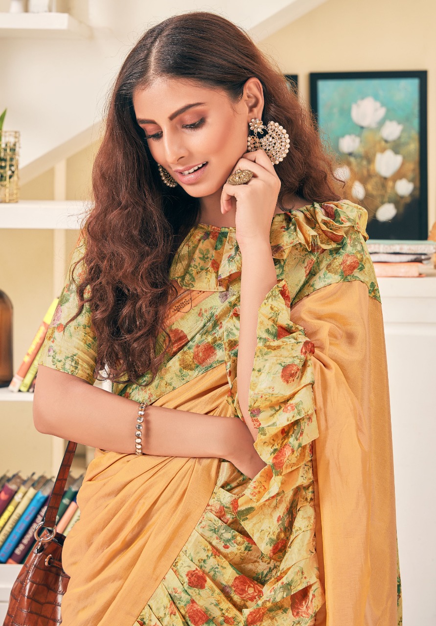 Shivangi By Shangrila Silk With Digital Frill Sarees Wholesale Supplier And Trader India