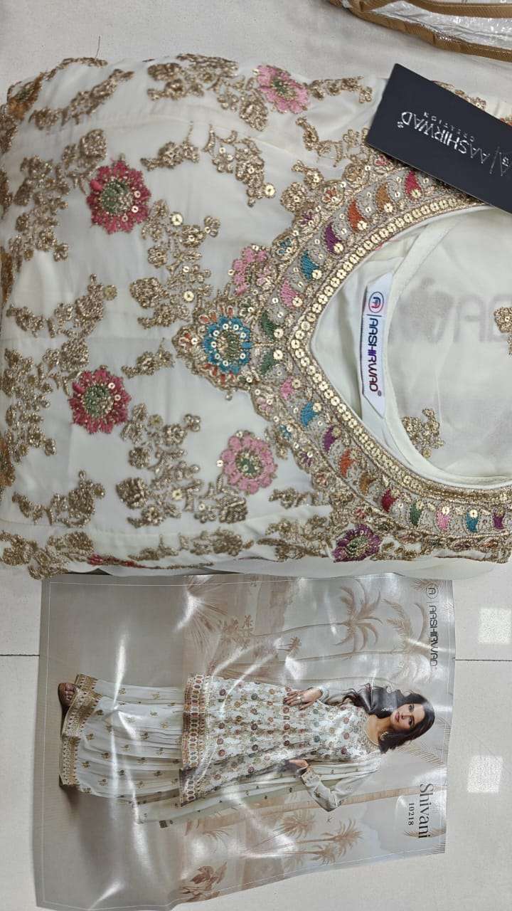 Buy Online SHIVANI by AASHIRWAD CREATION REAL GEORGETTE suit collection manufacturer surat 3 Pcs of Full Catalogue at Wholesale Price. Looking for SHIVANI by AASHIRWAD CREATION REAL GEORGETTE suit collection manufacturer surat Full Catalouge at Best Price? Buy Now SHIVANI by AASHIRWAD CREATION REAL GEORGETTE suit collection manufacturer surat at Wholesale Rate of Rs 8700 with Total 3 Pcs from authroized dealer and supplier of AASHIRWAD Brand. Cost of Each piece is just only Rs 2900 which is very low and affordable price to resale the product in your retail store ,This is Surat based Wholesale Supplier & Dealer of AASHIRWAD Brand. Click on Brand name to Know more about AASHIRWAD Brand's products.Call or Whatsapp on 9898838984 for booking or enquiry