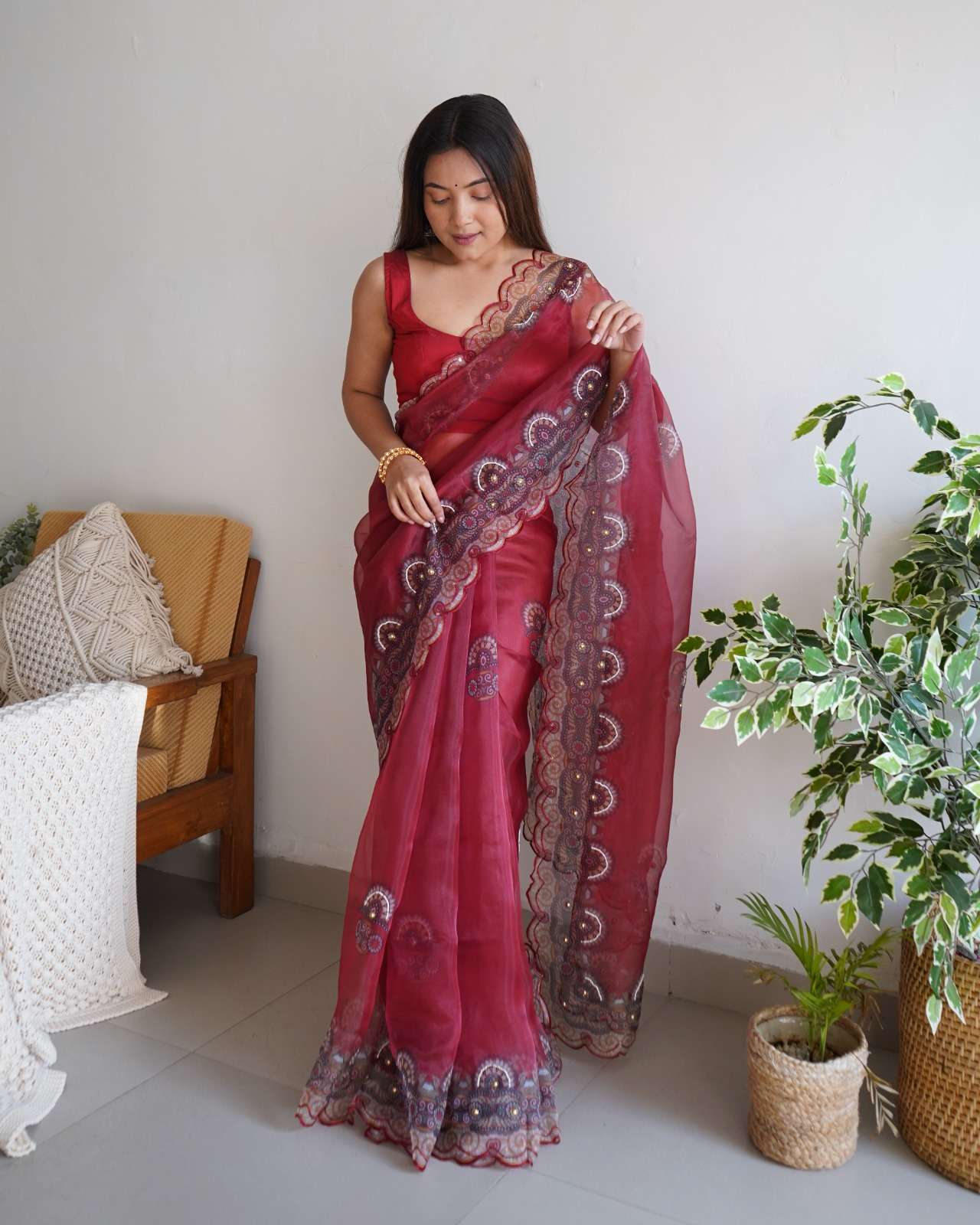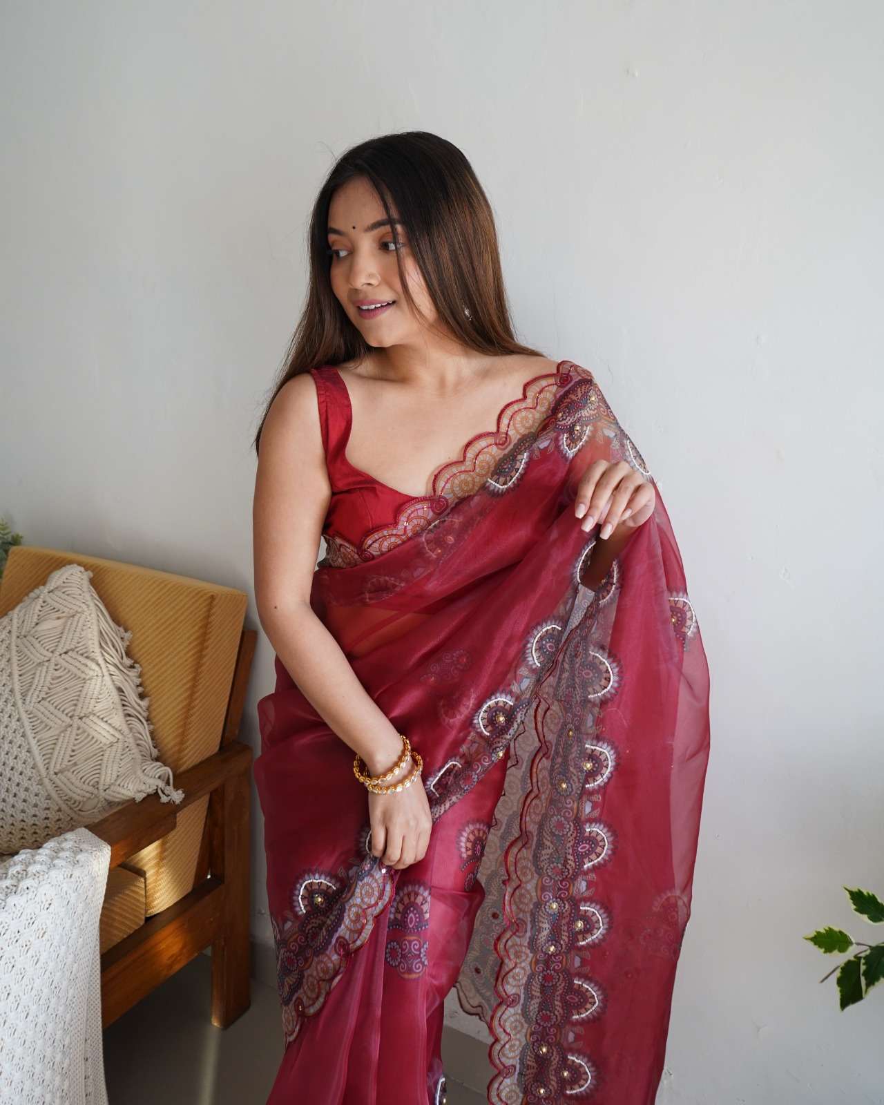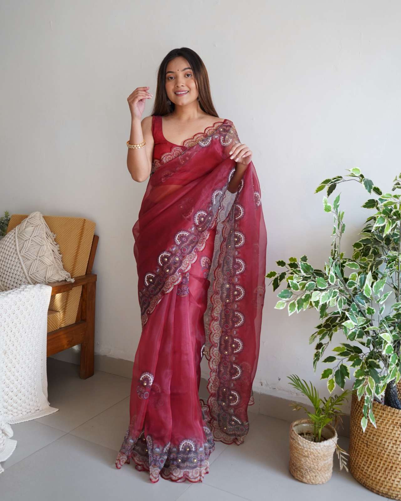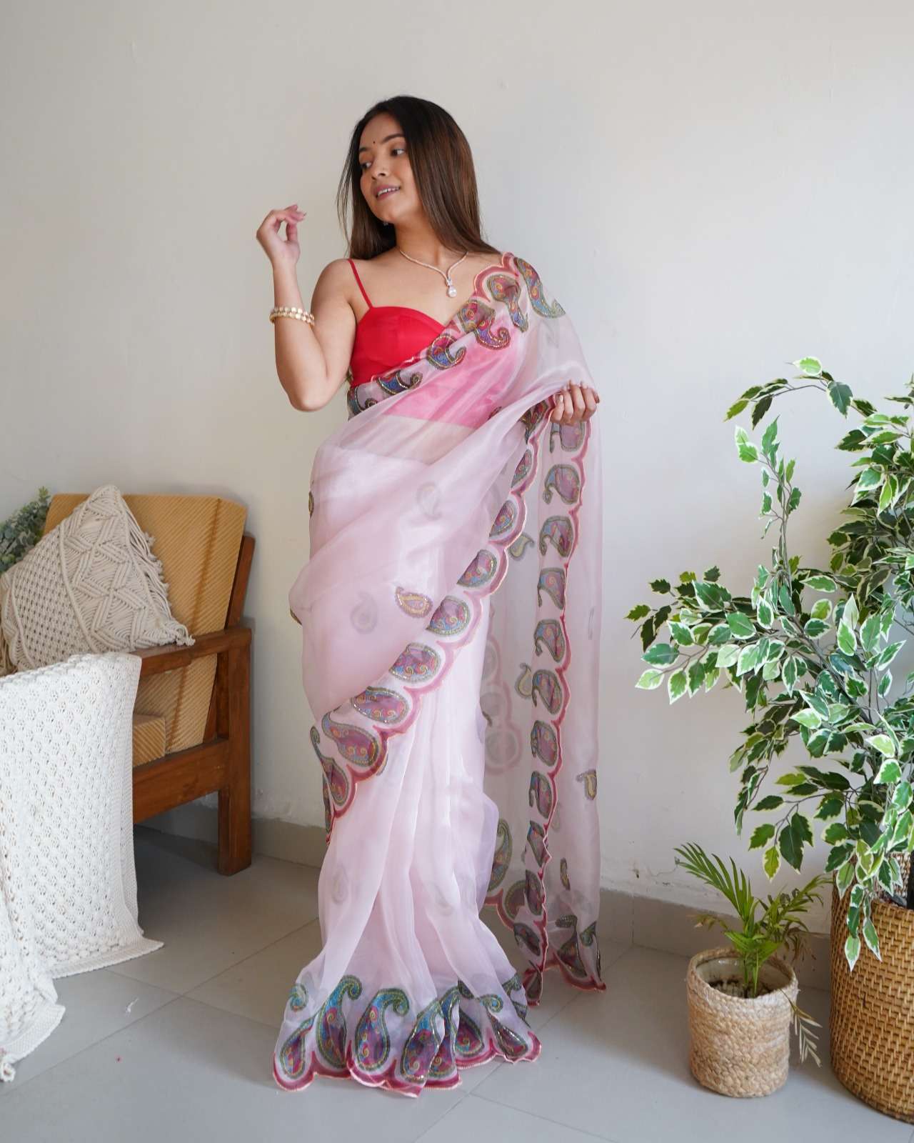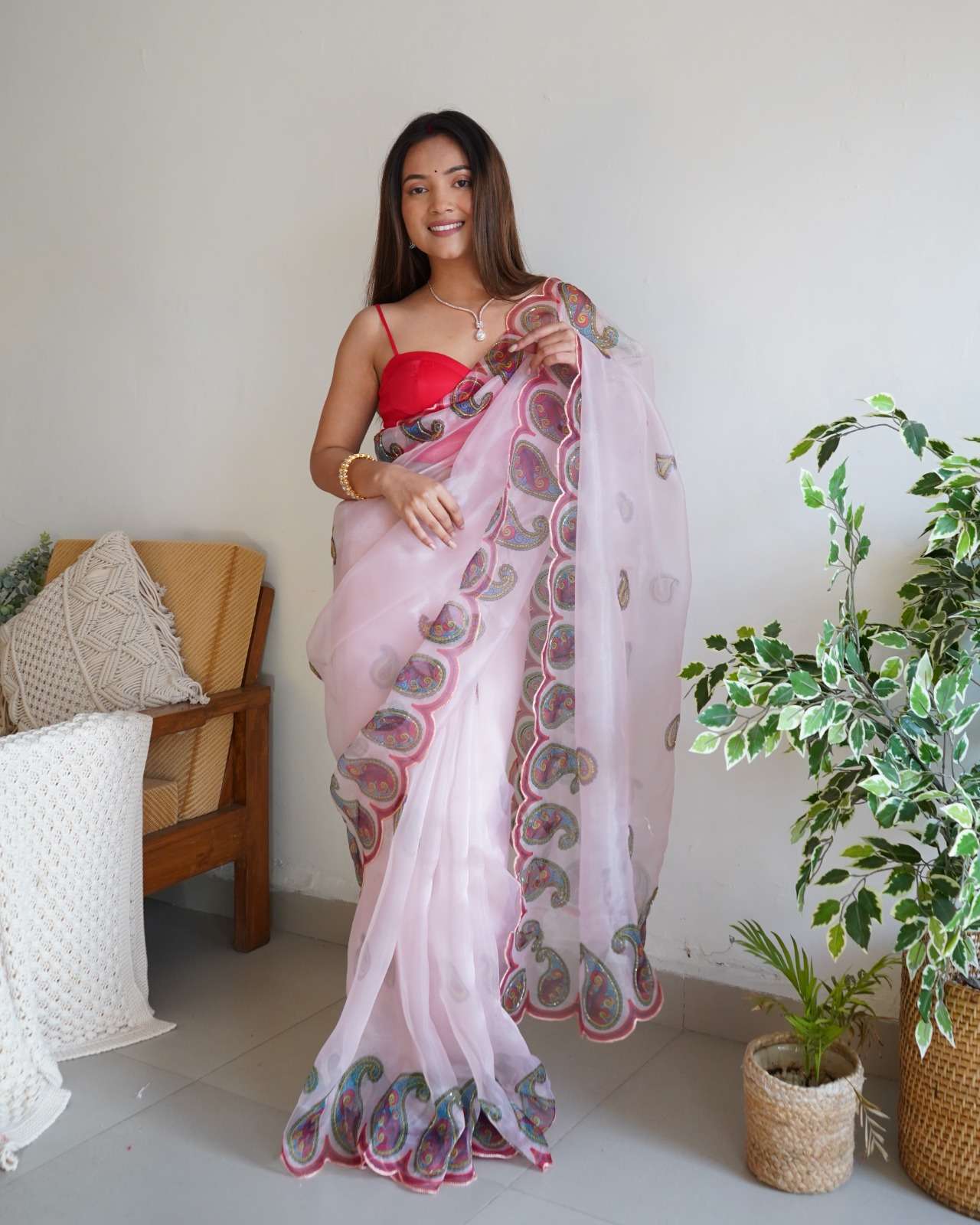 Catalog Name : *Shivika* No of Pcs : 2 Fabric : Organza Work : Organza saree with digital print and beads work cut work border Blouse will be come in satin banglori fabric Black in all sarees