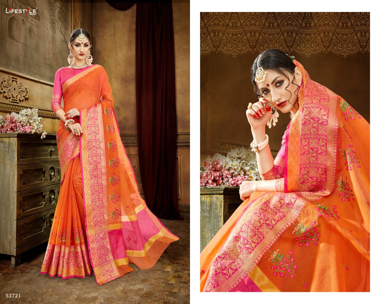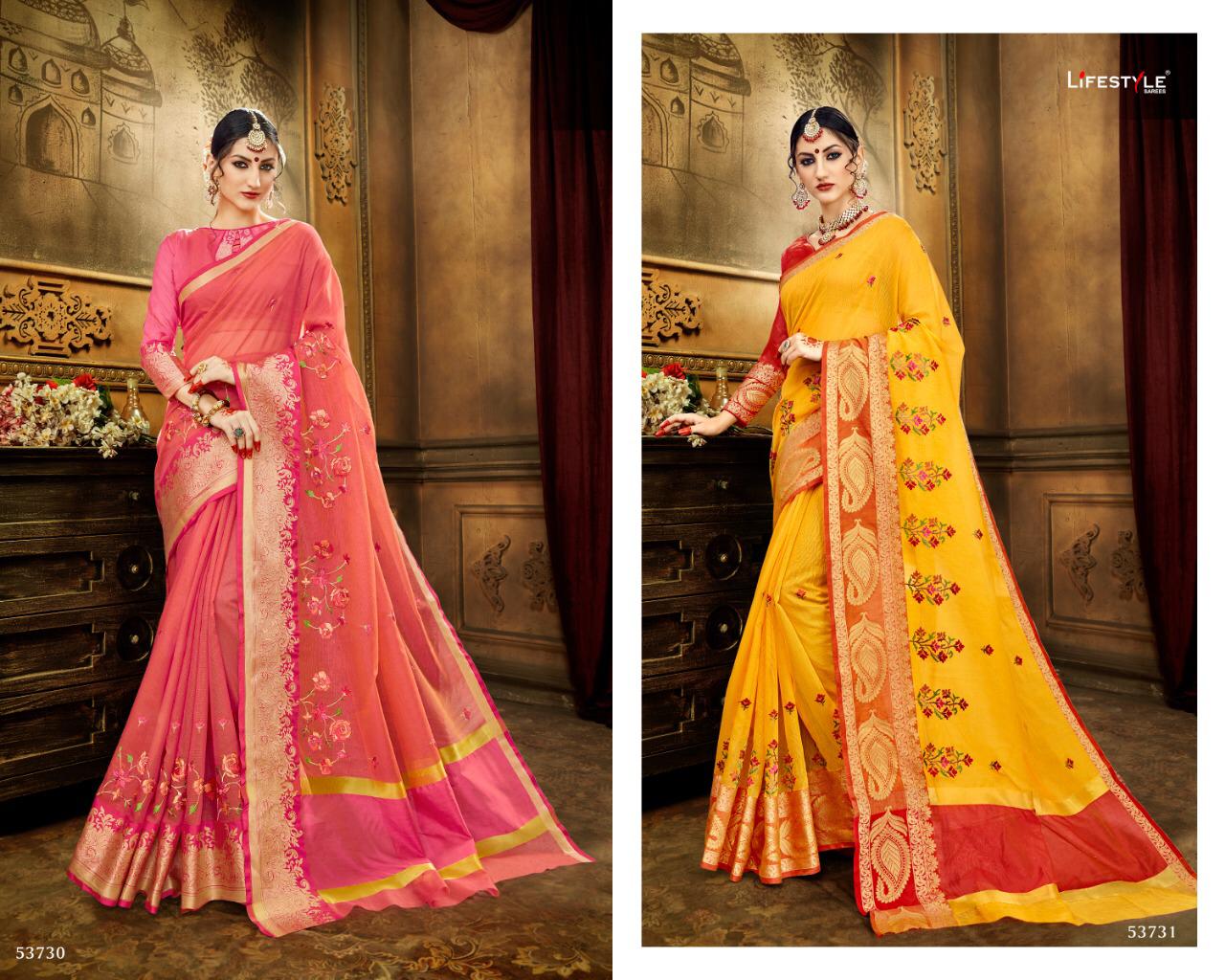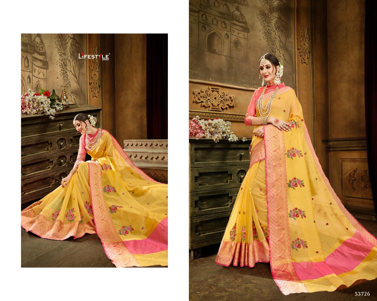 Buy Online Shivoham By Lifestyle 53721 Series Fancy Weaving Cotton Silk Saree Collection Wholesaler Surat 12 Pcs of Full Catalogue at Wholesale Price. Looking for Shivoham By Lifestyle 53721 Series Fancy Weaving Cotton Silk Saree Collection Wholesaler Surat Full Catalouge at Best Price? Buy Now Shivoham By Lifestyle 53721 Series Fancy Weaving Cotton Silk Saree Collection Wholesaler Surat at Wholesale Rate of Rs 12000 with Total 12 Pcs from authroized dealer and supplier of LIFESTYLE Brand. Cost of Each piece is just only Rs 1000 which is very low and affordable price to resale the product in your retail store ,This is Surat based Wholesale Supplier & Dealer of LIFESTYLE Brand. Click on Brand name to Know more about LIFESTYLE Brand's products.Call or Whatsapp on 9898838984 for booking or enquiry