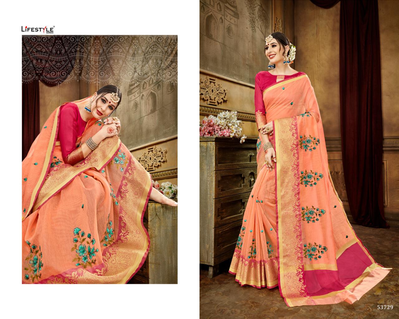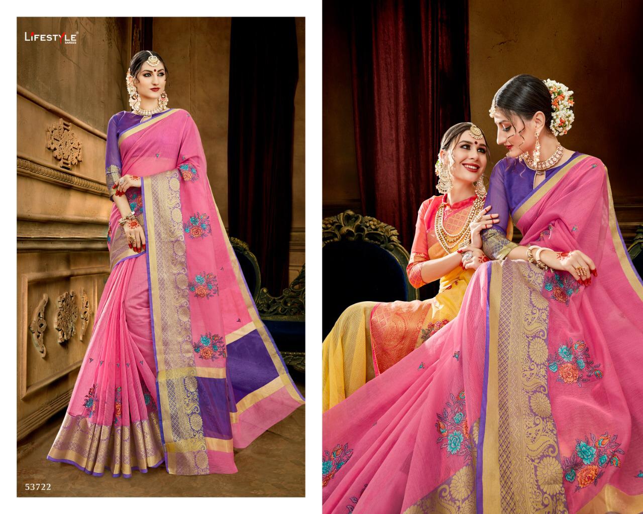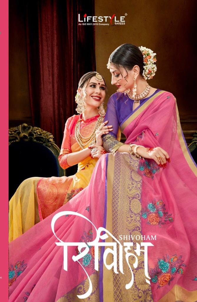 Brand - Lifestyle. Catlog name - SHIVOHAM . * ??????* ??? to ???. Fabric- Weaving cotton silk Fabric with Work . Rate -1000 per pcs . GST 5 Percent Extra. Delivery- * Ready * |