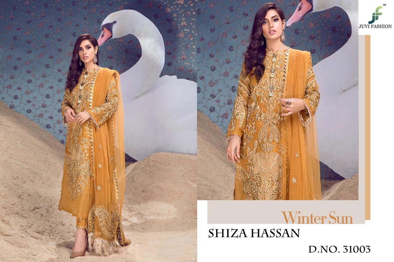 Buy Online Shiza Hasan By Juvi Fashion 31001 Series Fancy Party Wear Pakistani Salwar Kameez Collection Wholesale Dealer Surat 5 Pcs of Full Catalogue at Wholesale Price. Looking for Shiza Hasan By Juvi Fashion 31001 Series Fancy Party Wear Pakistani Salwar Kameez Collection Wholesale Dealer Surat Full Catalouge at Best Price? Buy Now Shiza Hasan By Juvi Fashion 31001 Series Fancy Party Wear Pakistani Salwar Kameez Collection Wholesale Dealer Surat at Wholesale Rate of Rs 5995 with Total 5 Pcs from authroized dealer and supplier of Brand. Cost of Each piece is just only Rs 1199 which is very low and affordable price to resale the product in your retail store ,This is Surat based Wholesale Supplier & Dealer of Brand. Click on Brand name to Know more about Brand's products.Call or Whatsapp on 9898838984 for booking or enquiry