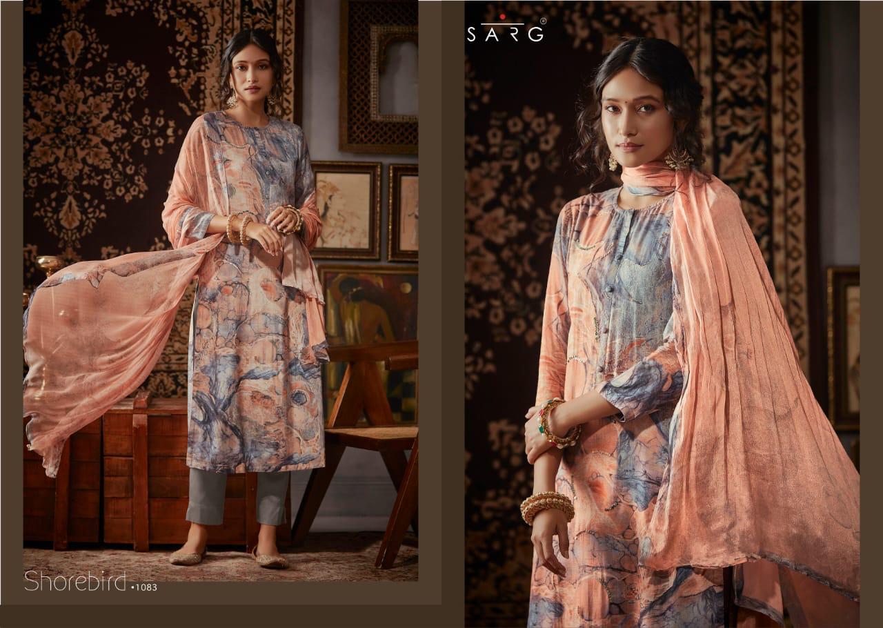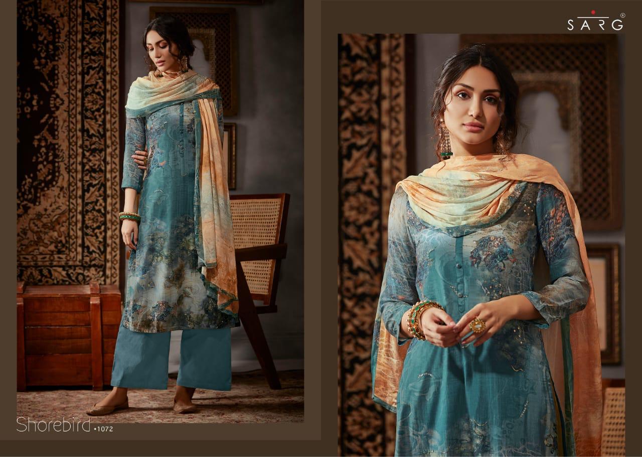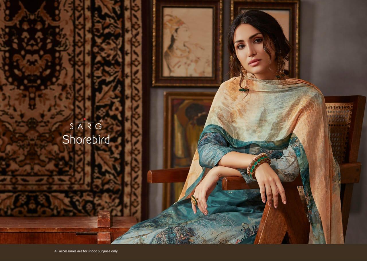 *SARG* A SAHIBA BRAND Presents - *SHOREBIRD* *TOP:* MUSLIN SILK DIGITAL PRINT WITH HANDWORK *BOTTOM:* MULBERRY SATIN *DUPATTA:* PURE RAMIE CHINON DIGITAL PRINT *RATE:* 1895/- |