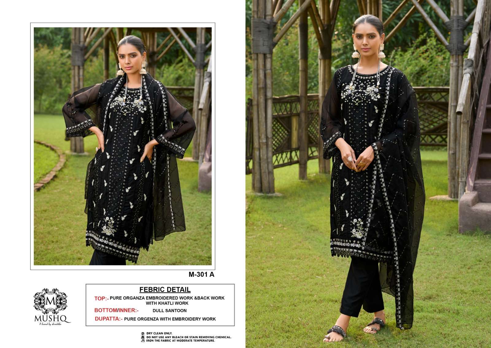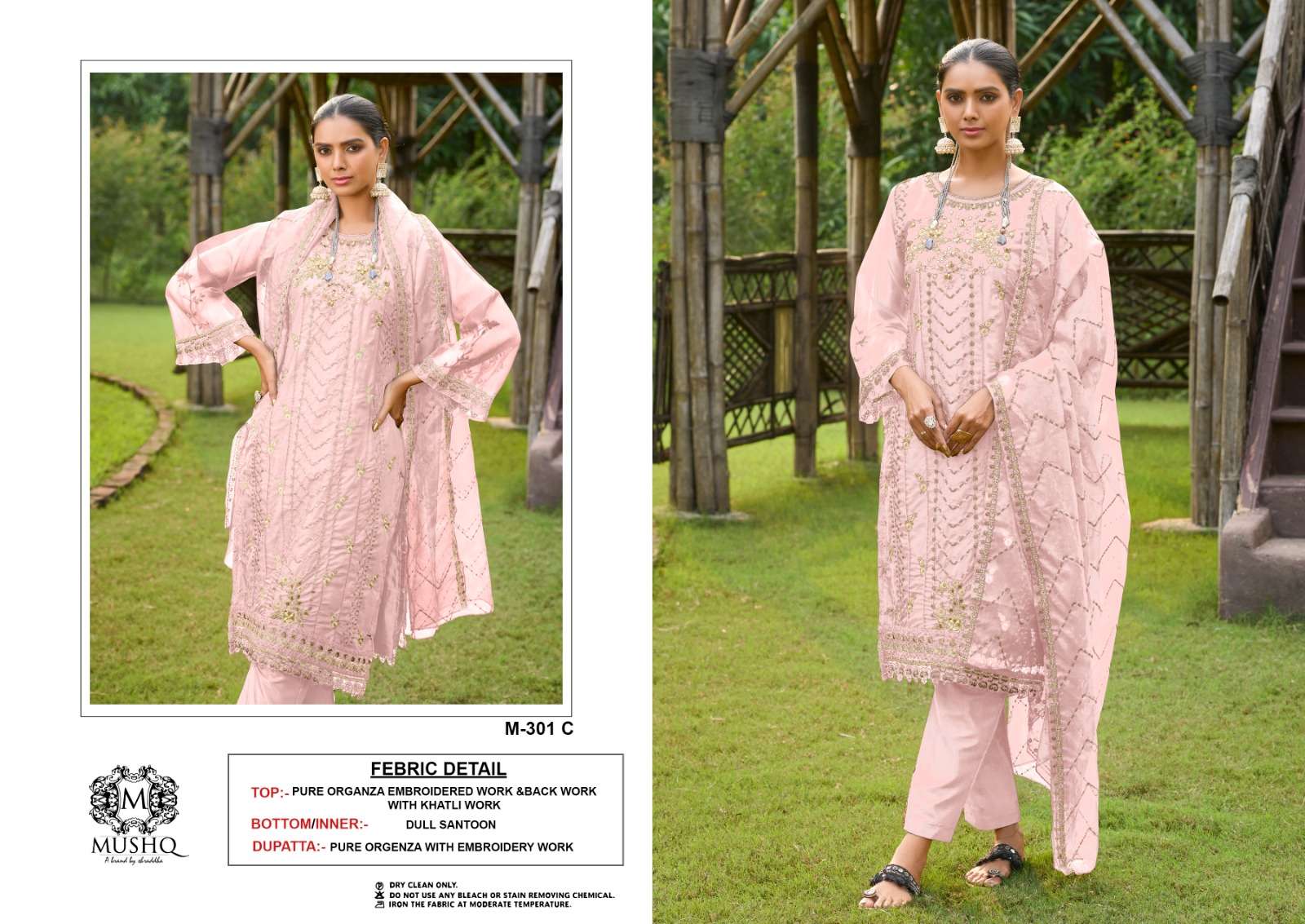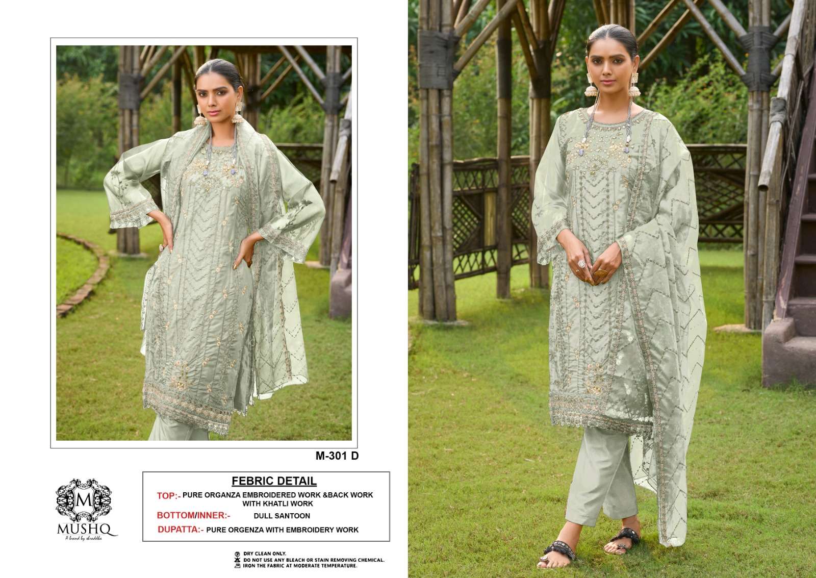 SHRADDHA D NO M 301 MUSHQ A PURE ORGANZA suit collection manufacturer surat