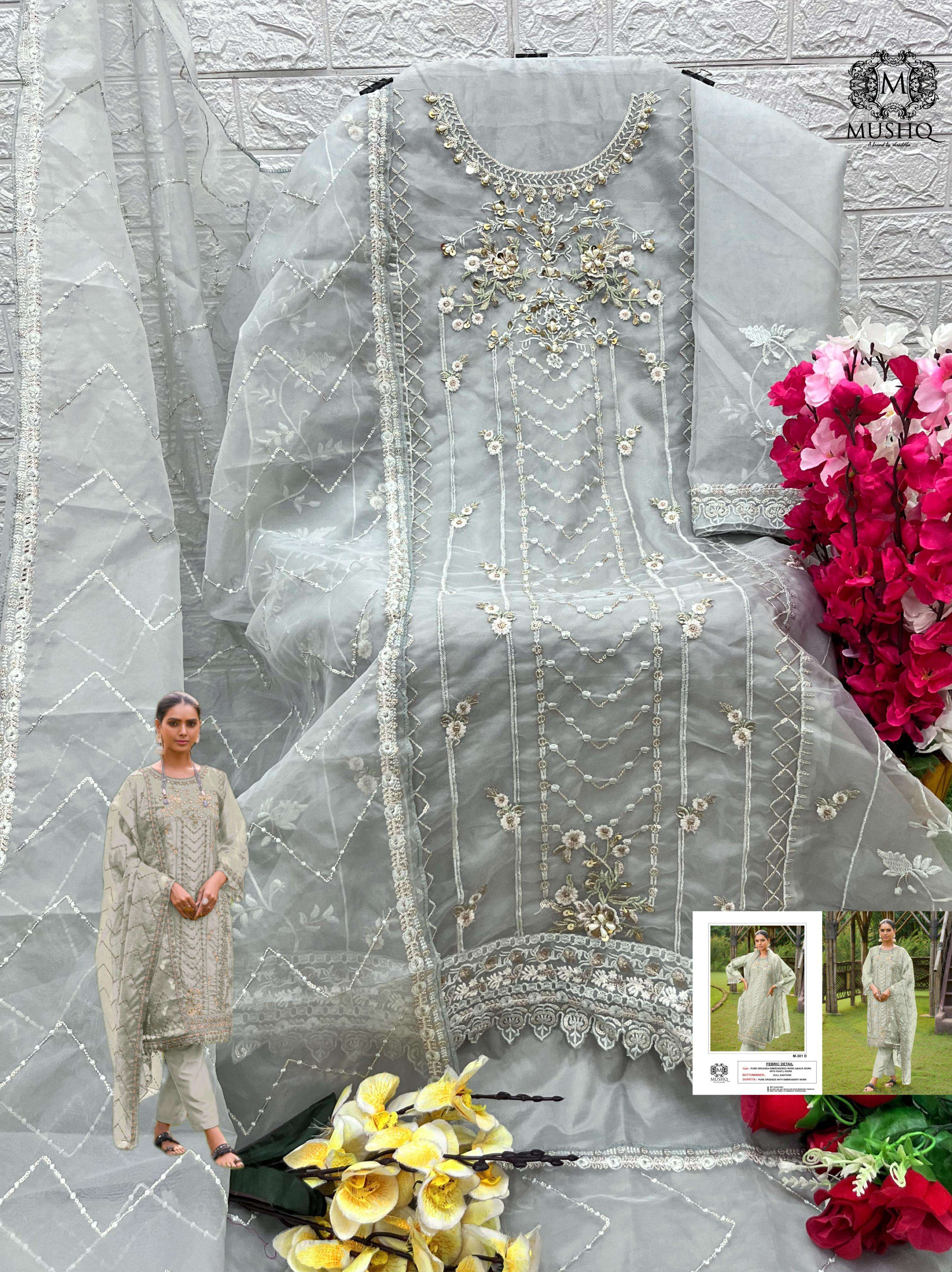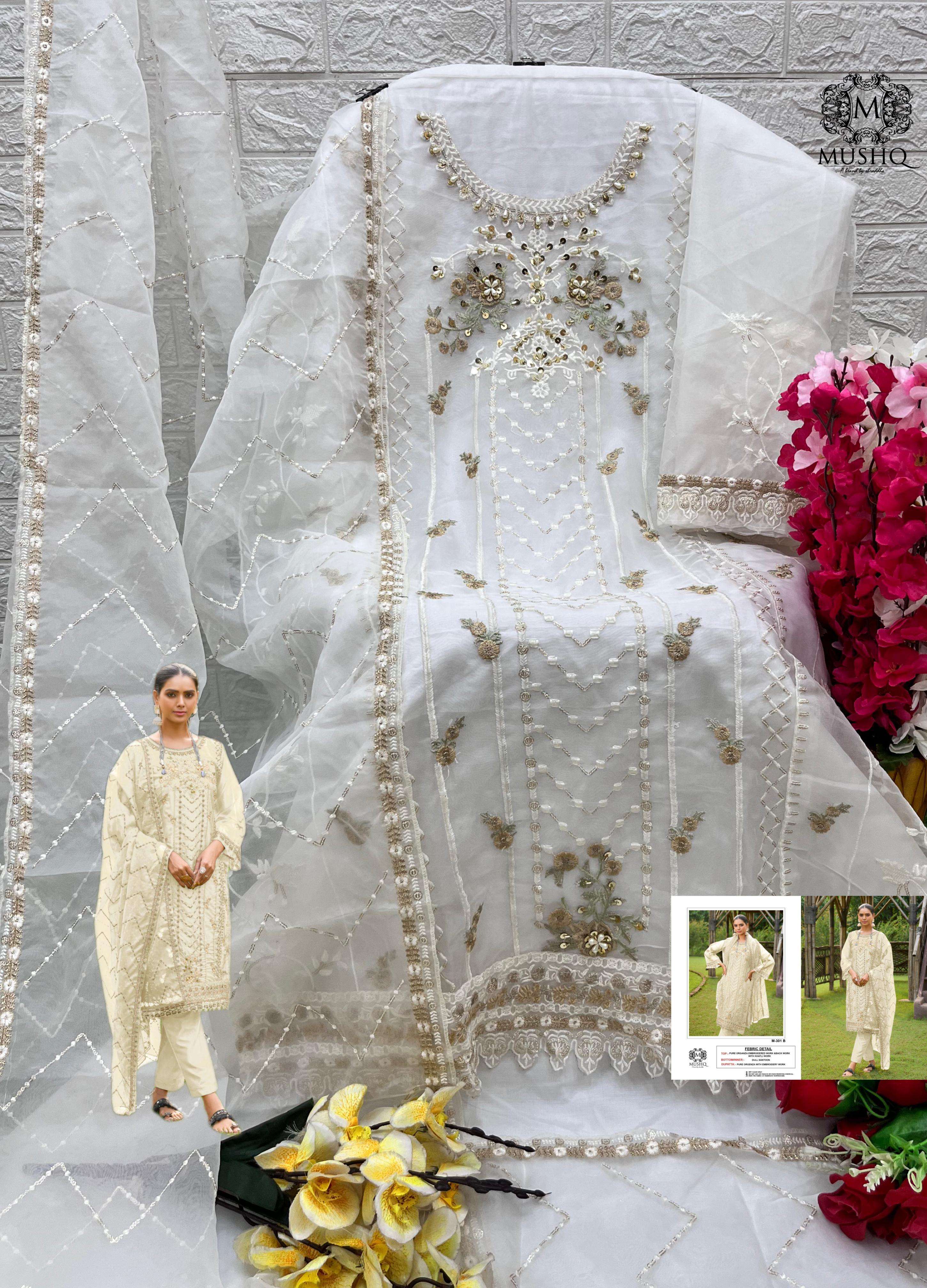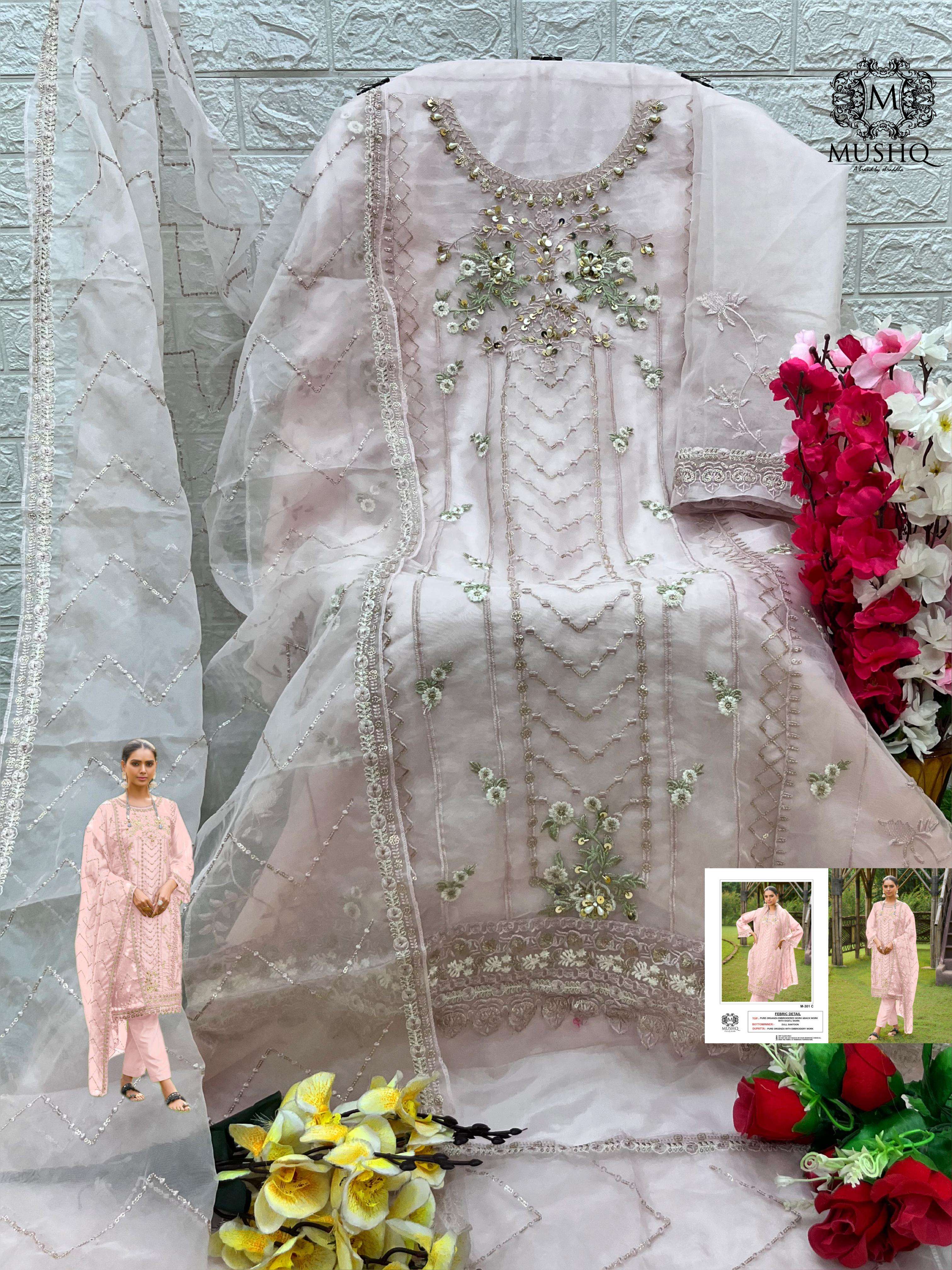 SHRADDHA D NO M 301 MUSHQ A PURE ORGANZA suit collection manufacturer surat