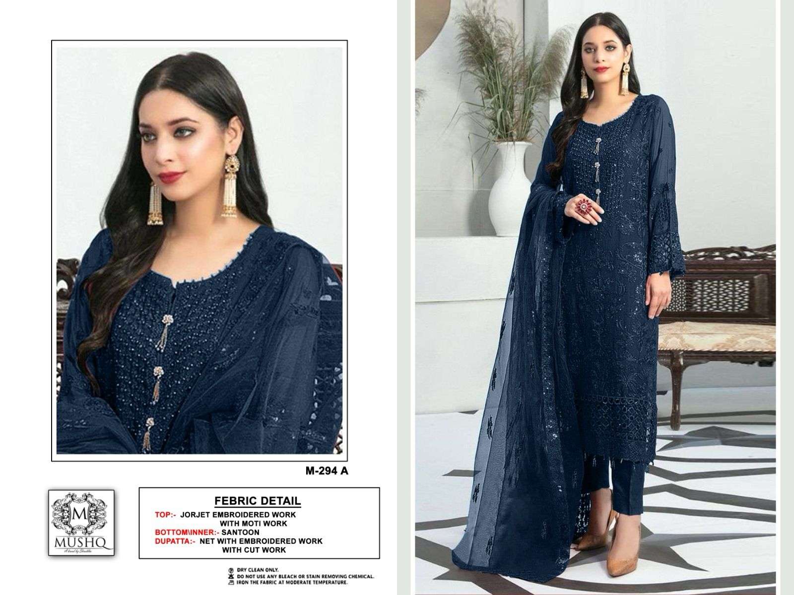 SHRADDHA M 294 by MUSHQ HEAVY FOX GEORGETTE suit collection manufacturer surat