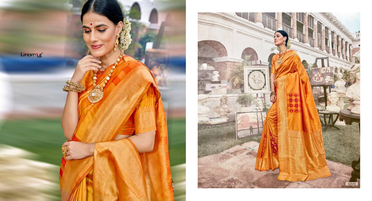 Buy Online Shravanti By Lifestyle Series 62641 To 62646 Silk Sarees Wholesale Supplier India 6 Pcs of Full Catalogue at Wholesale Price. Looking for Shravanti By Lifestyle Series 62641 To 62646 Silk Sarees Wholesale Supplier India Full Catalouge at Best Price? Buy Now Shravanti By Lifestyle Series 62641 To 62646 Silk Sarees Wholesale Supplier India at Wholesale Rate of Rs 9306 with Total 6 Pcs from authroized dealer and supplier of LIFESTYLE Brand. Cost of Each piece is just only Rs 1551 which is very low and affordable price to resale the product in your retail store ,This is Surat based Wholesale Supplier & Dealer of LIFESTYLE Brand. Click on Brand name to Know more about LIFESTYLE Brand's products.Call or Whatsapp on 9898838984 for booking or enquiry