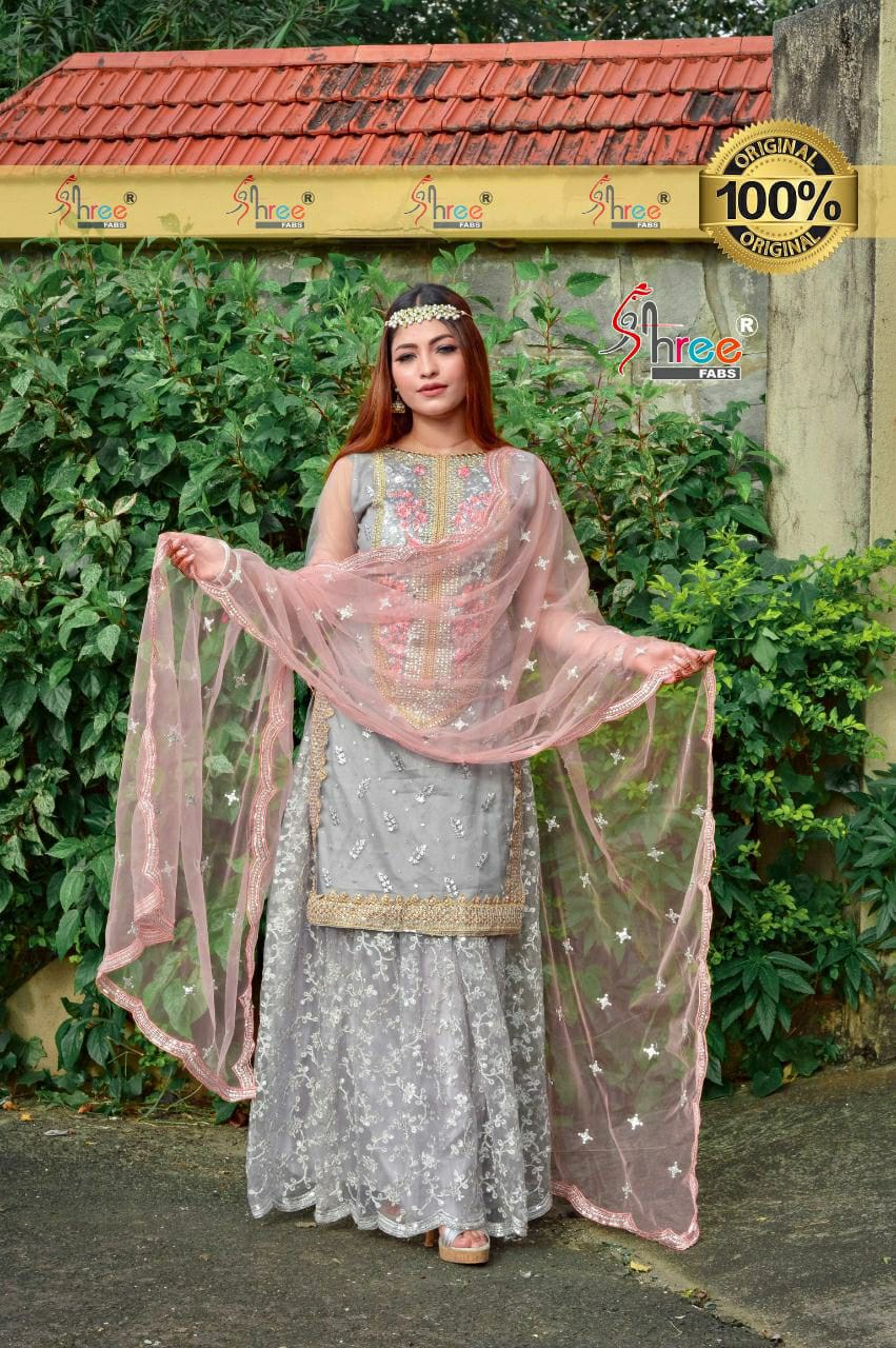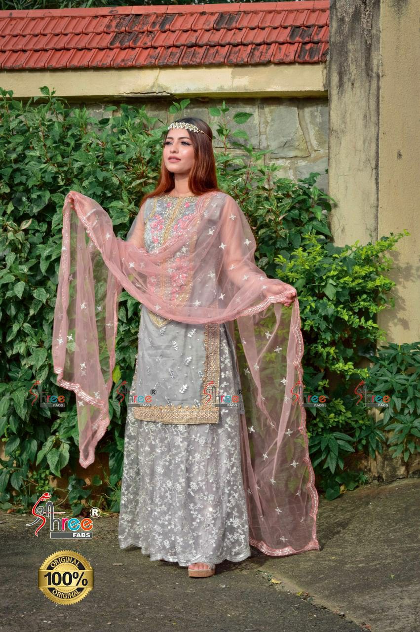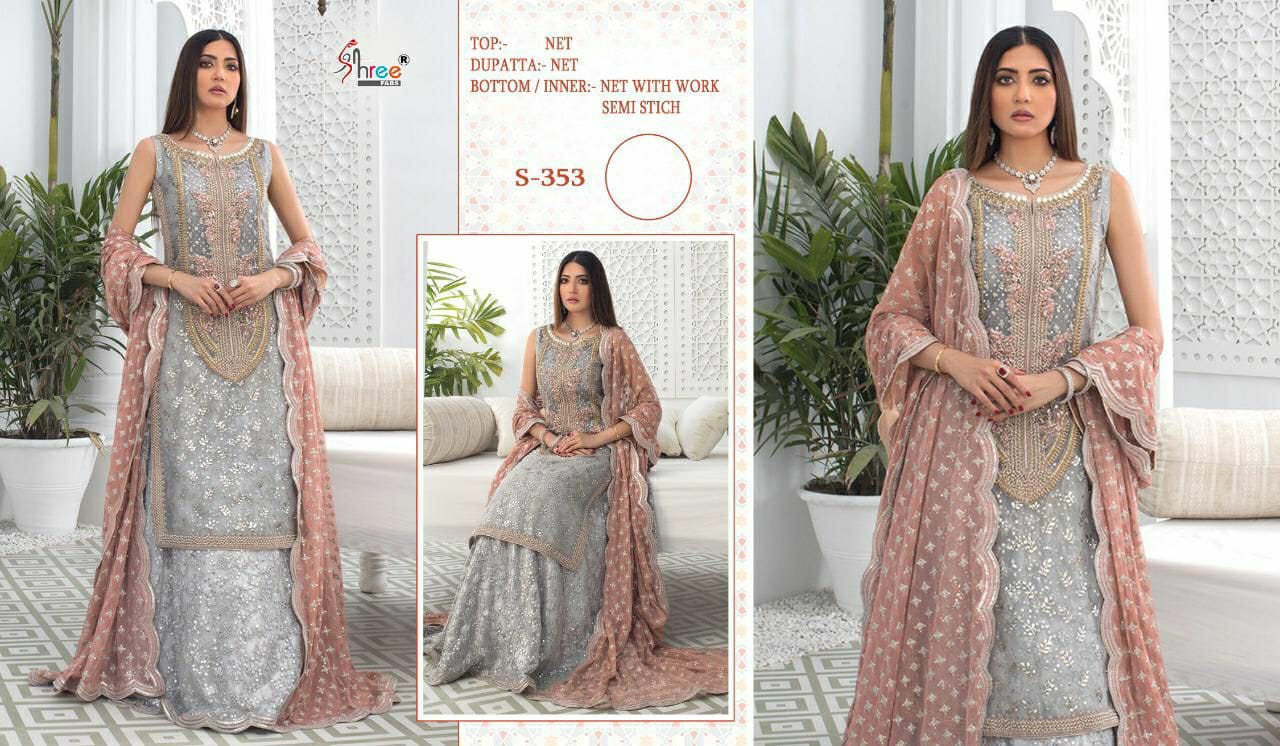 *Brand :* shree fab *Catalog Name :* S 353 *Price :* ?1150 *Piece :* 1 *Total Price :* 1150 ( GST Extra ) *Size :* Unstitched *Fabric :* net *Availibility :* On Booking 100+single |