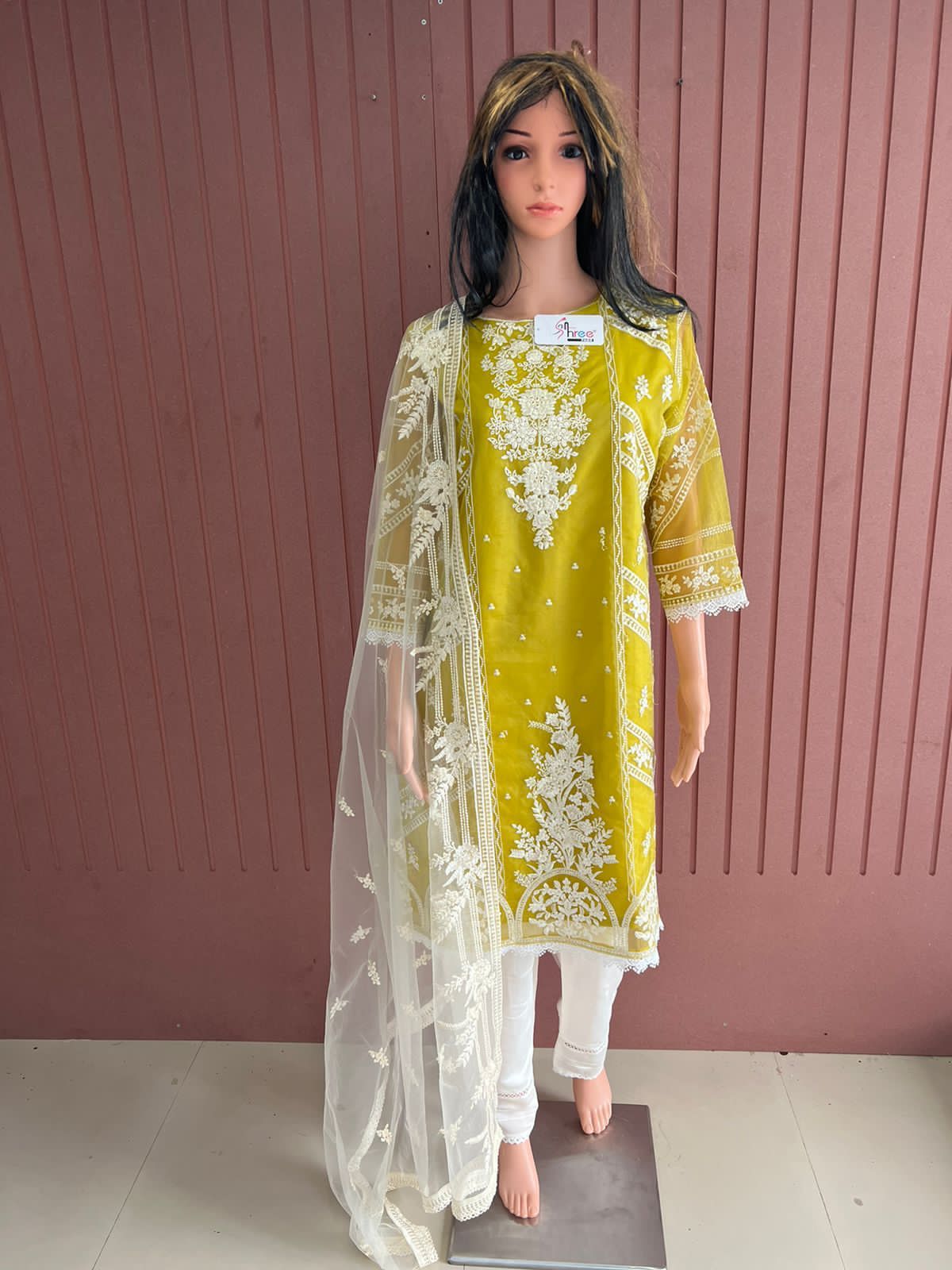 *SR-1015* Top pure organja with embroidery work Bottom lyra cotton Duppta embrodered net *Size:-XL-XXL* *Rate:-1250/-* GST 5 Percent Extra Shree fabs surat *READY TO SHIP ?* 100+single |