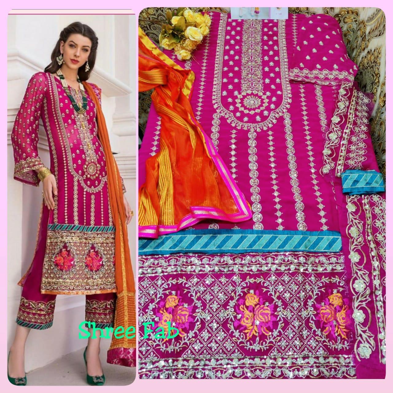 *LOOSE PCS AVAILABLE* *SHREE FABS* Â?Â?. PRESENTSÂ?Â?Â?Â? *D.N. S-144* *Fabric details*? Top:- Heavy Georjet with Heavy Embroidery (With Santoon Inner) Bottam:- Santoon Dupatta:- Naylon Jaqard With Lace *Price:- Rs 1199/-? + 5% Gst Extra* *Single Pcs Available* *READY TO SHIP* BOOK YOUR ORDER NOW 100+single |