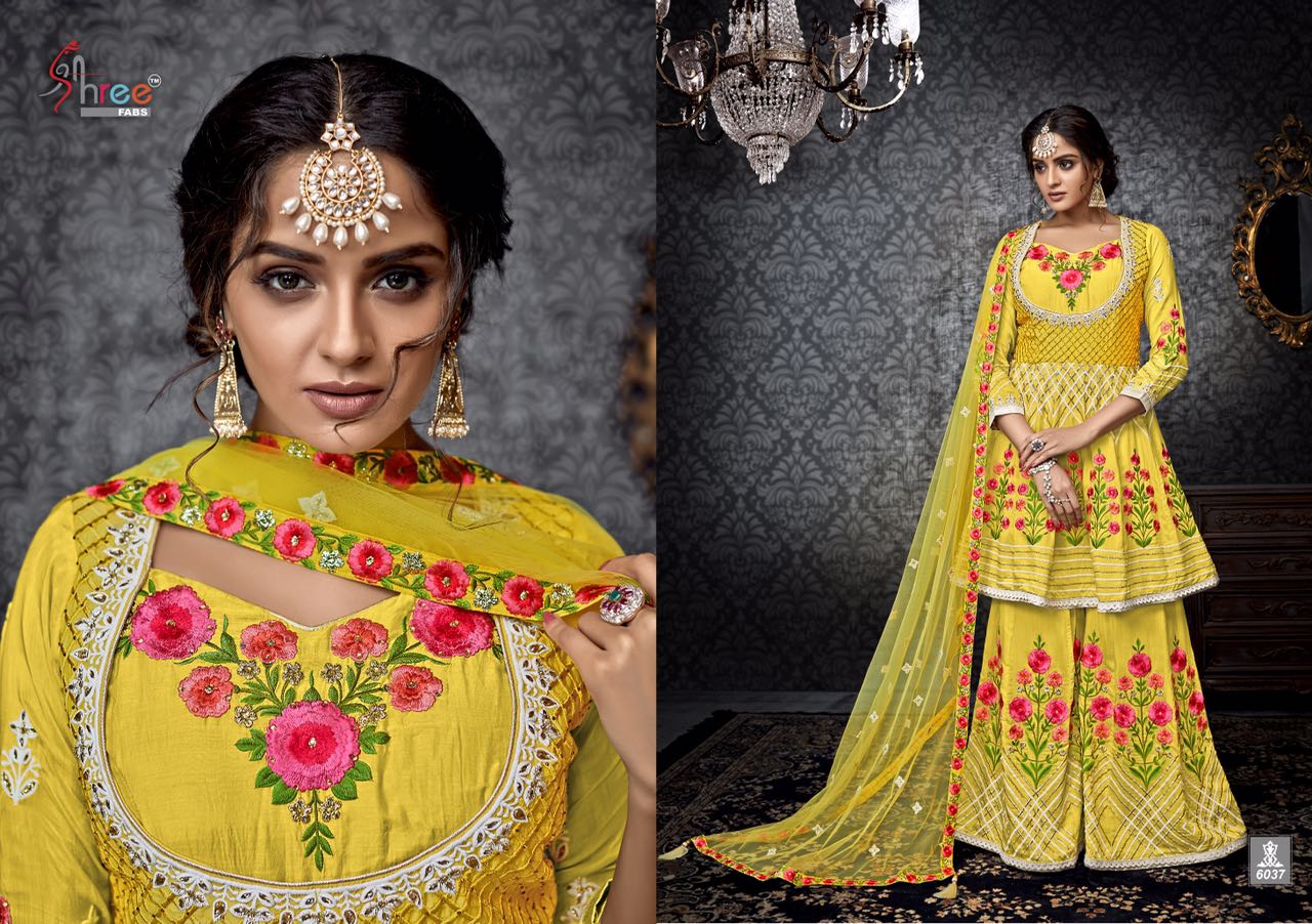 Buy Online Shree Fabs Shehnai Vol 8 6037 Series Designer Bridal Sharara Suit Catlog Wholesaler Surat 5 Pcs of Full Catalogue at Wholesale Price. Looking for Shree Fabs Shehnai Vol 8 6037 Series Designer Bridal Sharara Suit Catlog Wholesaler Surat Full Catalouge at Best Price? Buy Now Shree Fabs Shehnai Vol 8 6037 Series Designer Bridal Sharara Suit Catlog Wholesaler Surat at Wholesale Rate of Rs 9995 with Total 5 Pcs from authroized dealer and supplier of SHREE FABS Brand. Cost of Each piece is just only Rs 1999 which is very low and affordable price to resale the product in your retail store ,This is Surat based Wholesale Supplier & Dealer of SHREE FABS Brand. Click on Brand name to Know more about SHREE FABS Brand's products.Call or Whatsapp on 9898838984 for booking or enquiry