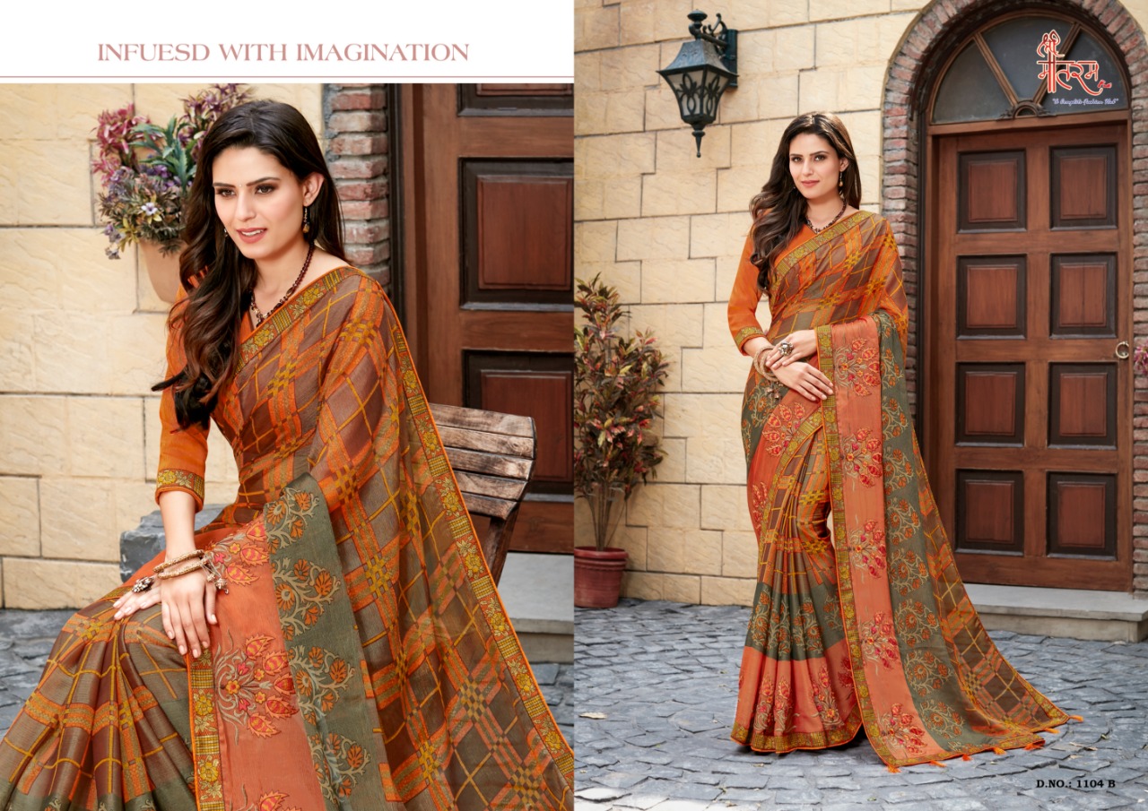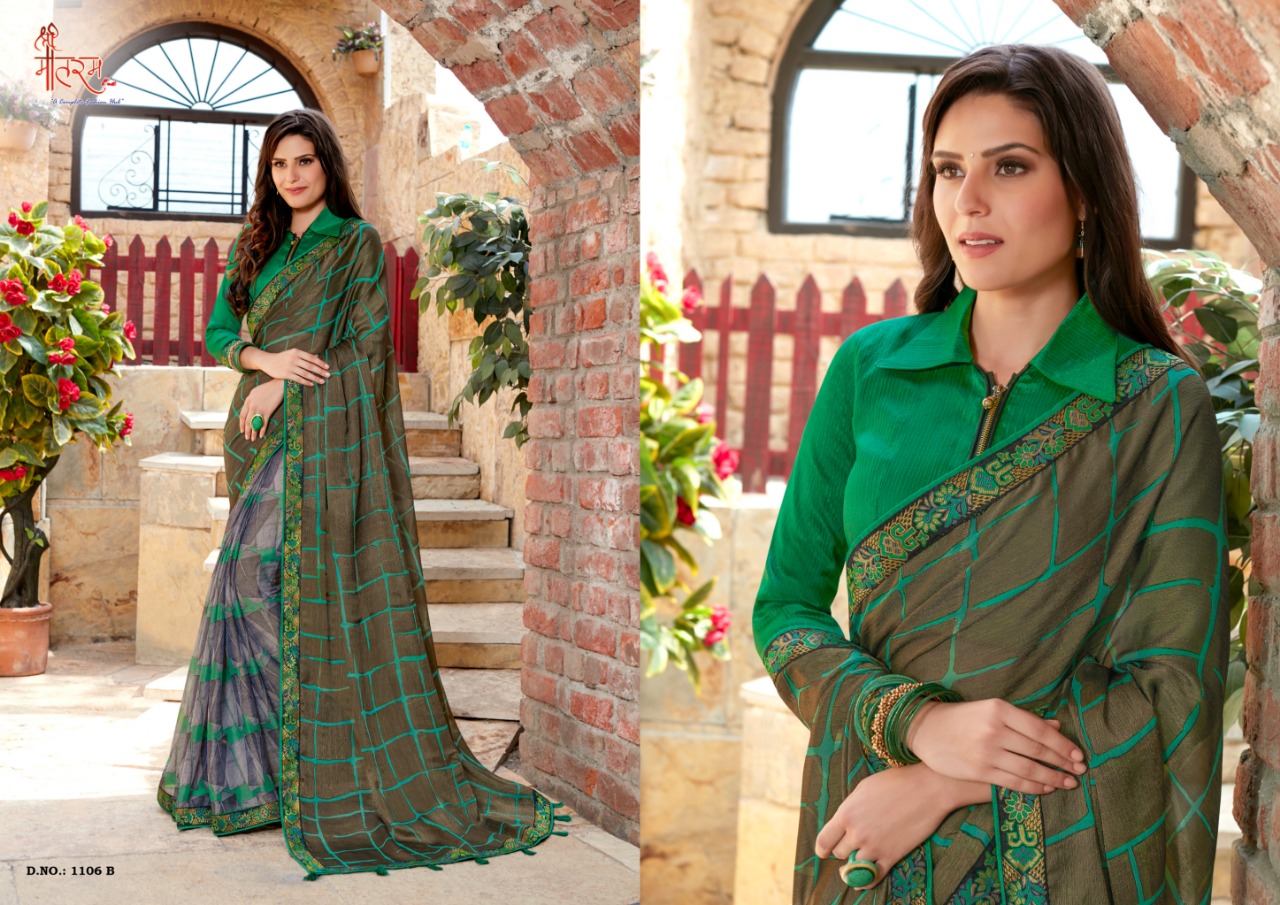 Buy Online Shree Mathram Maithili 1101 Series Party Wear Saree Catlogue 12 Pcs of Full Catalogue at Wholesale Price. Looking for Shree Mathram Maithili 1101 Series Party Wear Saree Catlogue Full Catalouge at Best Price? Buy Now Shree Mathram Maithili 1101 Series Party Wear Saree Catlogue at Wholesale Rate of Rs 10464 with Total 12 Pcs from authroized dealer and supplier of Shree Mathram Brand. Cost of Each piece is just only Rs 872 which is very low and affordable price to resale the product in your retail store ,This is Surat based Wholesale Supplier & Dealer of Shree Mathram Brand. Click on Brand name to Know more about Shree Mathram Brand's products.Call or Whatsapp on 9898838984 for booking or enquiry