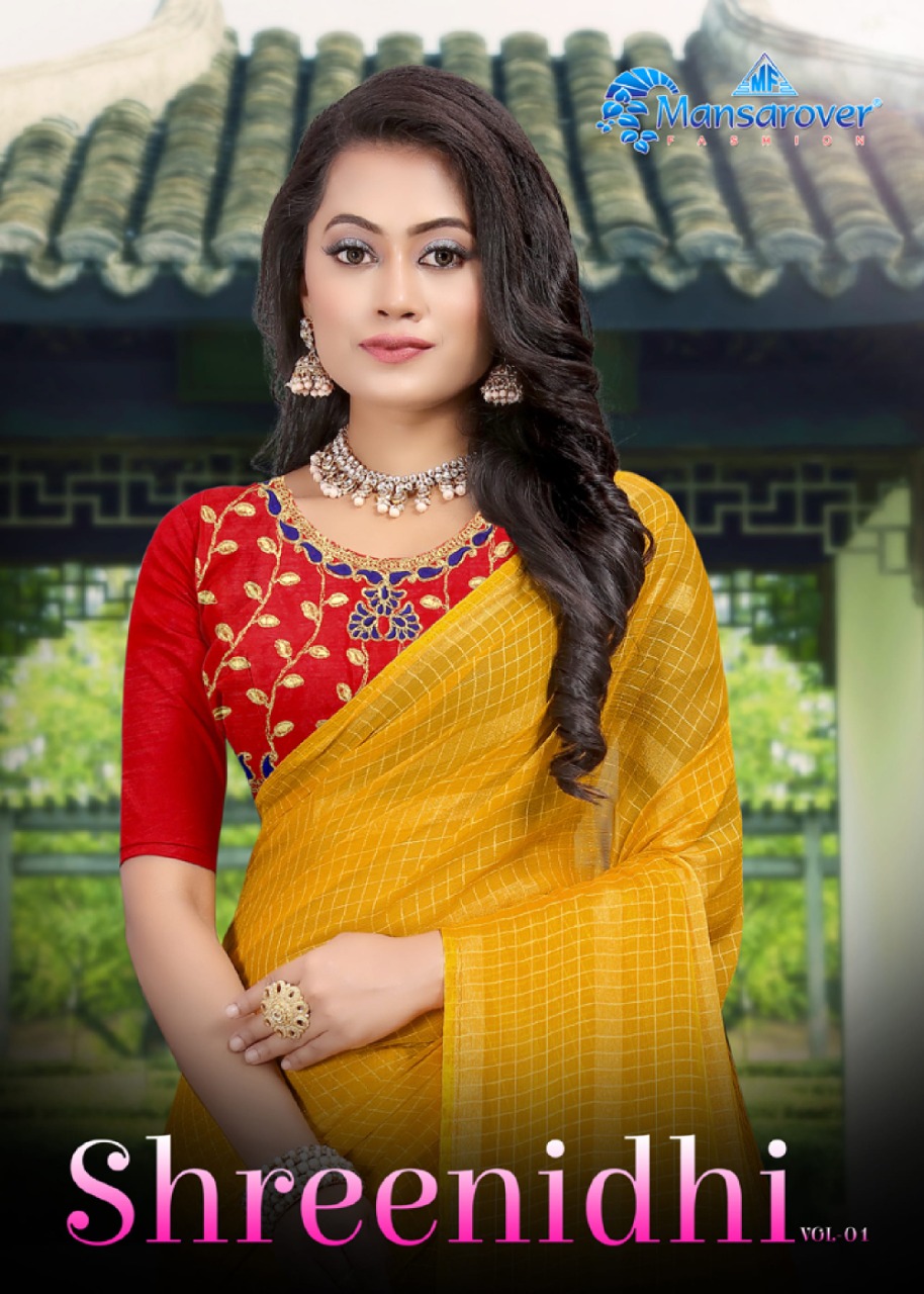 _NEW INTRODUCING_ _*SHREENIDHI*_ _Brand:- *MANSAROVER FASHION*_ _Rate:- *575/-*_ _Fabric:- *40*40 CHIFFON PANETAR CHEX CHOKDA DYED* *WITH EXCLUSIVE DIGITAL EMBROIDERY WORK BLOUSE WITH JHALAR PALLU* _Total Designs:- *08*_ _*WITH BLOUSE*_ Set to set . |