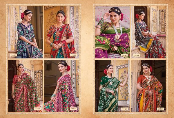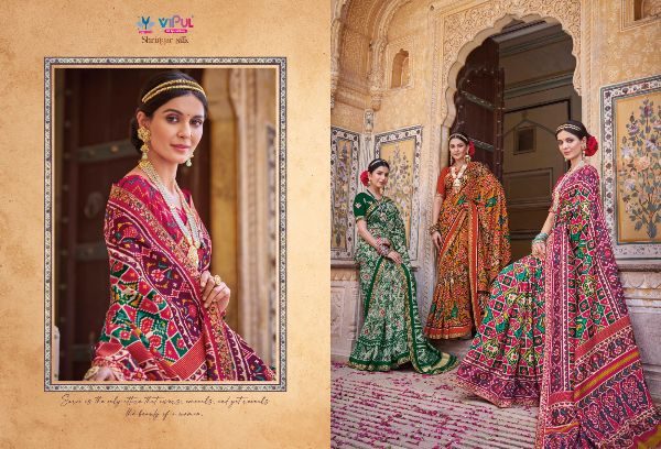 *Brand : Vipul* *Catalog: Shringar Silk* *Series : 74403 To 74410* *Saree : Smooth Patola Silk With Embroidery Work Border Saree* *Blouse: Patola Print Unstitch* *Price : 1151/-+5% Gst* *Occasion : Party Wear ,Festival Wear* 100+/ single |