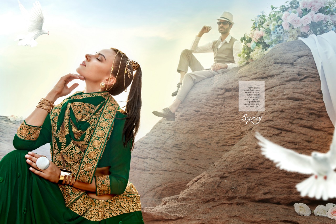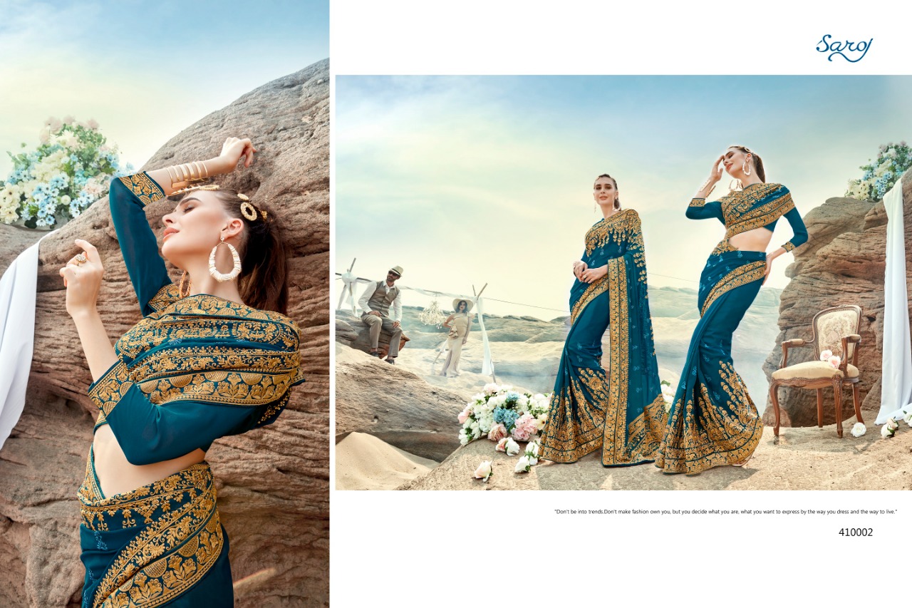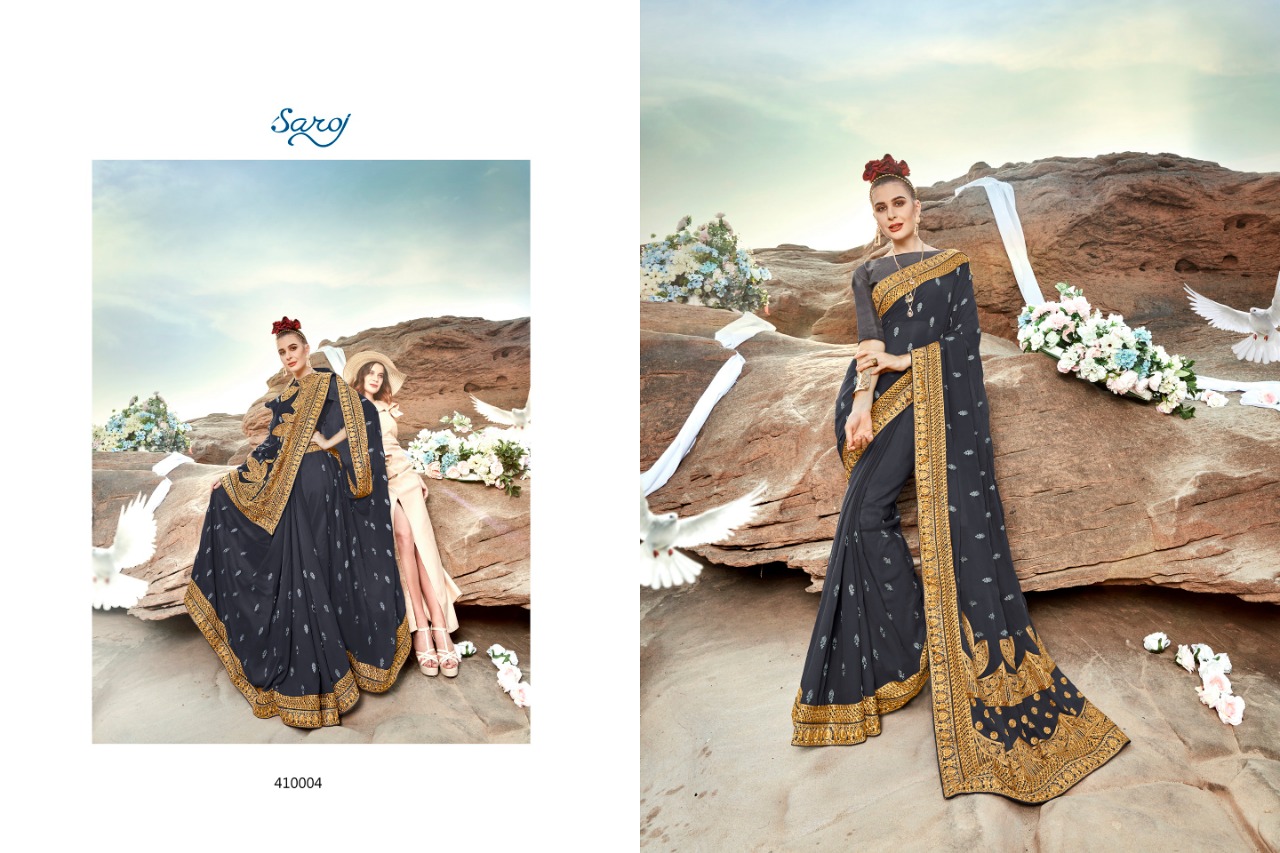 Shubharambh By Saroj Georgette Embroidered Designer Party Wear Sarees Wholesale Supplier Gujarat