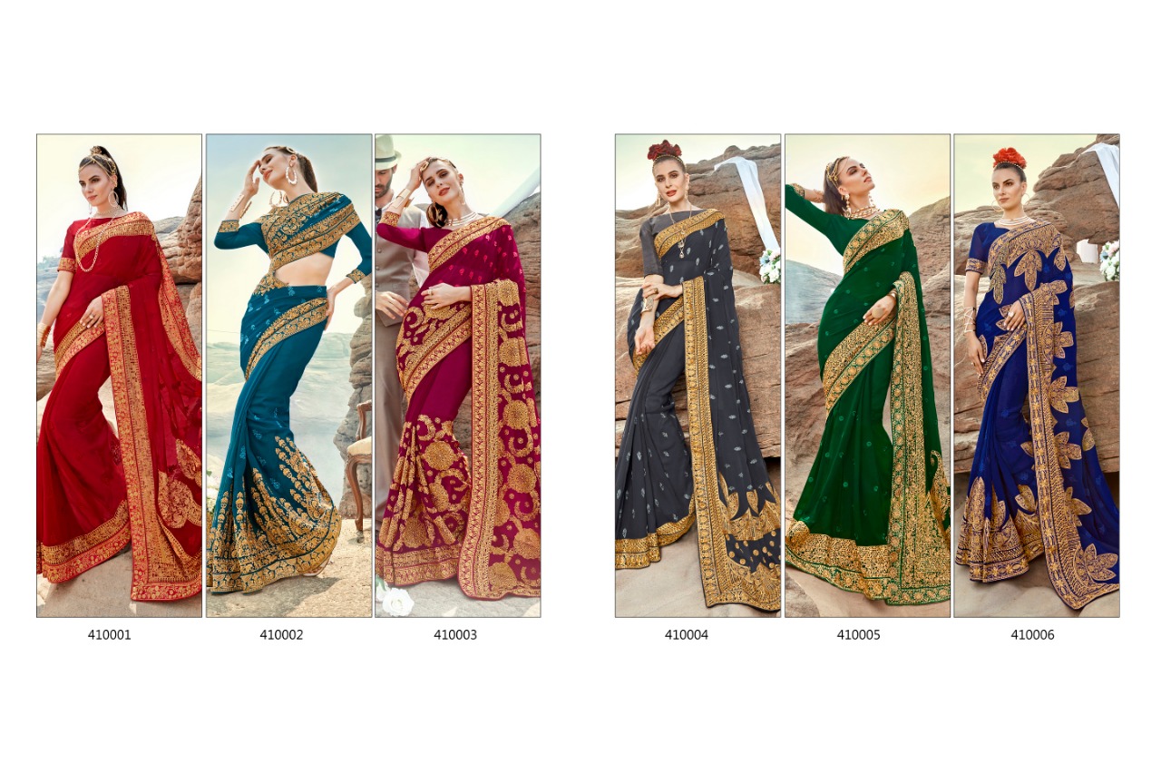 *Shubharambh by Saroj * Fabric: Blooming Georgette with heavy emb. work. Blouse: Blooming Georgette. 6 Designs in set. Rate -1975 per pcs . Set To Set. GST 5 Percent Extra. Delivery today |