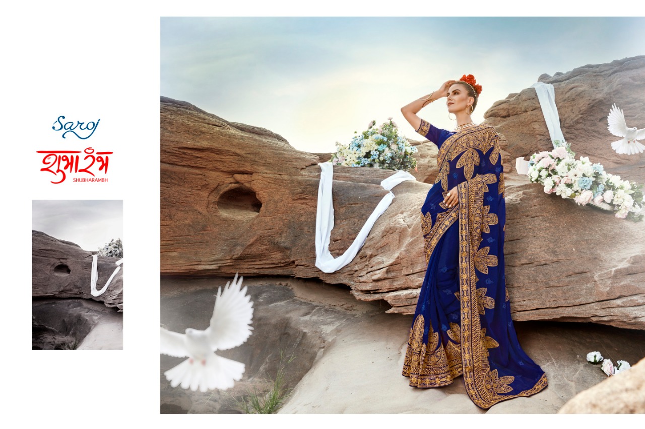 Buy Online Shubharambh By Saroj Georgette Embroidered Designer Party Wear Sarees Wholesale Supplier Gujarat 6 Pcs of Full Catalogue at Wholesale Price. Looking for Shubharambh By Saroj Georgette Embroidered Designer Party Wear Sarees Wholesale Supplier Gujarat Full Catalouge at Best Price? Buy Now Shubharambh By Saroj Georgette Embroidered Designer Party Wear Sarees Wholesale Supplier Gujarat at Wholesale Rate of Rs 11850 with Total 6 Pcs from authroized dealer and supplier of SAROJ SAREE Brand. Cost of Each piece is just only Rs 1975 which is very low and affordable price to resale the product in your retail store ,This is Surat based Wholesale Supplier & Dealer of SAROJ SAREE Brand. Click on Brand name to Know more about SAROJ SAREE Brand's products.Call or Whatsapp on 9898838984 for booking or enquiry