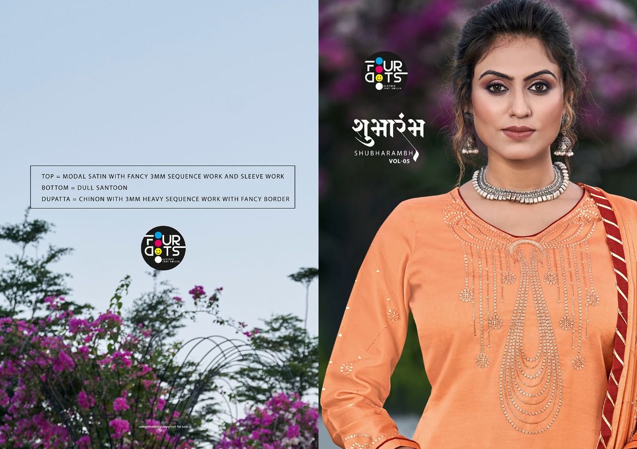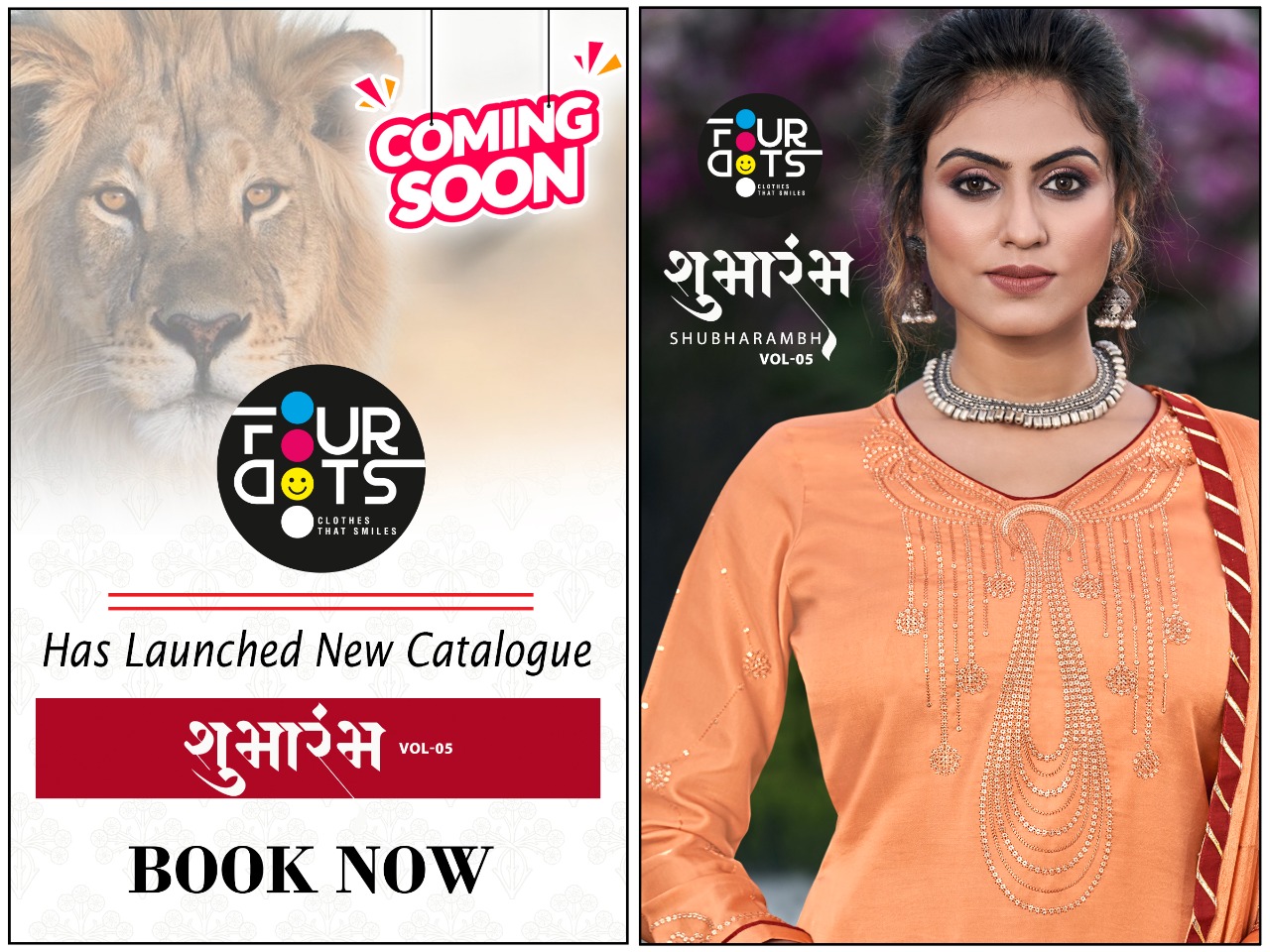 Buy Online Shubharambh Vol 5 By Fourdots Dealer From India 4 Pcs of Full Catalogue at Wholesale Price. Looking for Shubharambh Vol 5 By Fourdots Dealer From India Full Catalouge at Best Price? Buy Now Shubharambh Vol 5 By Fourdots Dealer From India at Wholesale Rate of Rs 3596 with Total 4 Pcs from authroized dealer and supplier of Brand. Cost of Each piece is just only Rs 899 which is very low and affordable price to resale the product in your retail store ,This is Surat based Wholesale Supplier & Dealer of Brand. Click on Brand name to Know more about Brand's products.Call or Whatsapp on 9898838984 for booking or enquiry
