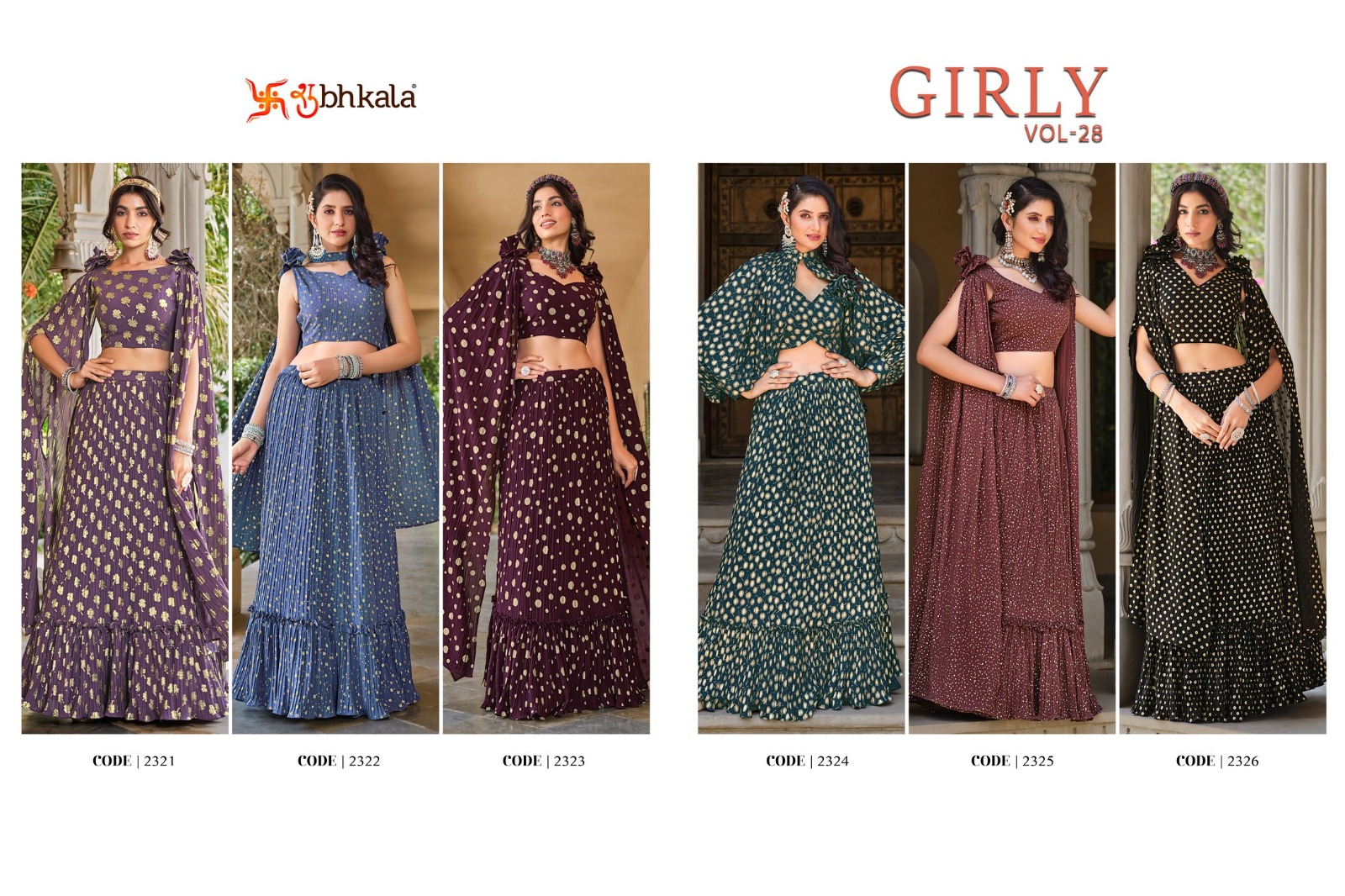 Buy Online Shubhkala Launching A Girl Vol 28 Exclusive Foil Print Lehenga Choli Fancg Dupatta 6 Pcs of Full Catalogue at Wholesale Price. Looking for Shubhkala Launching A Girl Vol 28 Exclusive Foil Print Lehenga Choli Fancg Dupatta Full Catalouge at Best Price? Buy Now Shubhkala Launching A Girl Vol 28 Exclusive Foil Print Lehenga Choli Fancg Dupatta at Wholesale Rate of Rs 12000 with Total 6 Pcs from authroized dealer and supplier of Brand. Cost of Each piece is just only Rs 2000 which is very low and affordable price to resale the product in your retail store ,This is Surat based Wholesale Supplier & Dealer of Brand. Click on Brand name to Know more about Brand's products.Call or Whatsapp on 9898838984 for booking or enquiry