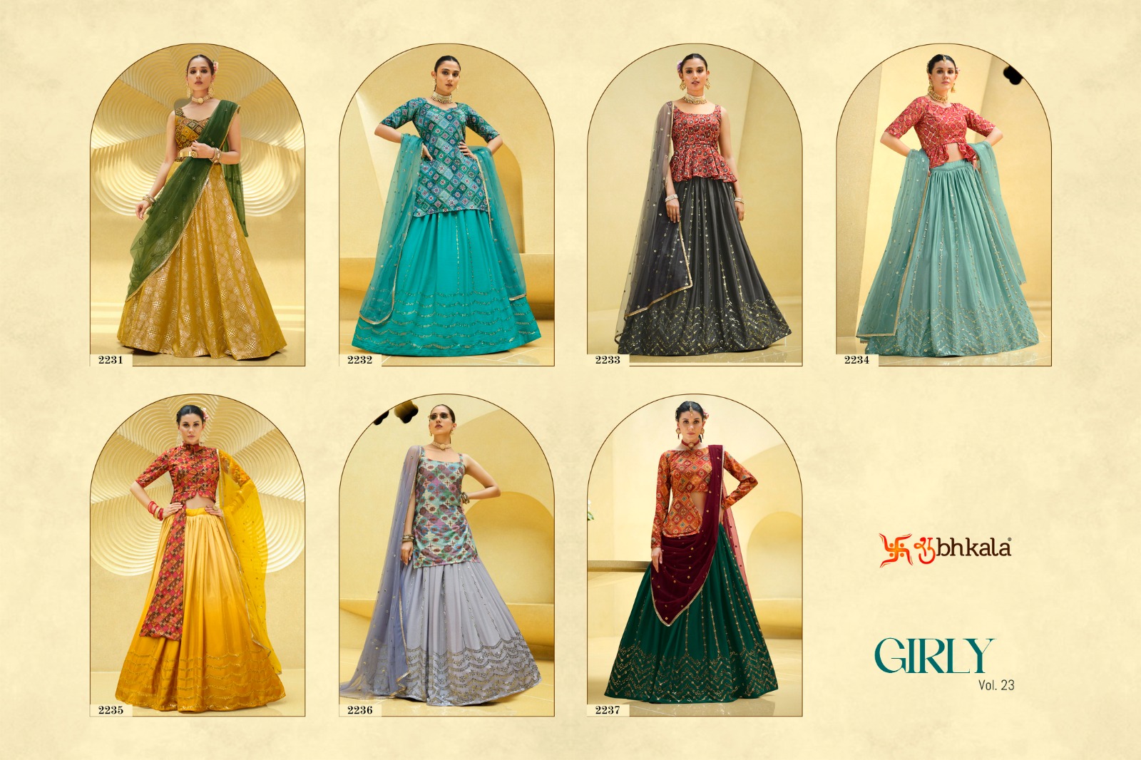 Buy Online Shubhkala Launching A Girly Vol 23 Exclusive Embroidered Crop Top Style Lehenga Choli Collection Manufacturer Surat 7 Pcs of Full Catalogue at Wholesale Price. Looking for Shubhkala Launching A Girly Vol 23 Exclusive Embroidered Crop Top Style Lehenga Choli Collection Manufacturer Surat Full Catalouge at Best Price? Buy Now Shubhkala Launching A Girly Vol 23 Exclusive Embroidered Crop Top Style Lehenga Choli Collection Manufacturer Surat at Wholesale Rate of Rs 0 with Total 7 Pcs from authroized dealer and supplier of Brand. Cost of Each piece is just only Rs 0 which is very low and affordable price to resale the product in your retail store ,This is Surat based Wholesale Supplier & Dealer of Brand. Click on Brand name to Know more about Brand's products.Call or Whatsapp on 9898838984 for booking or enquiry