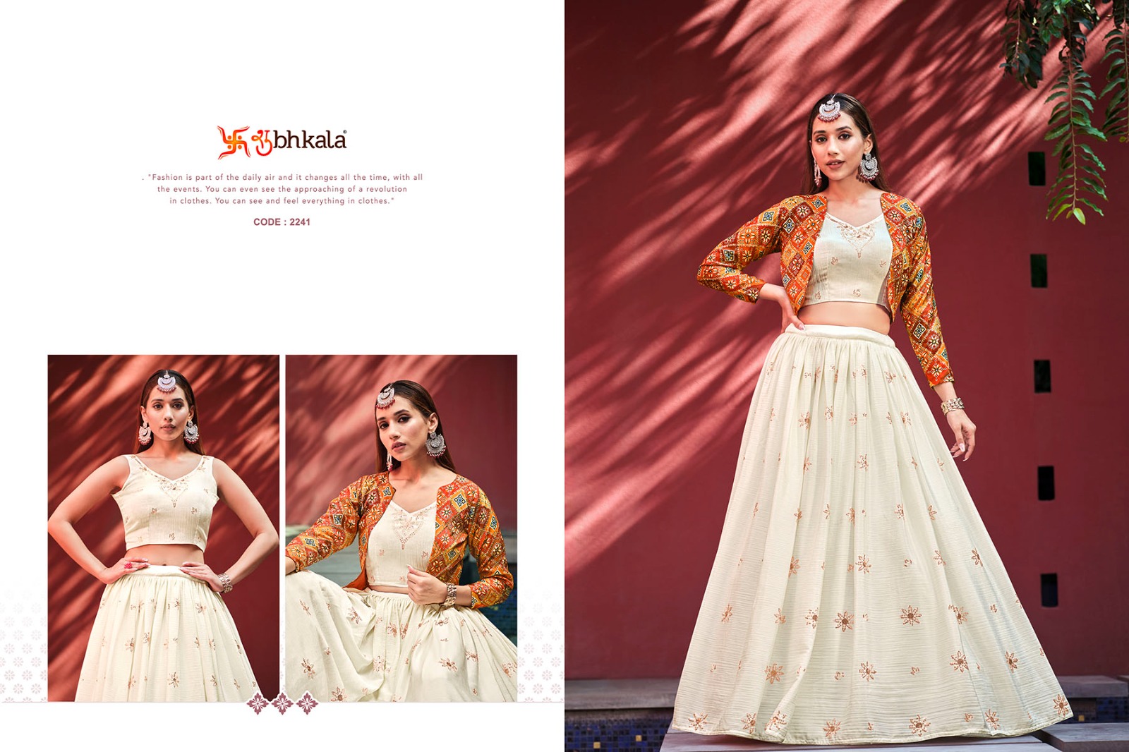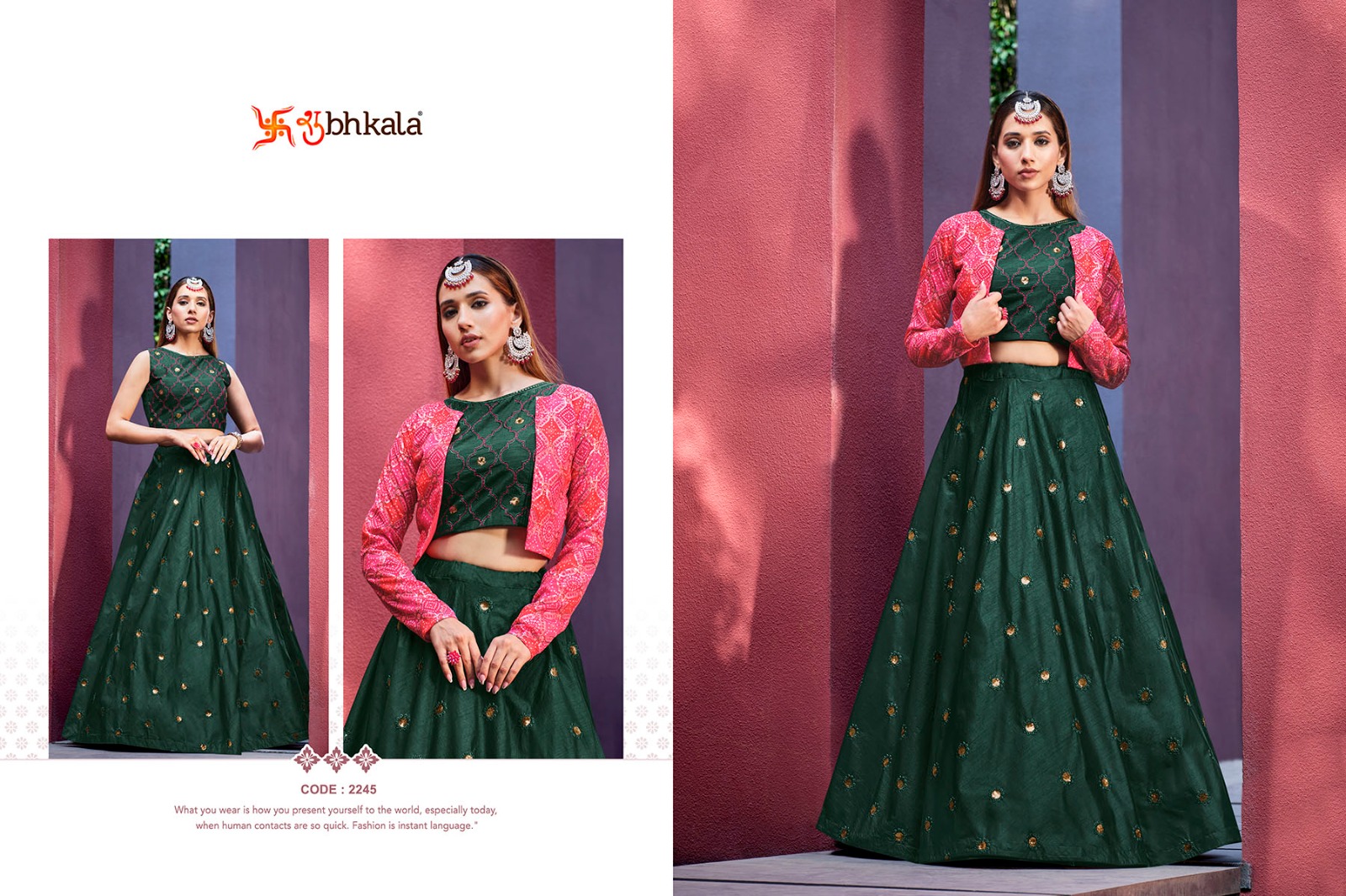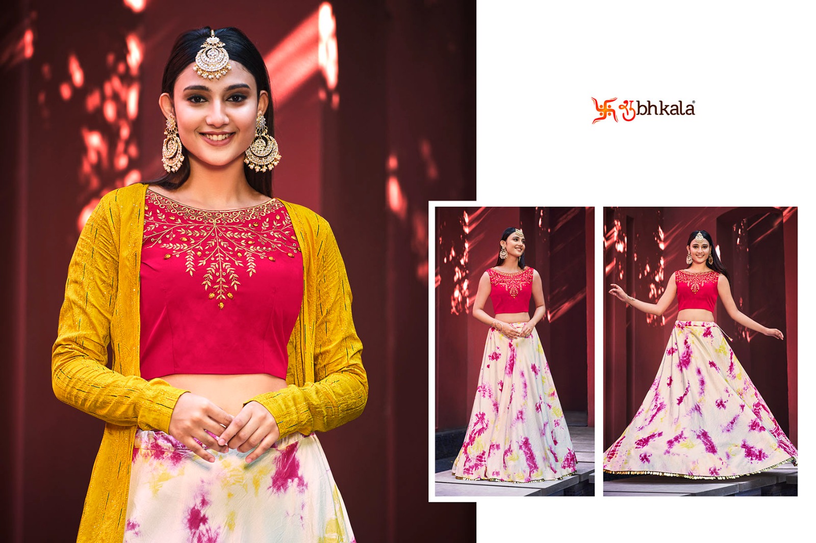 Shubhkala New Exclusive Crop Top Jacket Style Lehenga Choli Collection Catalog Launch Girly Vol 24