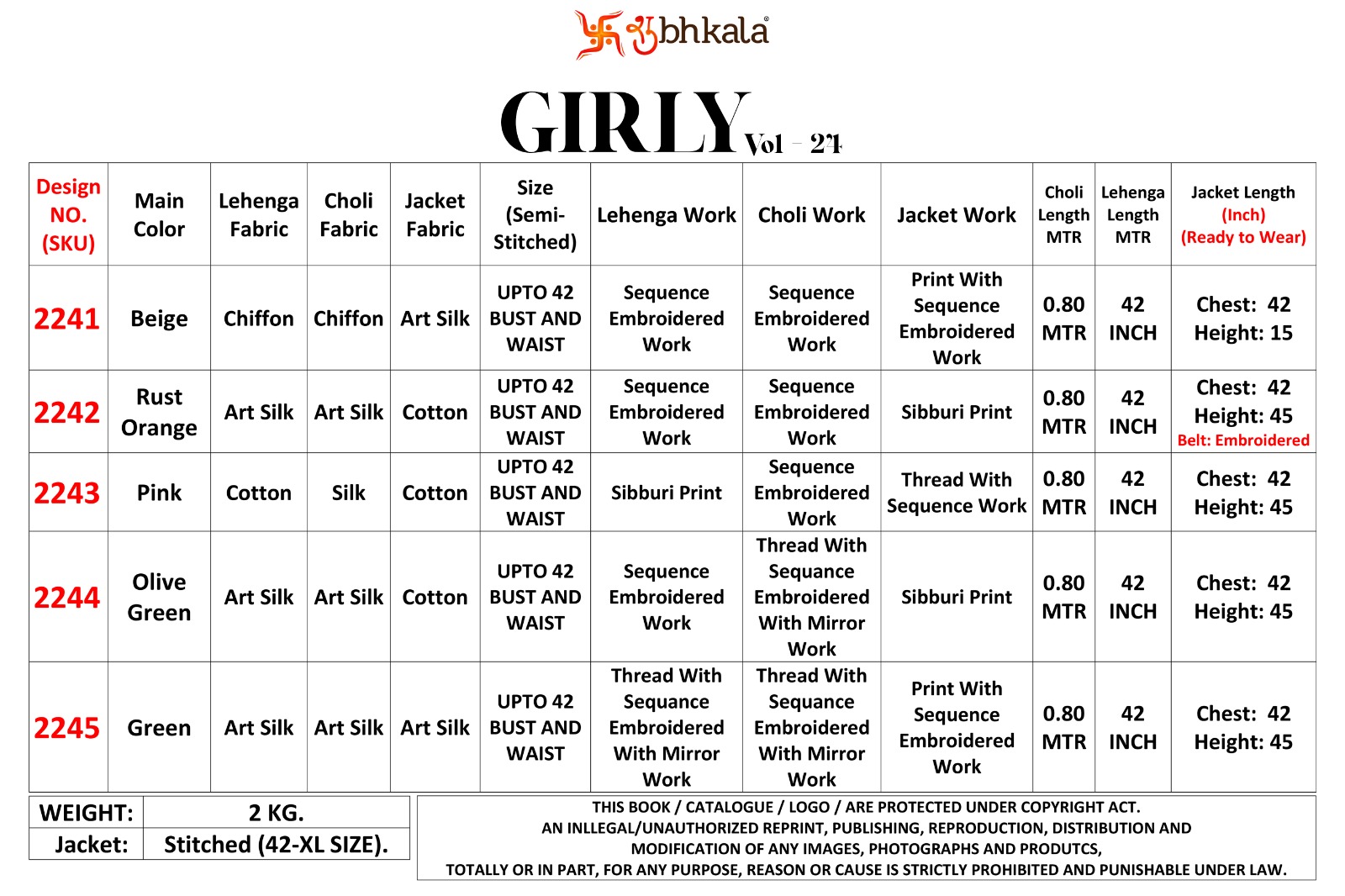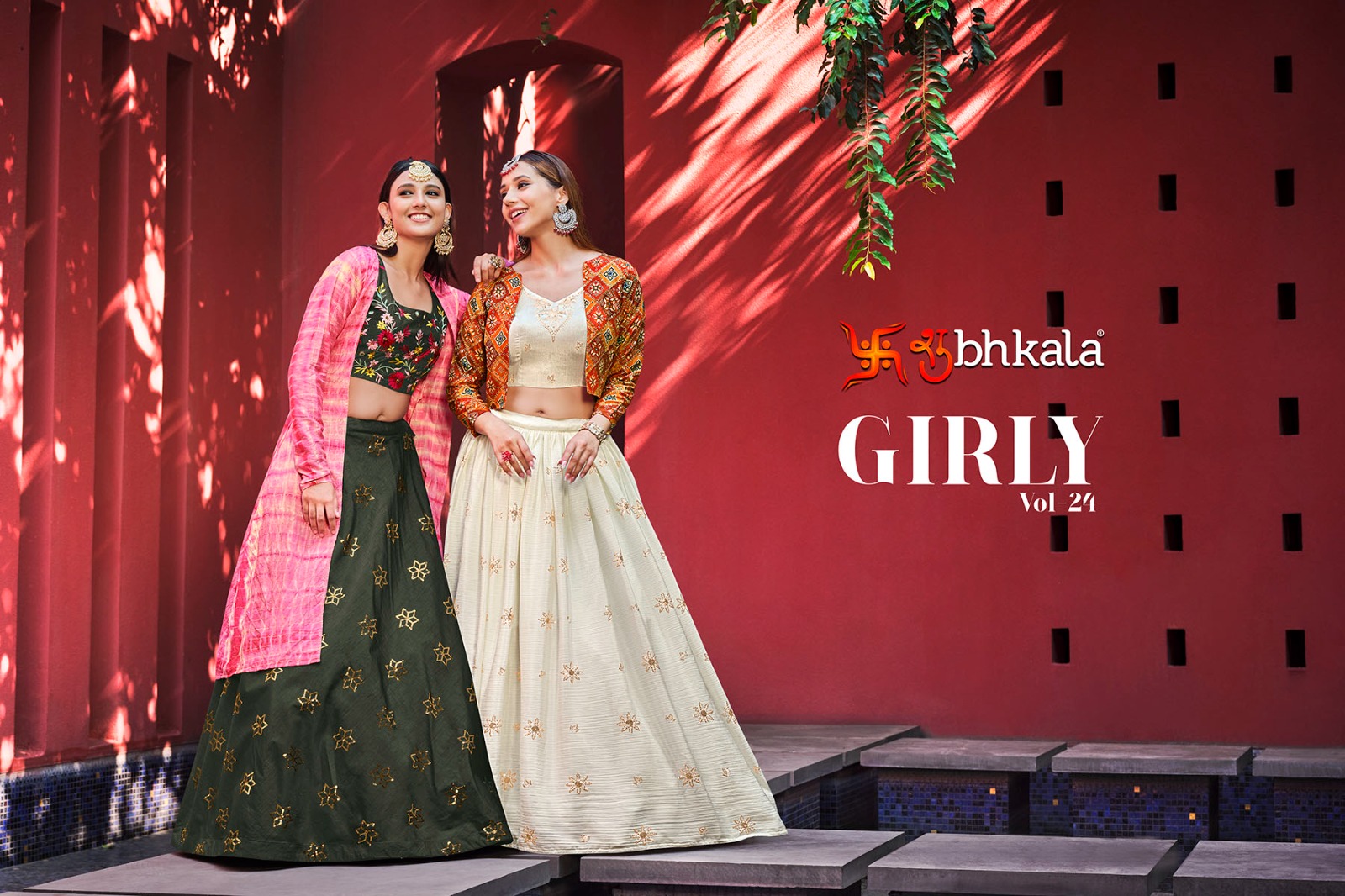 Buy Online Shubhkala New Exclusive Crop Top Jacket Style Lehenga Choli Collection Catalog Launch Girly Vol 24 5 Pcs of Full Catalogue at Wholesale Price. Looking for Shubhkala New Exclusive Crop Top Jacket Style Lehenga Choli Collection Catalog Launch Girly Vol 24 Full Catalouge at Best Price? Buy Now Shubhkala New Exclusive Crop Top Jacket Style Lehenga Choli Collection Catalog Launch Girly Vol 24 at Wholesale Rate of Rs 0 with Total 5 Pcs from authroized dealer and supplier of Brand. Cost of Each piece is just only Rs 0 which is very low and affordable price to resale the product in your retail store ,This is Surat based Wholesale Supplier & Dealer of Brand. Click on Brand name to Know more about Brand's products.Call or Whatsapp on 9898838984 for booking or enquiry
