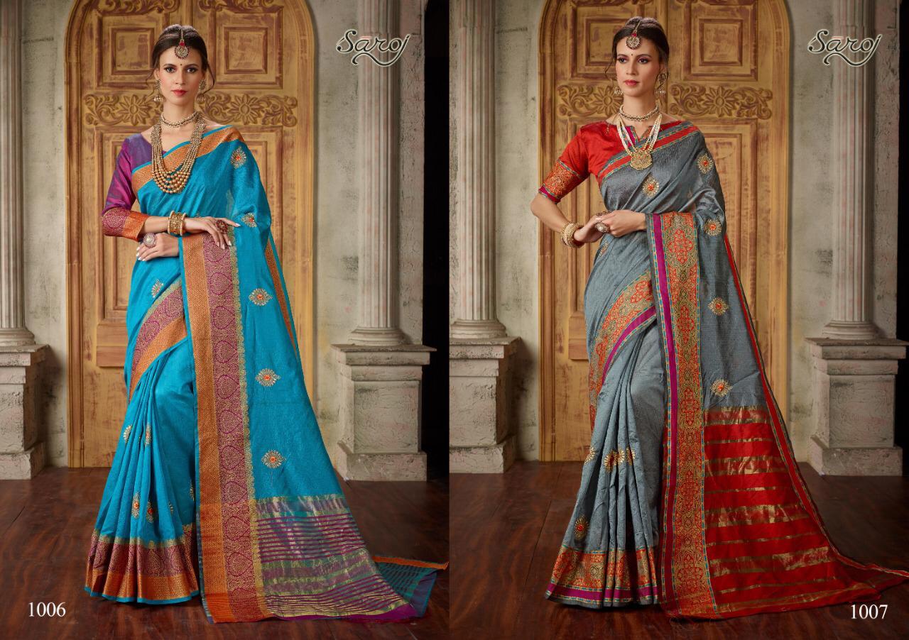 Buy Online Shubhmuhrat By Saroj Cotton Silk Sarees Wholesale Supplier Gujarat 8 Pcs of Full Catalogue at Wholesale Price. Looking for Shubhmuhrat By Saroj Cotton Silk Sarees Wholesale Supplier Gujarat Full Catalouge at Best Price? Buy Now Shubhmuhrat By Saroj Cotton Silk Sarees Wholesale Supplier Gujarat at Wholesale Rate of Rs 5720 with Total 8 Pcs from authroized dealer and supplier of SAROJ SAREE Brand. Cost of Each piece is just only Rs 715 which is very low and affordable price to resale the product in your retail store ,This is Surat based Wholesale Supplier & Dealer of SAROJ SAREE Brand. Click on Brand name to Know more about SAROJ SAREE Brand's products.Call or Whatsapp on 9898838984 for booking or enquiry