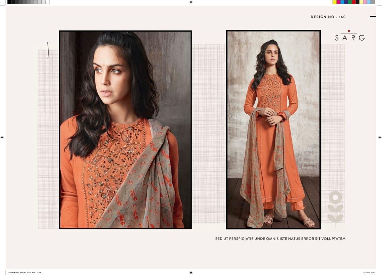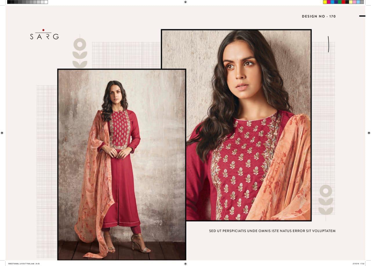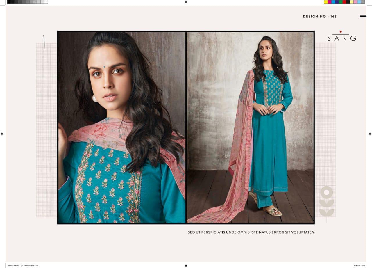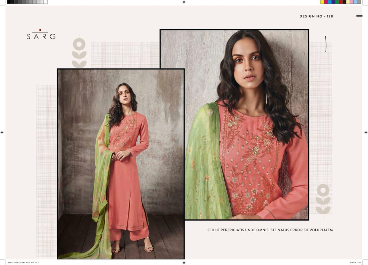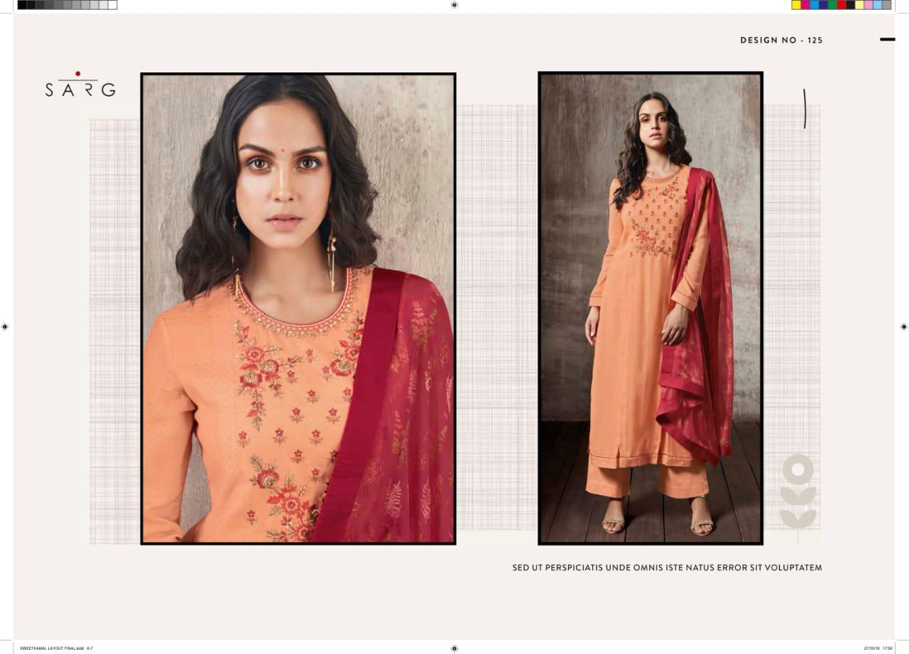 Buy Online Shwetkamal By Sarg 125 Series Fancy Pashmina Embroidery Salwar Kameez Catlog Wholesale Dealer Surat 12 Pcs of Full Catalogue at Wholesale Price. Looking for Shwetkamal By Sarg 125 Series Fancy Pashmina Embroidery Salwar Kameez Catlog Wholesale Dealer Surat Full Catalouge at Best Price? Buy Now Shwetkamal By Sarg 125 Series Fancy Pashmina Embroidery Salwar Kameez Catlog Wholesale Dealer Surat at Wholesale Rate of Rs 19140 with Total 12 Pcs from authroized dealer and supplier of SARG Brand. Cost of Each piece is just only Rs 1595 which is very low and affordable price to resale the product in your retail store ,This is Surat based Wholesale Supplier & Dealer of SARG Brand. Click on Brand name to Know more about SARG Brand's products.Call or Whatsapp on 9898838984 for booking or enquiry