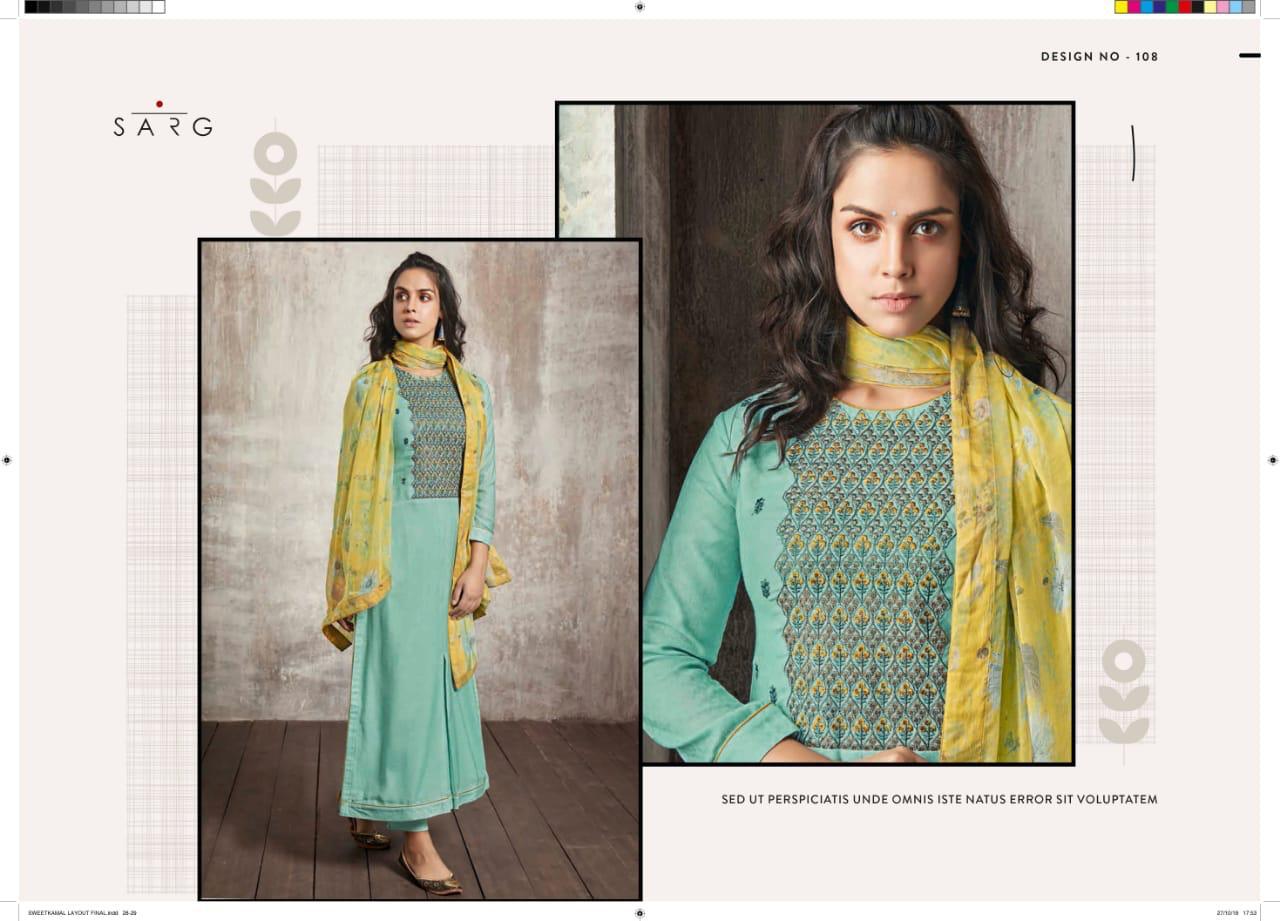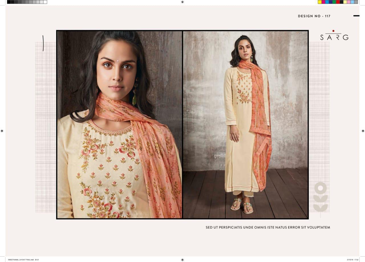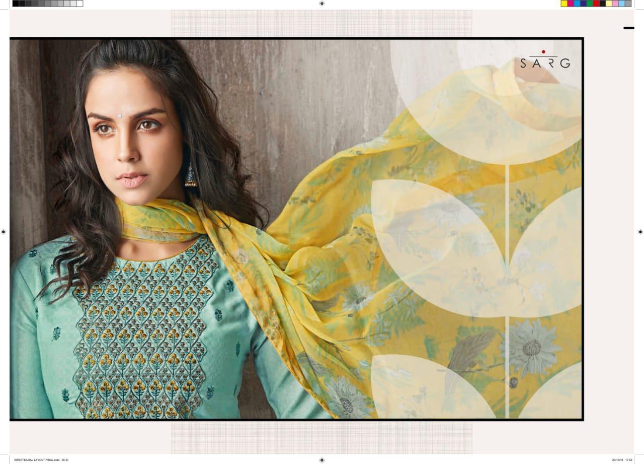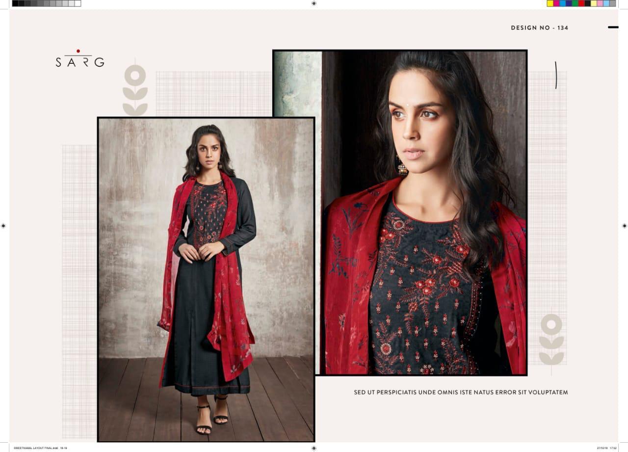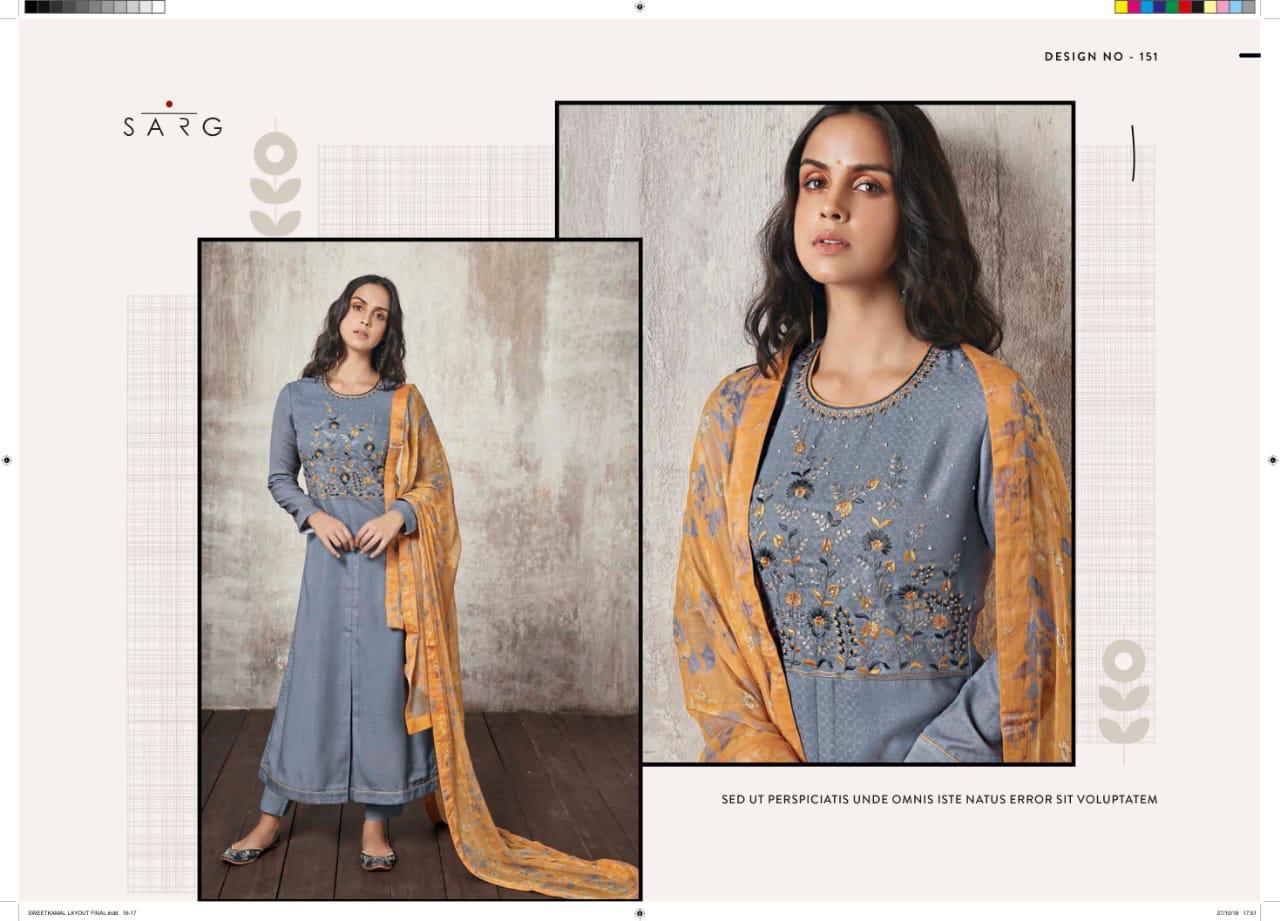 Buy Online Shwetkamal By Sarg 125 Series Fancy Pashmina Embroidery Salwar Kameez Catlog Wholesale Dealer Surat 12 Pcs of Full Catalogue at Wholesale Price. Looking for Shwetkamal By Sarg 125 Series Fancy Pashmina Embroidery Salwar Kameez Catlog Wholesale Dealer Surat Full Catalouge at Best Price? Buy Now Shwetkamal By Sarg 125 Series Fancy Pashmina Embroidery Salwar Kameez Catlog Wholesale Dealer Surat at Wholesale Rate of Rs 19140 with Total 12 Pcs from authroized dealer and supplier of SARG Brand. Cost of Each piece is just only Rs 1595 which is very low and affordable price to resale the product in your retail store ,This is Surat based Wholesale Supplier & Dealer of SARG Brand. Click on Brand name to Know more about SARG Brand's products.Call or Whatsapp on 9898838984 for booking or enquiry