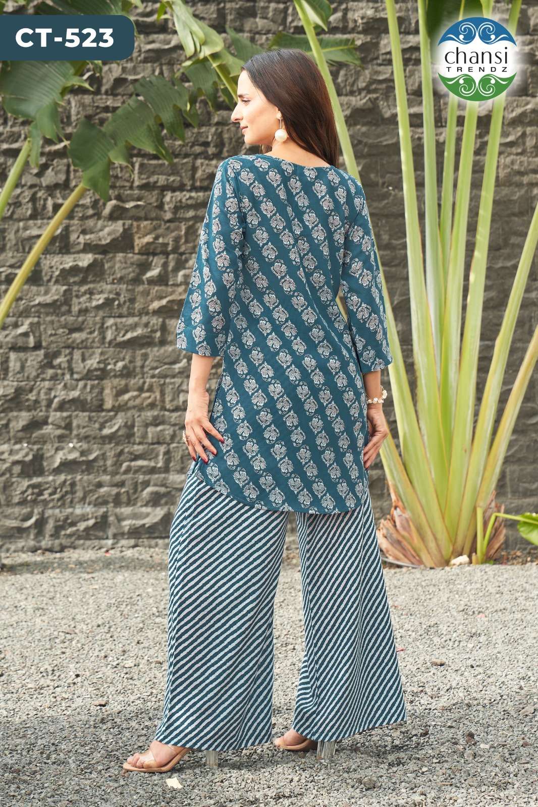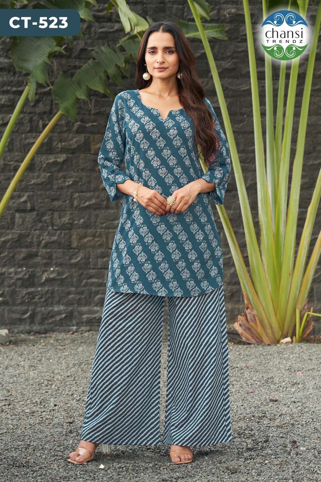 *Chansi Trendz* ®️ Presents CATALOG NAME: SIDDHALAKSHMI TOP FABRIC: POLY COTTON BOTTOM FABRIC: POLY COTTON TOP TYPE: KURTA BOTTOM TYPE: PLAZZO SLEEVE: REGULAR SLEEVE PRICE: 589+5%(GST) NO OF DESIGNS: 3-PCS SIZES: S, M, L, XL, XXL, 3XL, 4XL, 5XL STOCK: READY TO DISPATCH |
