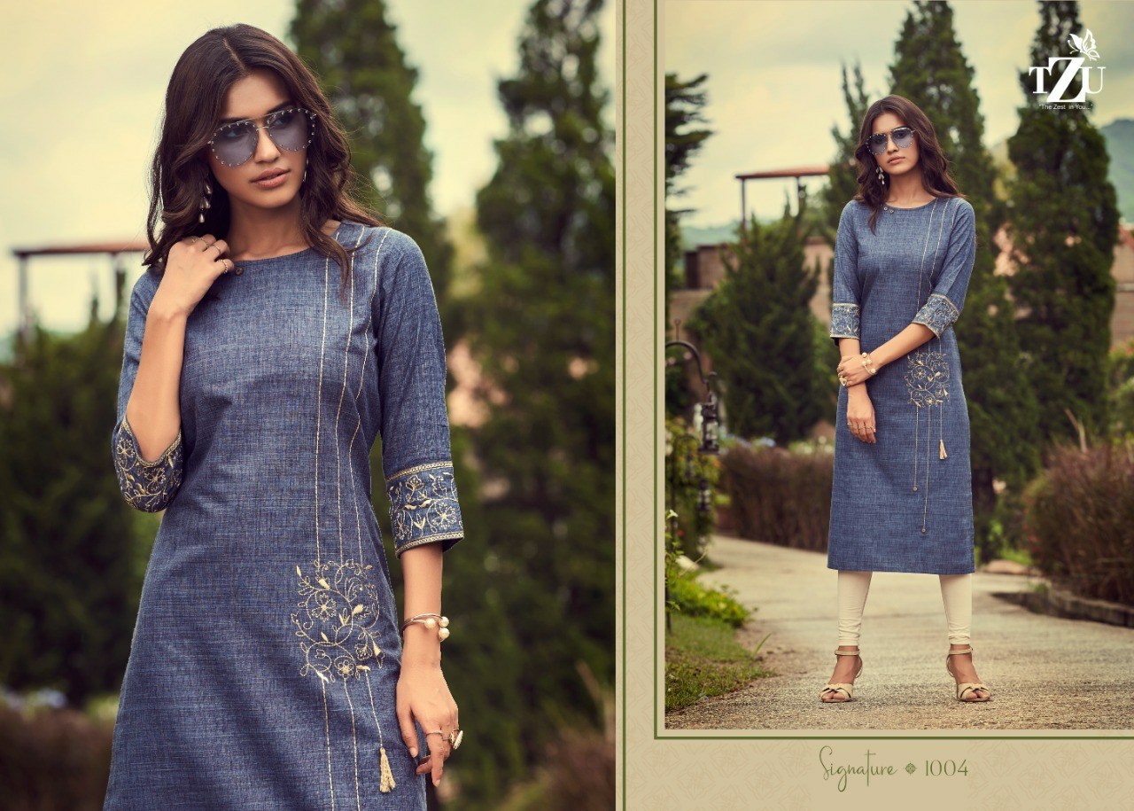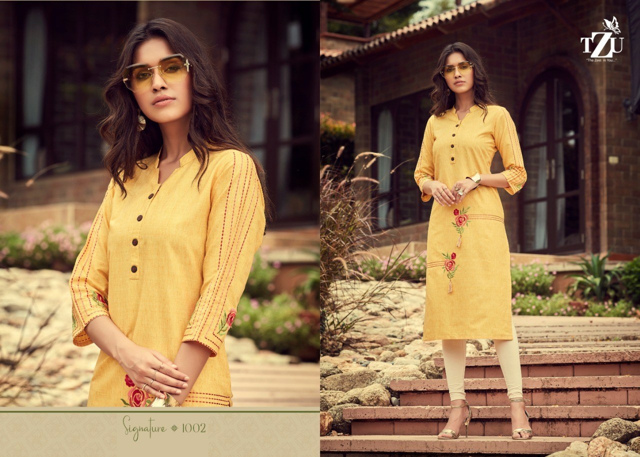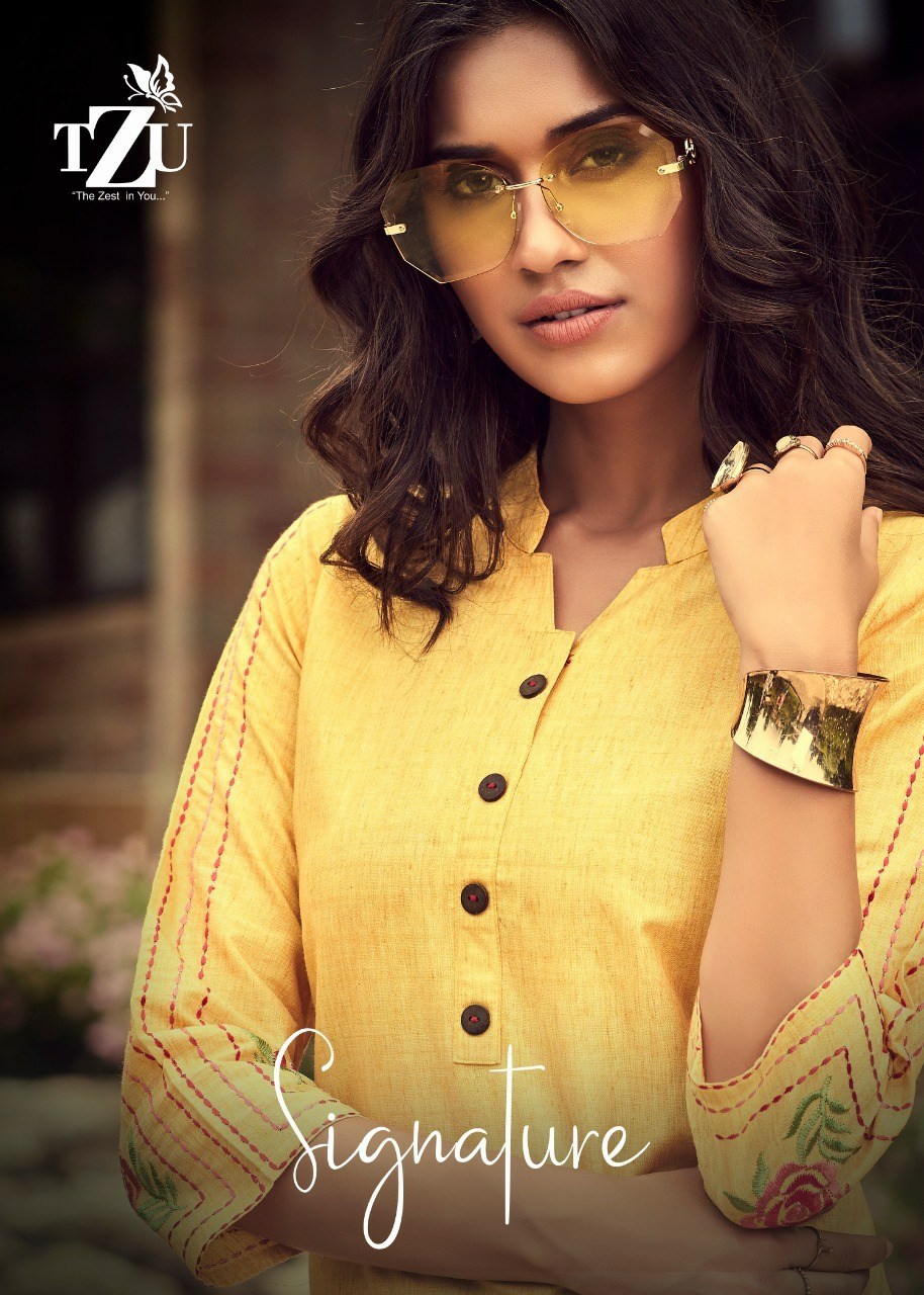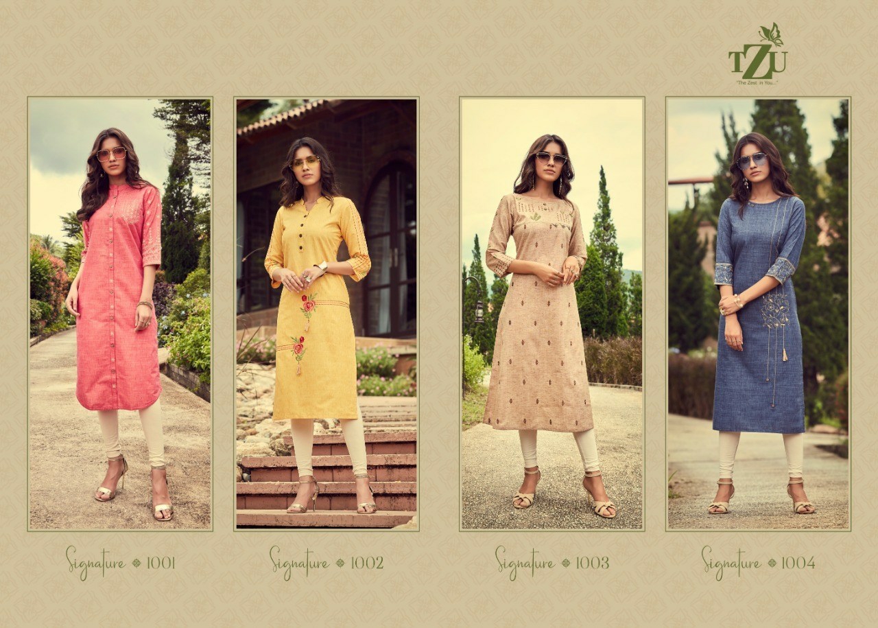 Buy Online Signature By Tzu Cotton Kurtis Wholesale Supplier And Dealer Gujarat 4 Pcs of Full Catalogue at Wholesale Price. Looking for Signature By Tzu Cotton Kurtis Wholesale Supplier And Dealer Gujarat Full Catalouge at Best Price? Buy Now Signature By Tzu Cotton Kurtis Wholesale Supplier And Dealer Gujarat at Wholesale Rate of Rs 2780 with Total 4 Pcs from authroized dealer and supplier of BRAND'S Brand. Cost of Each piece is just only Rs 695 which is very low and affordable price to resale the product in your retail store ,This is Surat based Wholesale Supplier & Dealer of BRAND'S Brand. Click on Brand name to Know more about BRAND'S Brand's products.Call or Whatsapp on 9898838984 for booking or enquiry