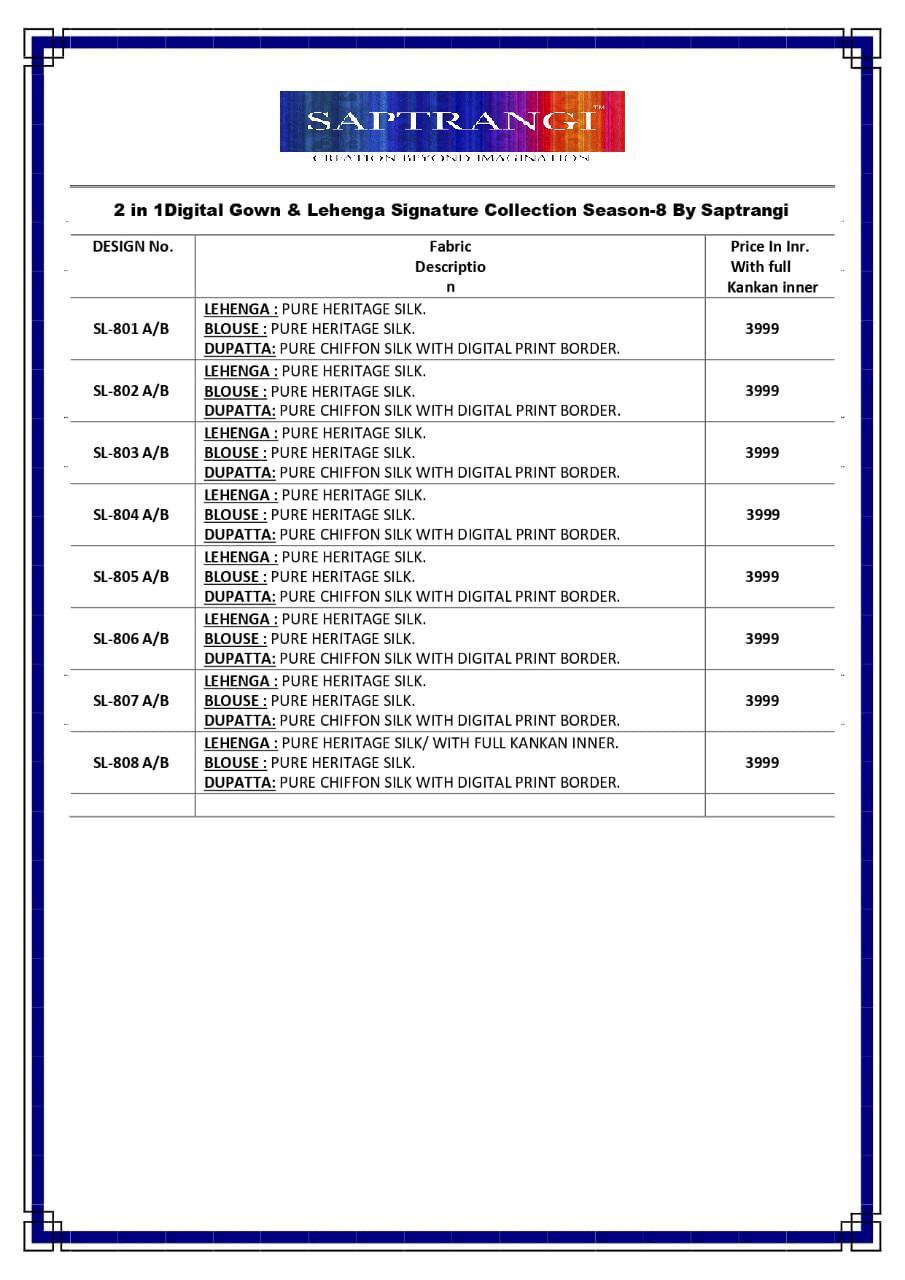 Signature Collection Season B Sl 801 A B To Sl 808 A B To Saptrangi Two In One Lehngas And Gowns Wholesale Supplier And Dealer Surat Wholesale Supplier And Dealer Surat
