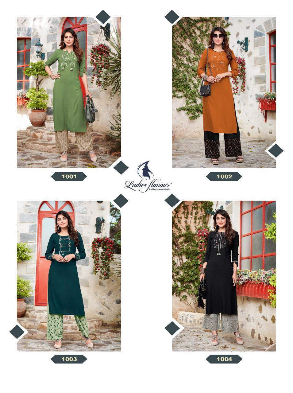 Ladies Flavour Brand Signature Vol 2Very Succesfull Than Now Ladies Flavour Brand Present Our New Catloug *Signature vol 3 Hurrry up ???? ? *Ladies Flavour*? Brand Name : *Ladies Flavour* Catalog : *Signature Vol 3* Designs : *8* Fabric:- *Top* :- *Rayon 14 kg With Embroidery work* *Bottom* :- *Rayon 14 Kg With Block Print* Size : *M(38), L(40), XL(42), 2XL(44), 3XL(46)* Rate :- *650/-* Dispatch :- Ready |