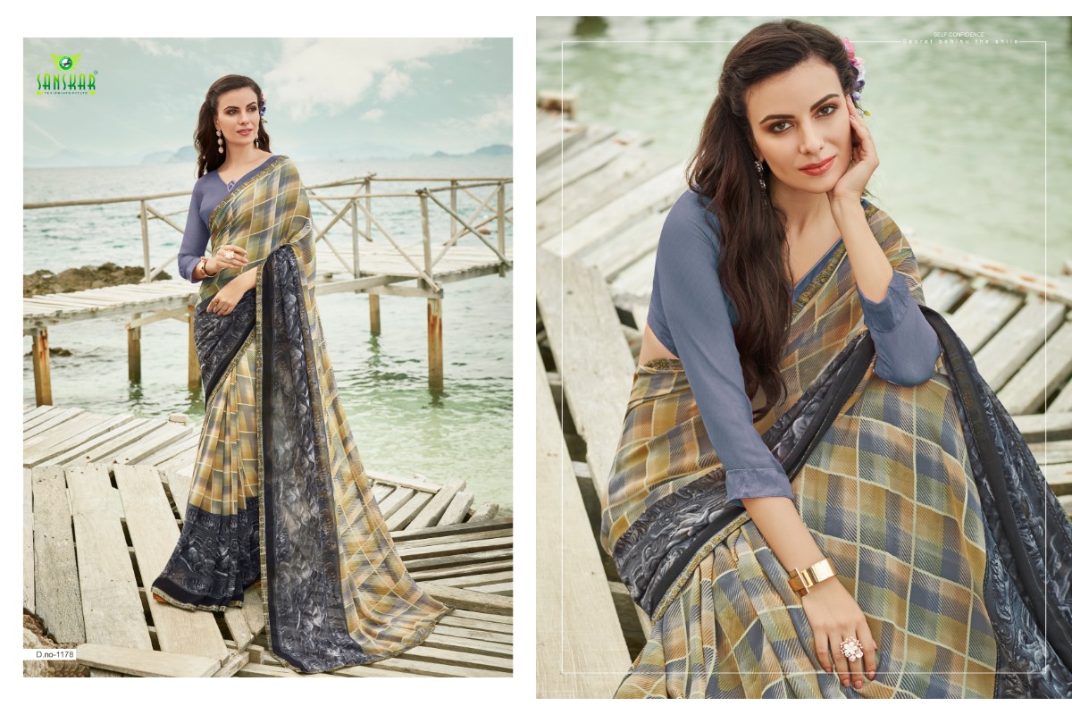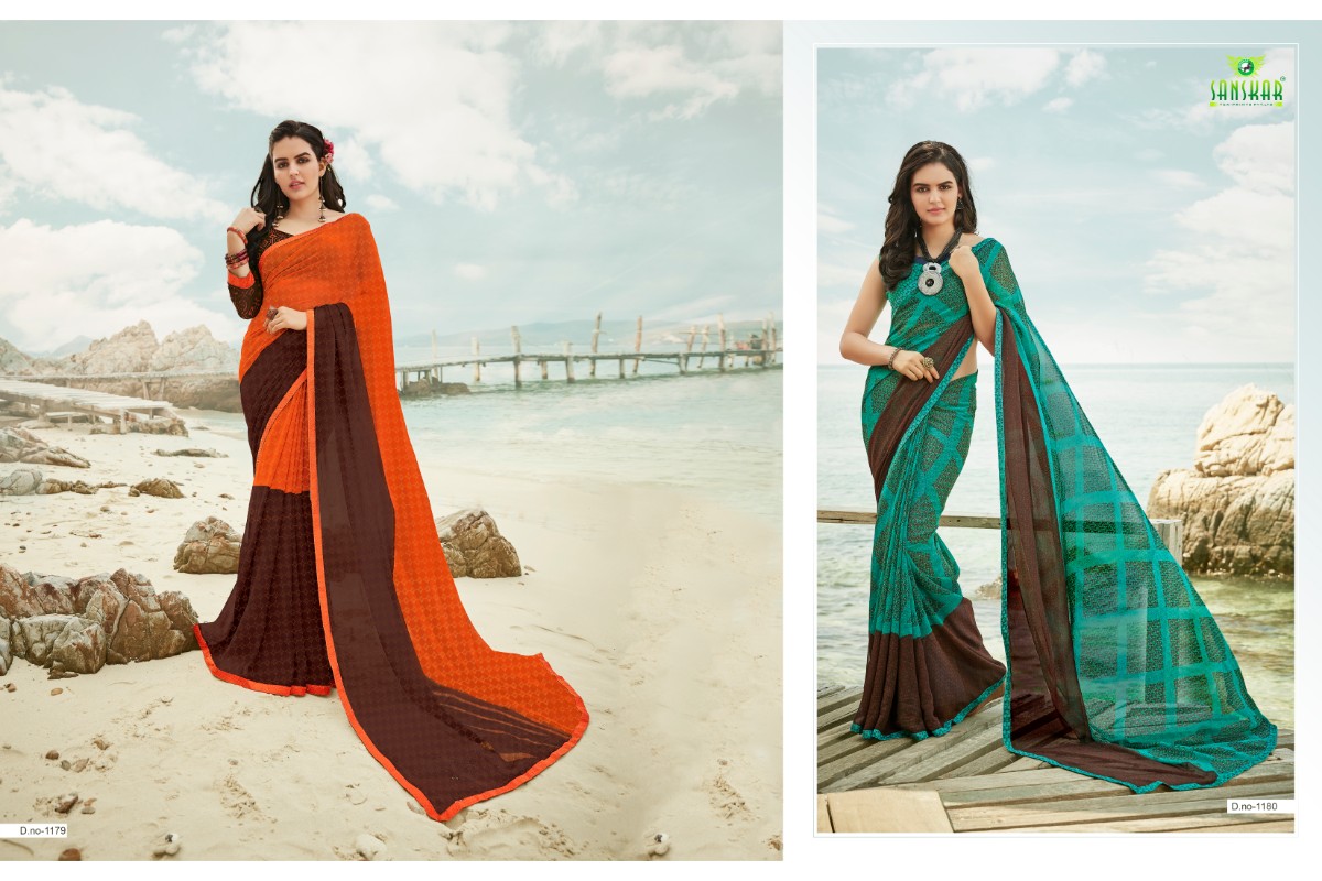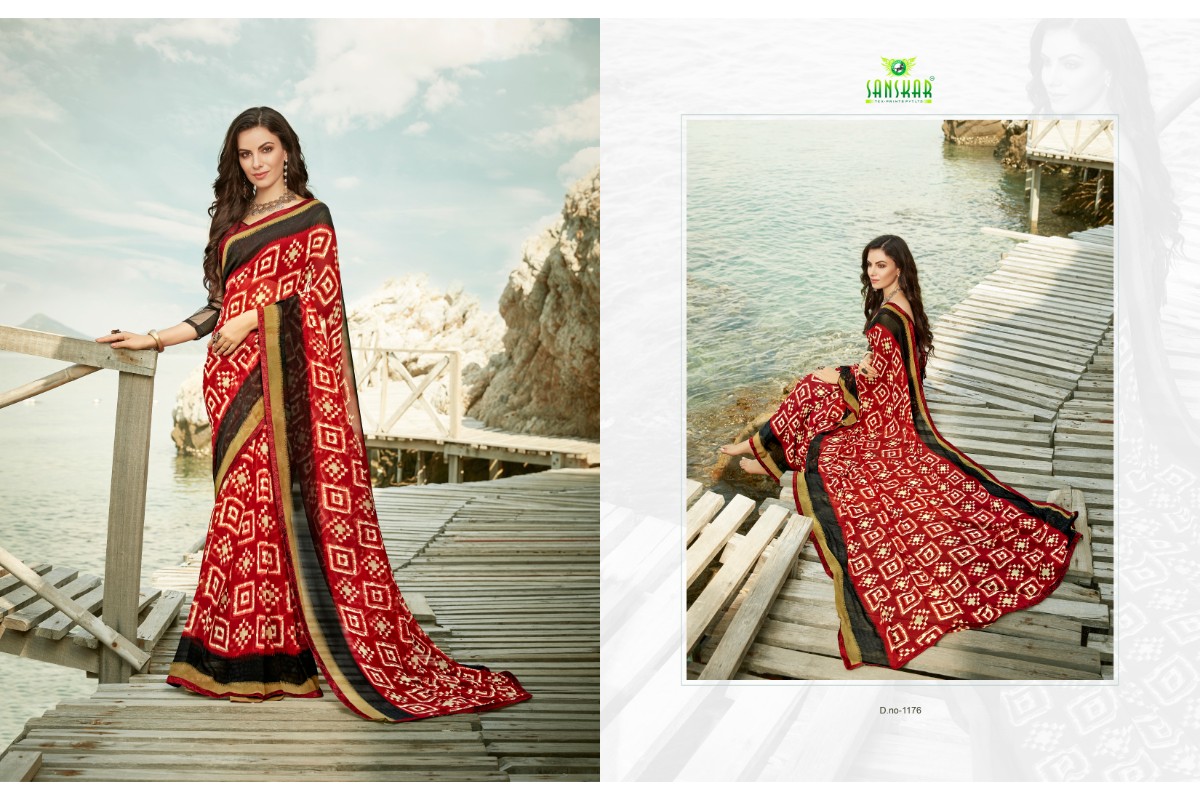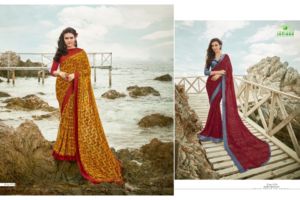 Buy Online Signature Vol 9 By Sanskar 1171 Series Fancy Georgette Printed Saree Collection Wholesaler Surat 18 Pcs of Full Catalogue at Wholesale Price. Looking for Signature Vol 9 By Sanskar 1171 Series Fancy Georgette Printed Saree Collection Wholesaler Surat Full Catalouge at Best Price? Buy Now Signature Vol 9 By Sanskar 1171 Series Fancy Georgette Printed Saree Collection Wholesaler Surat at Wholesale Rate of Rs 8820 with Total 18 Pcs from authroized dealer and supplier of SANSKAR SAREES Brand. Cost of Each piece is just only Rs 490 which is very low and affordable price to resale the product in your retail store ,This is Surat based Wholesale Supplier & Dealer of SANSKAR SAREES Brand. Click on Brand name to Know more about SANSKAR SAREES Brand's products.Call or Whatsapp on 9898838984 for booking or enquiry