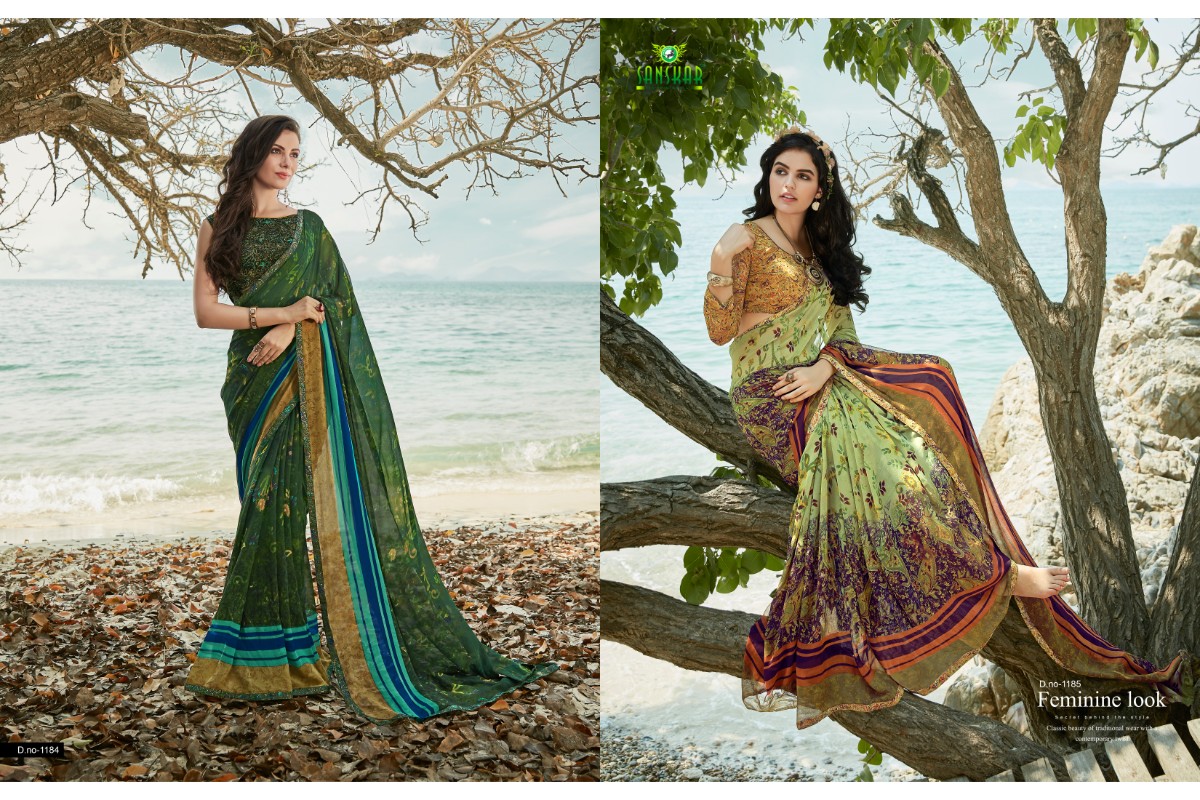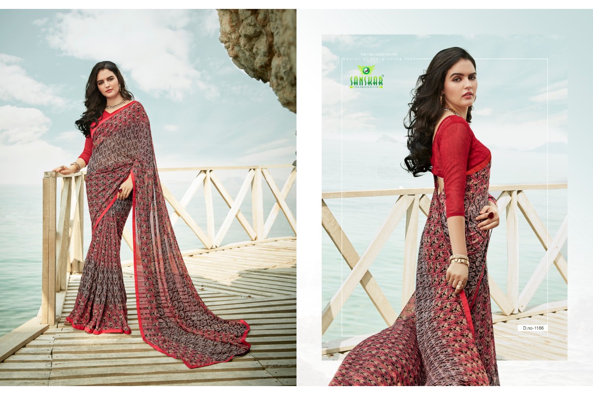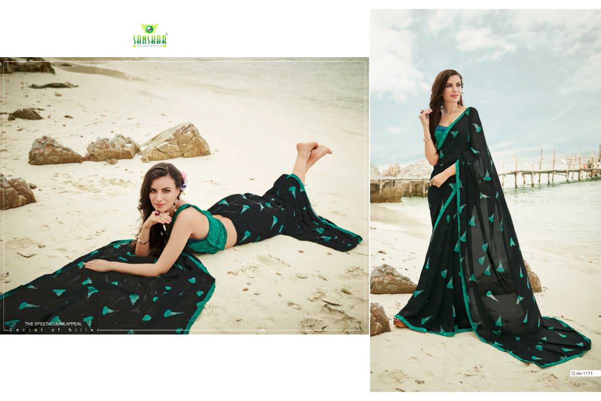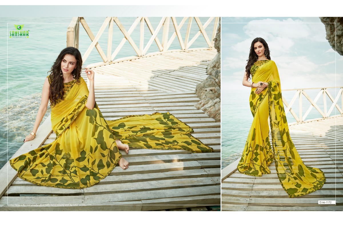 Buy Online Signature Vol 9 By Sanskar 1171 Series Fancy Georgette Printed Saree Collection Wholesaler Surat 18 Pcs of Full Catalogue at Wholesale Price. Looking for Signature Vol 9 By Sanskar 1171 Series Fancy Georgette Printed Saree Collection Wholesaler Surat Full Catalouge at Best Price? Buy Now Signature Vol 9 By Sanskar 1171 Series Fancy Georgette Printed Saree Collection Wholesaler Surat at Wholesale Rate of Rs 8820 with Total 18 Pcs from authroized dealer and supplier of SANSKAR SAREES Brand. Cost of Each piece is just only Rs 490 which is very low and affordable price to resale the product in your retail store ,This is Surat based Wholesale Supplier & Dealer of SANSKAR SAREES Brand. Click on Brand name to Know more about SANSKAR SAREES Brand's products.Call or Whatsapp on 9898838984 for booking or enquiry